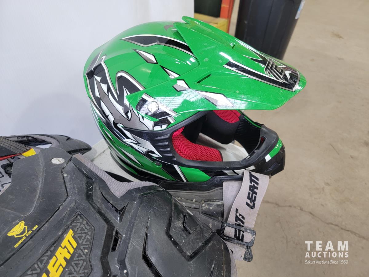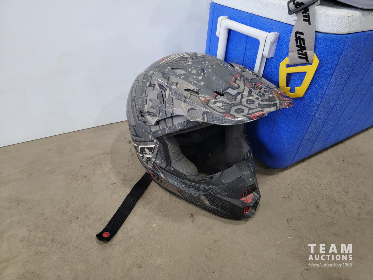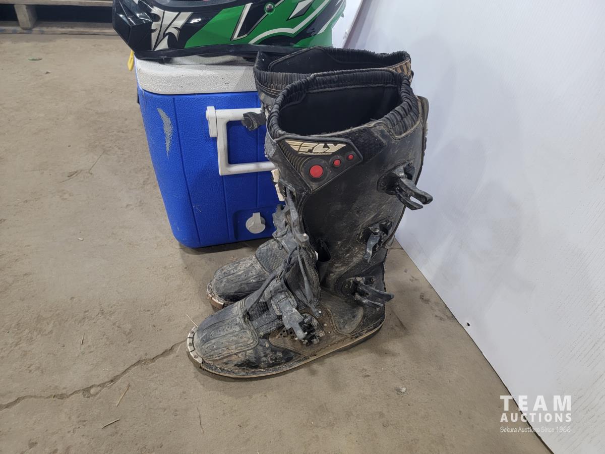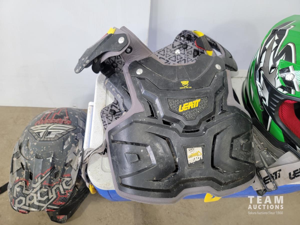 1191 Cooler, (2) ATV Helmets, Chest Protector and Dirt Bike Boots