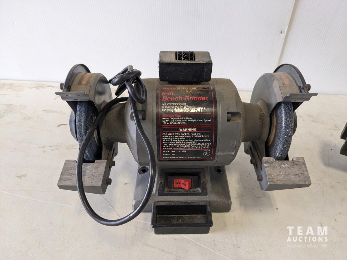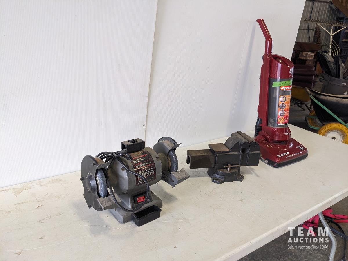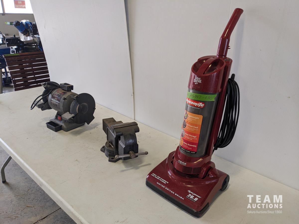 1063 Craftsman 6 Inch Bench Grinder, 5 Inch Bench Vise and Dirt Devil Vacuum