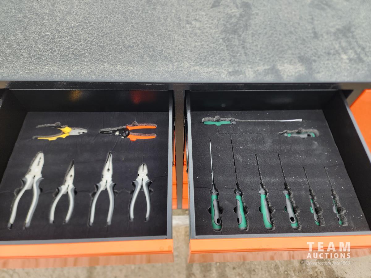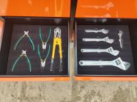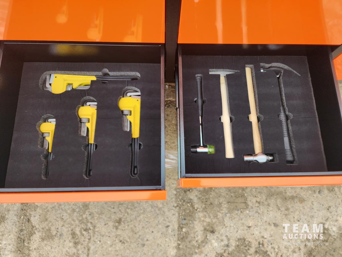 (2) cabinets, (10) drawers, full of tools, castor wheels, 77 inch w x 19-1/2 inch d x 48-1/2 inch h