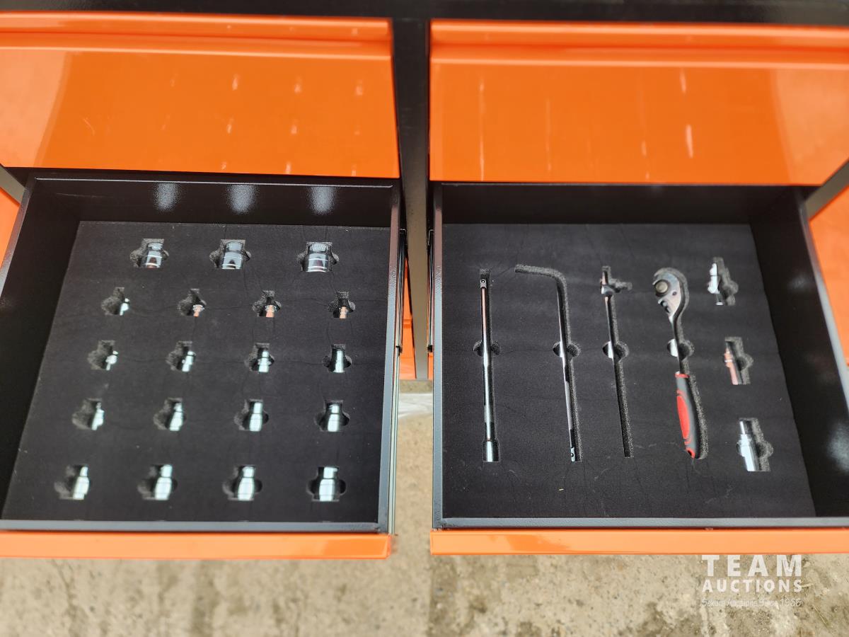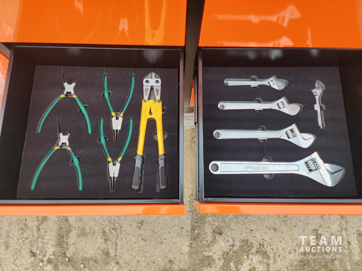 (2) cabinets, (10) drawers, full of tools, castor wheels, 77 inch w x 19-1/2 inch d x 48-1/2 inch h