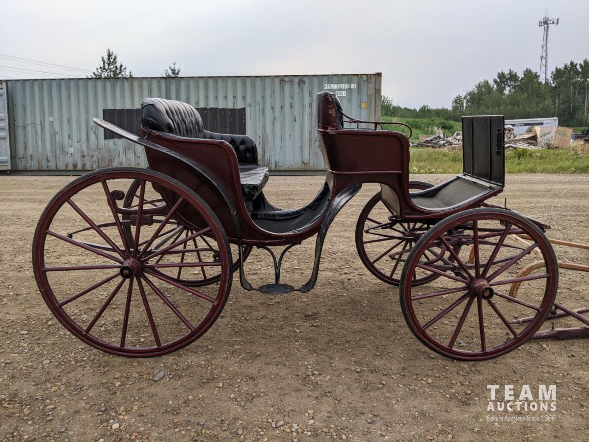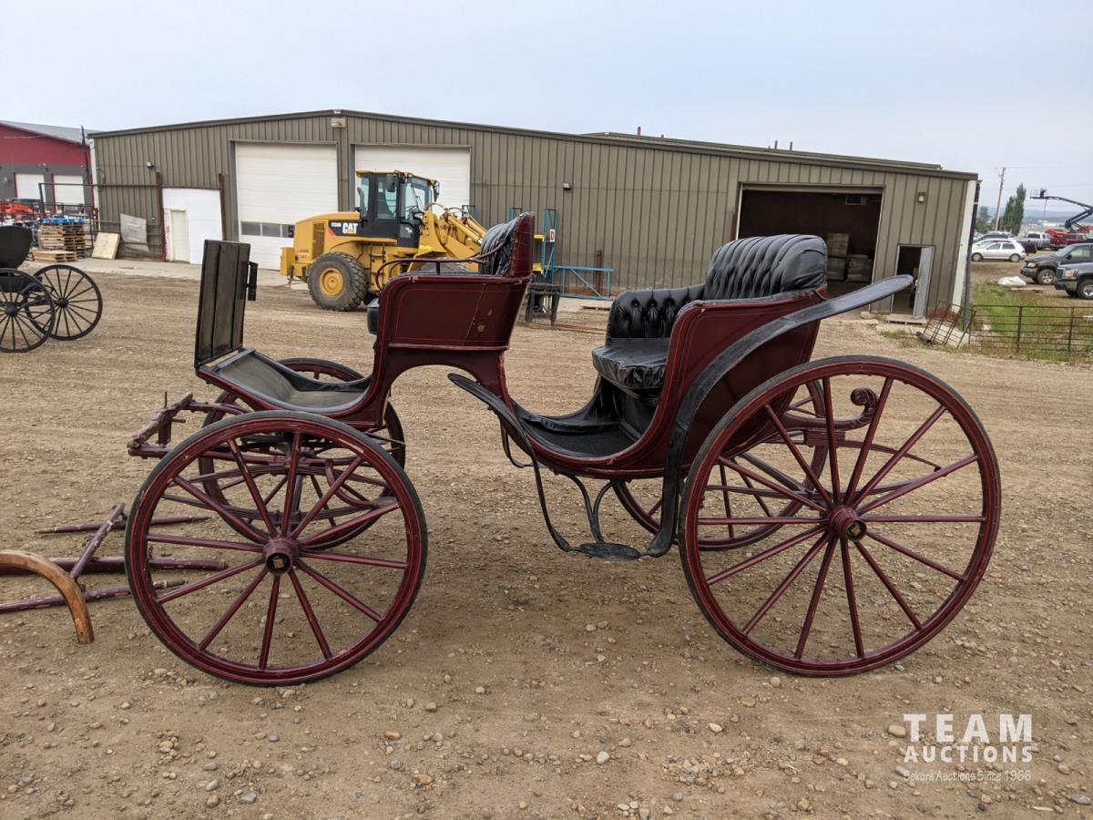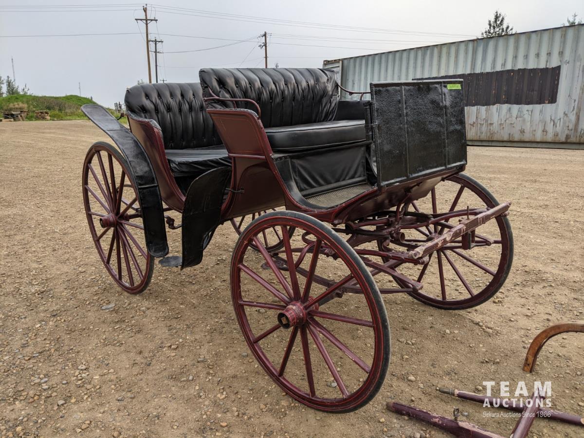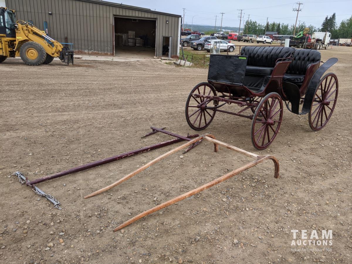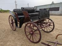 All rubber wheels, comes with double tree pole and single shaft, leather seat, running gear refurbished early 90's