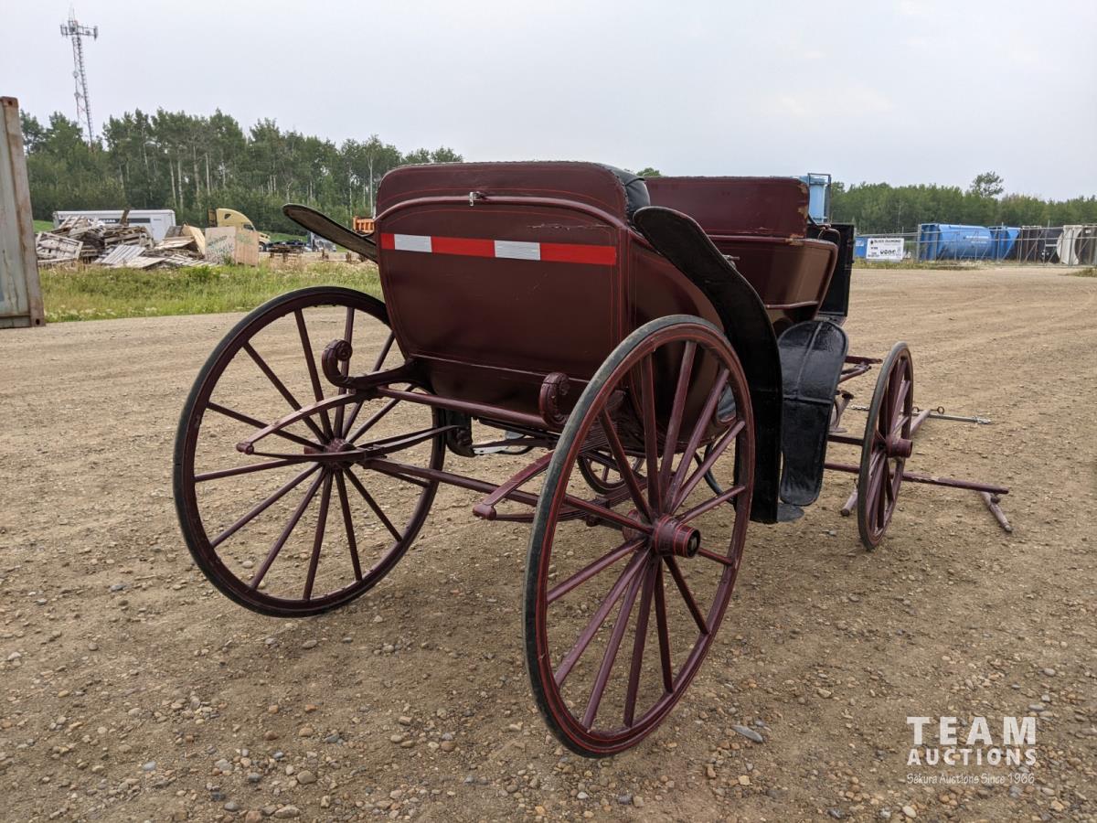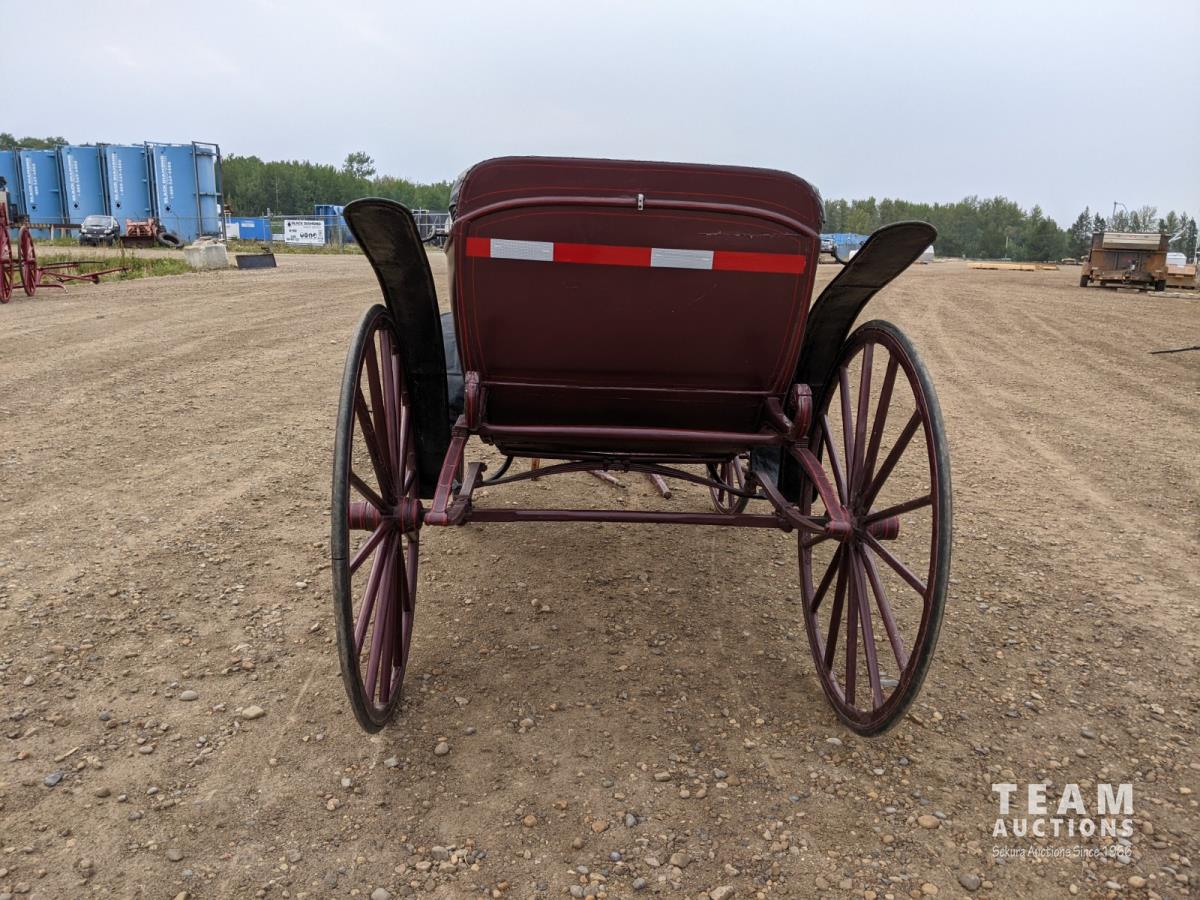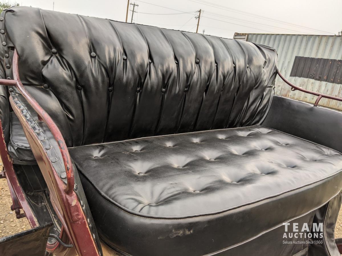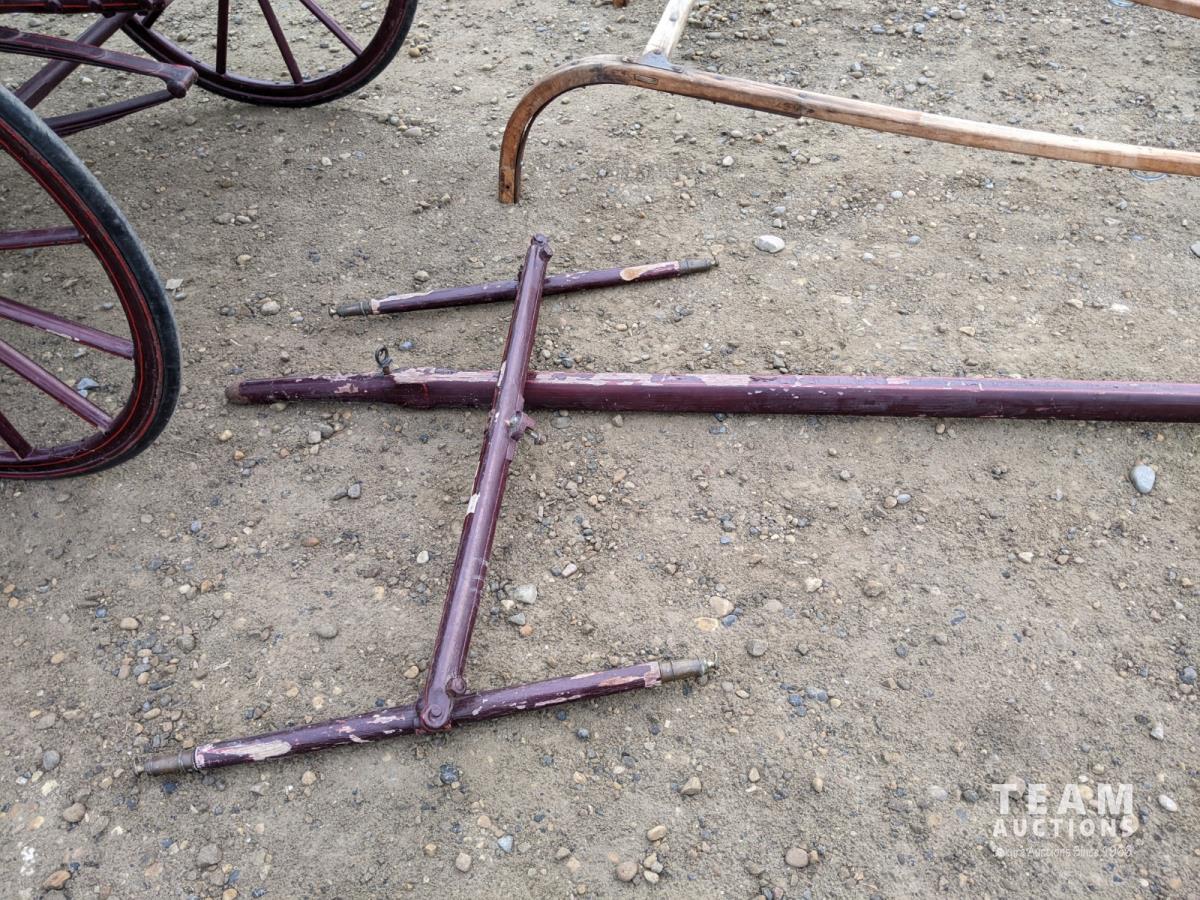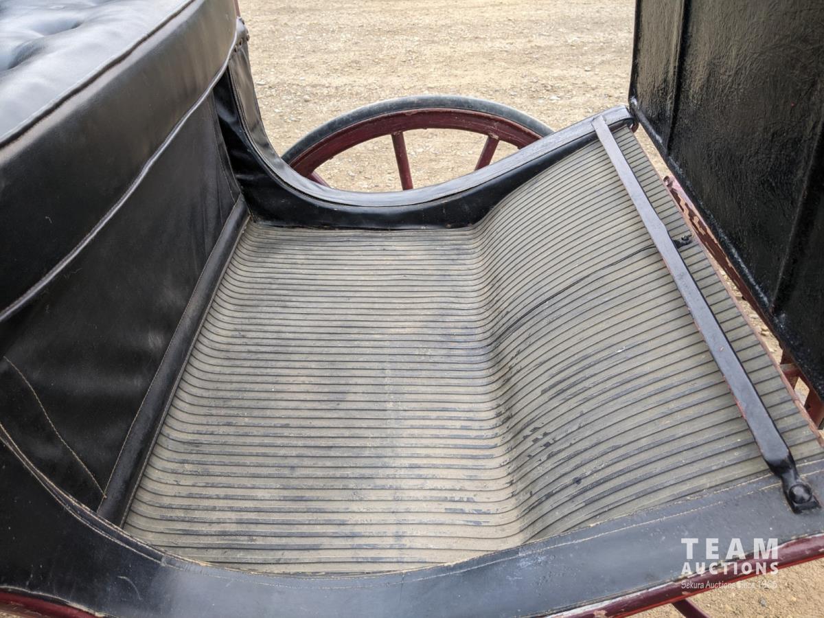 All rubber wheels, comes with double tree pole and single shaft, leather seat, running gear refurbished early 90's
