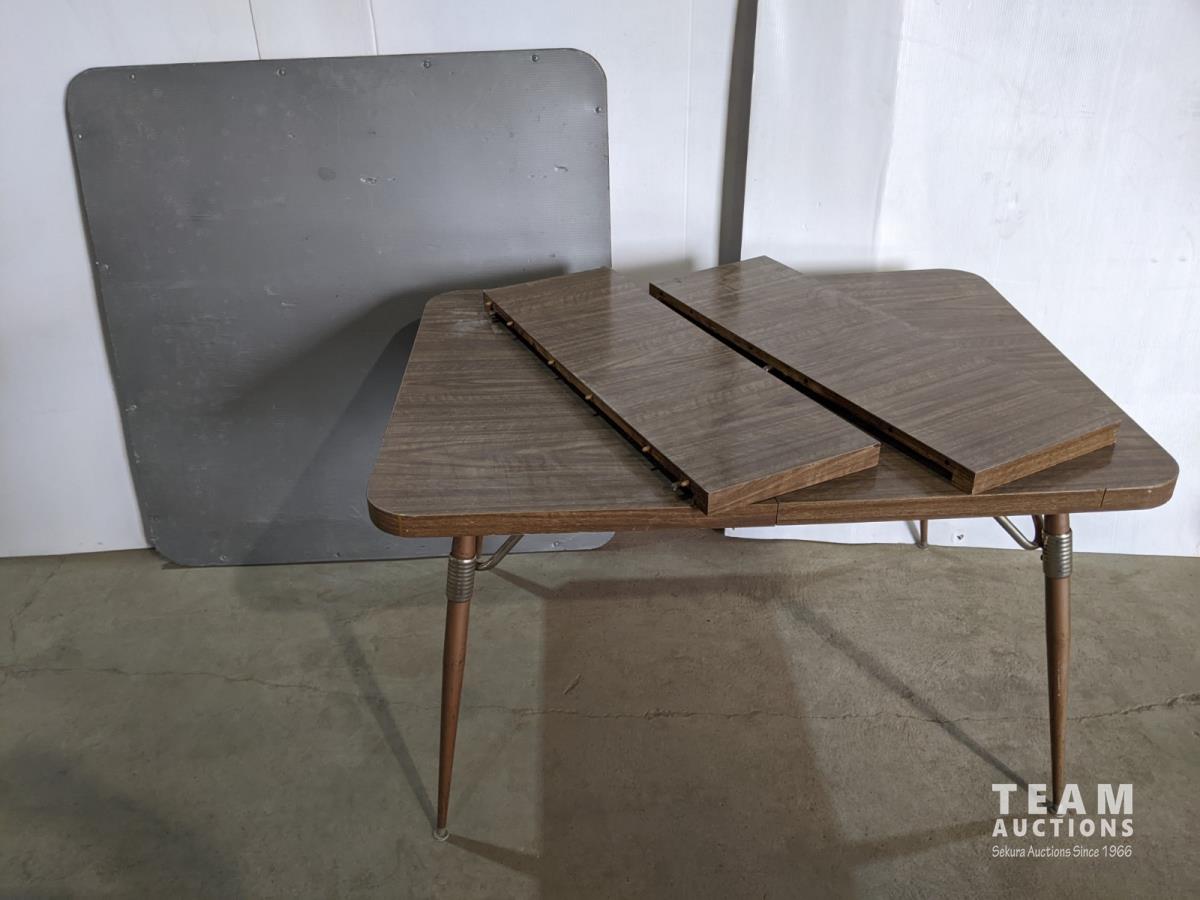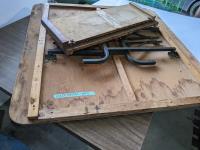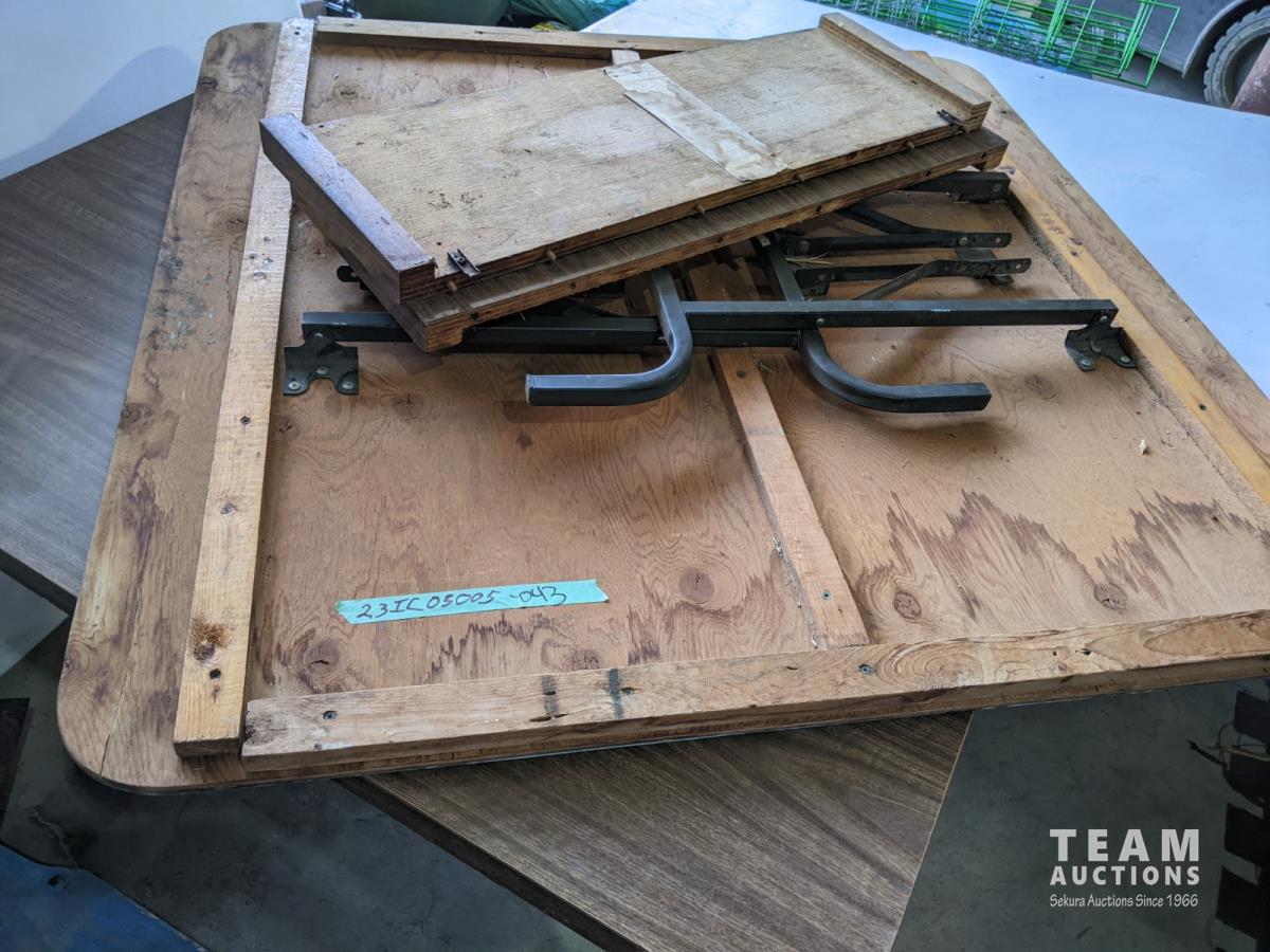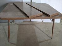 Folding table measures 4 ft w x 4 ft x 30 inch, table 3 ft w x 6 ft d x 30 inch h