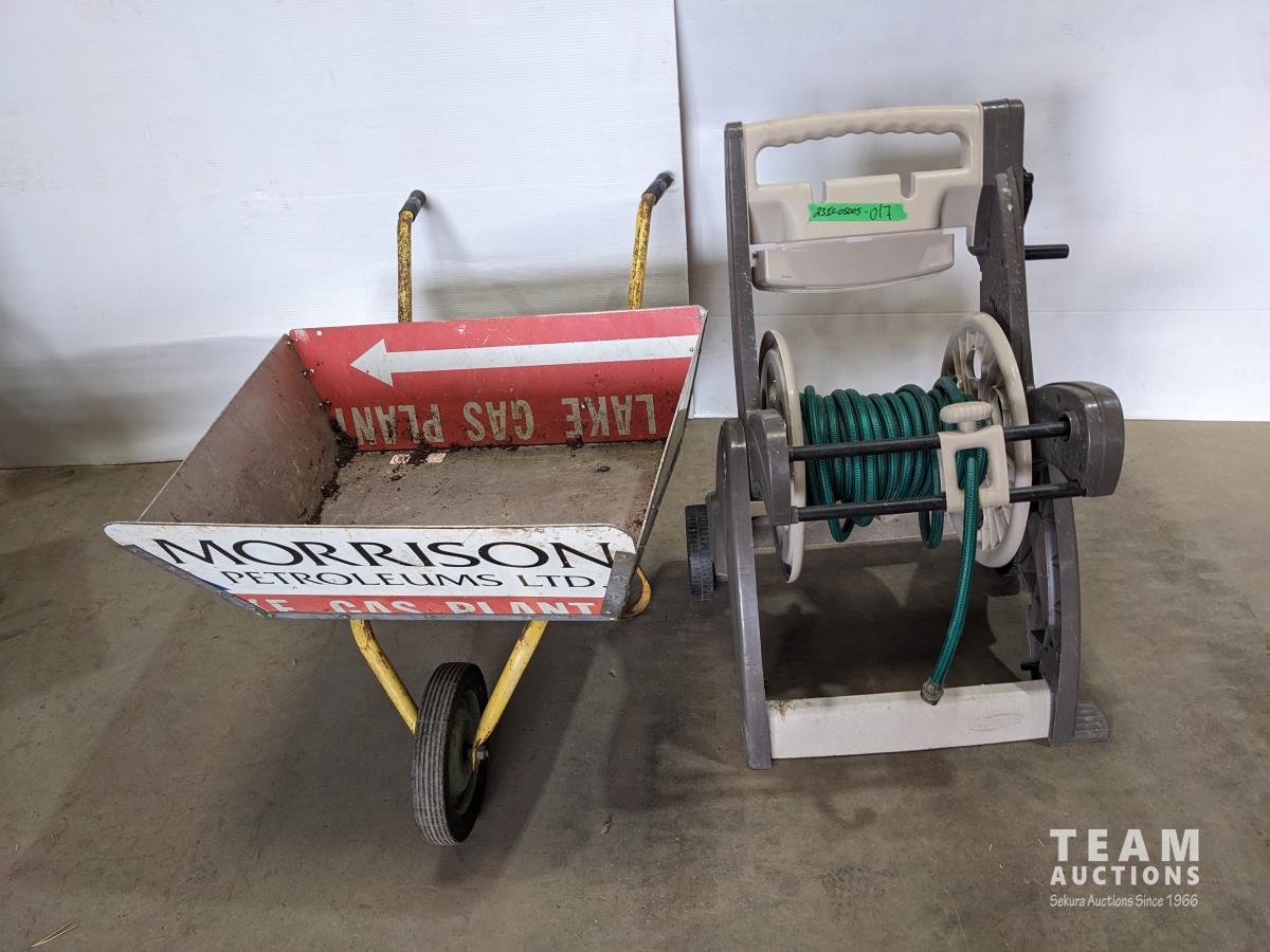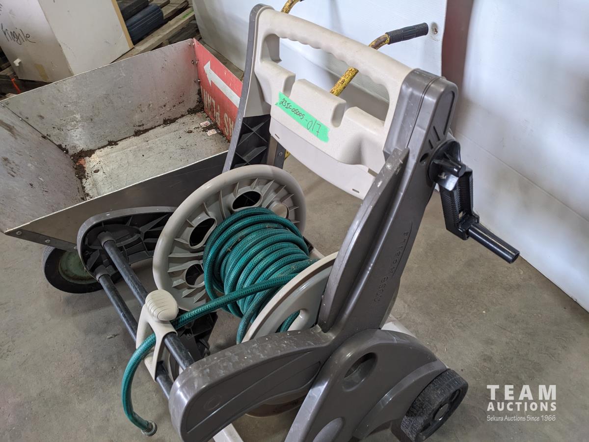 1887 Garden Hose Reel and Homebuilt Wheelbarrow