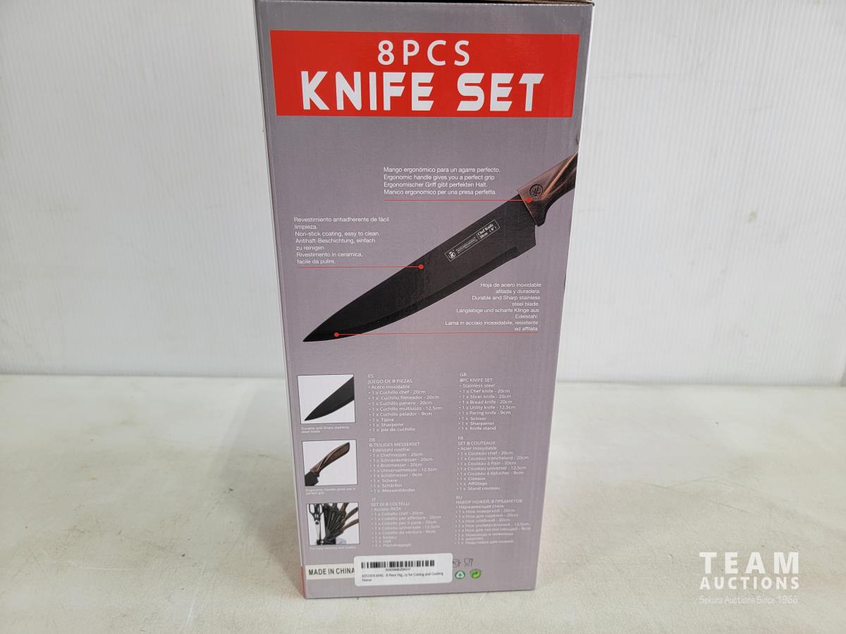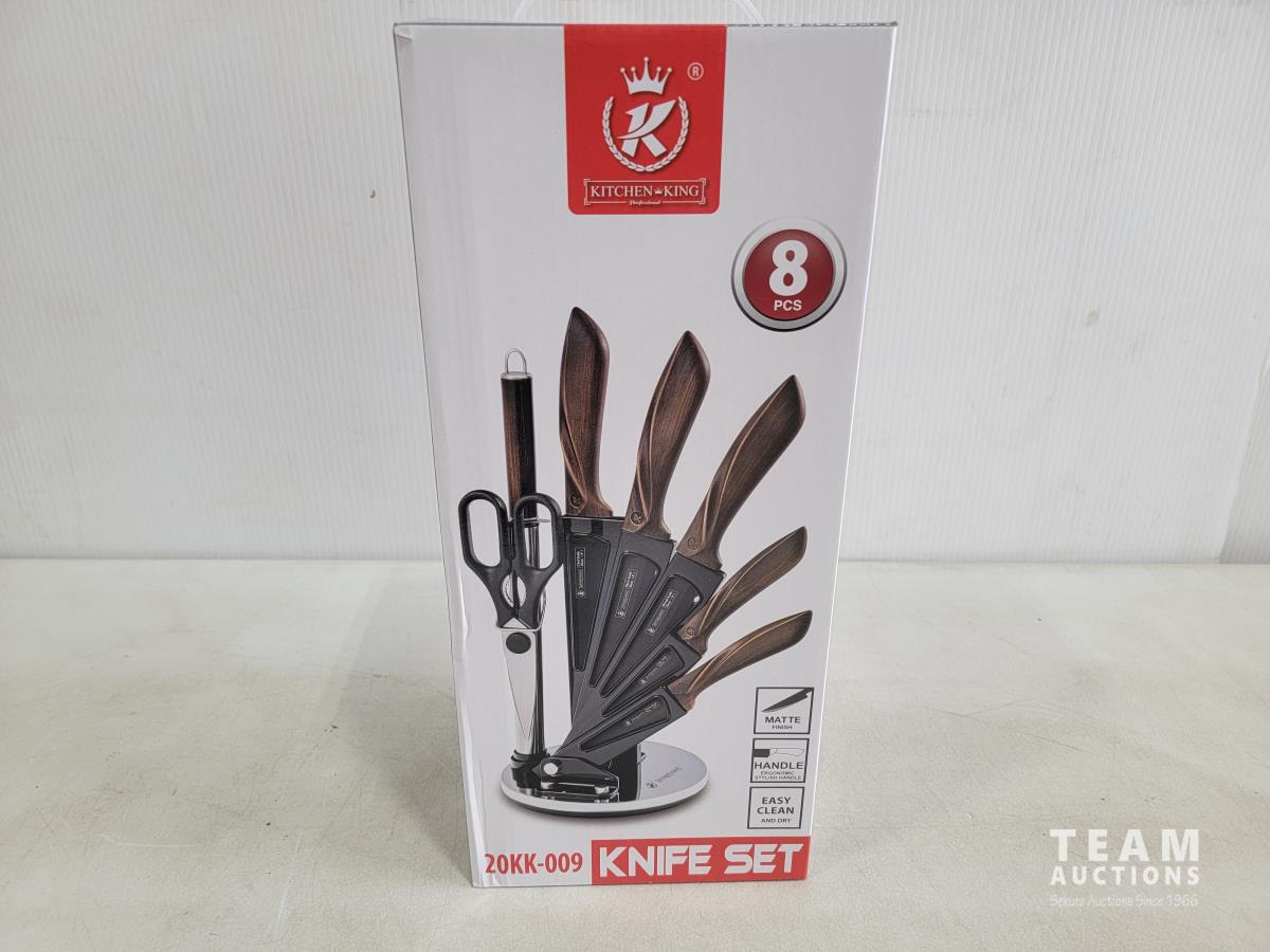 1525 Kitchen King 8 Piece Wood Knife Set (Unused)