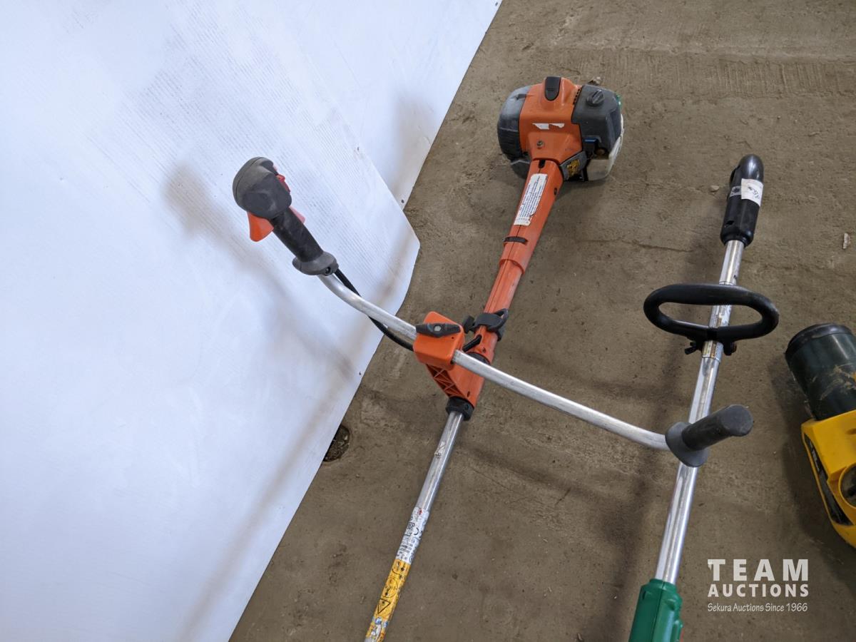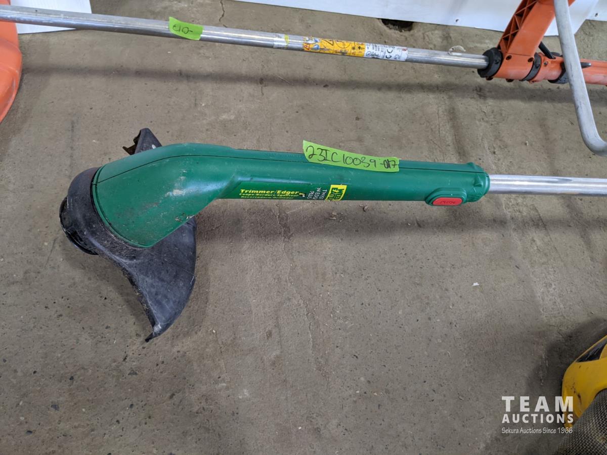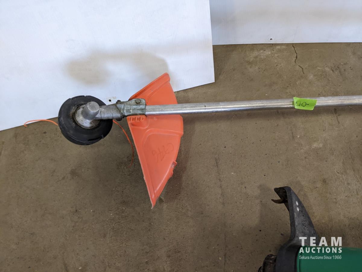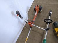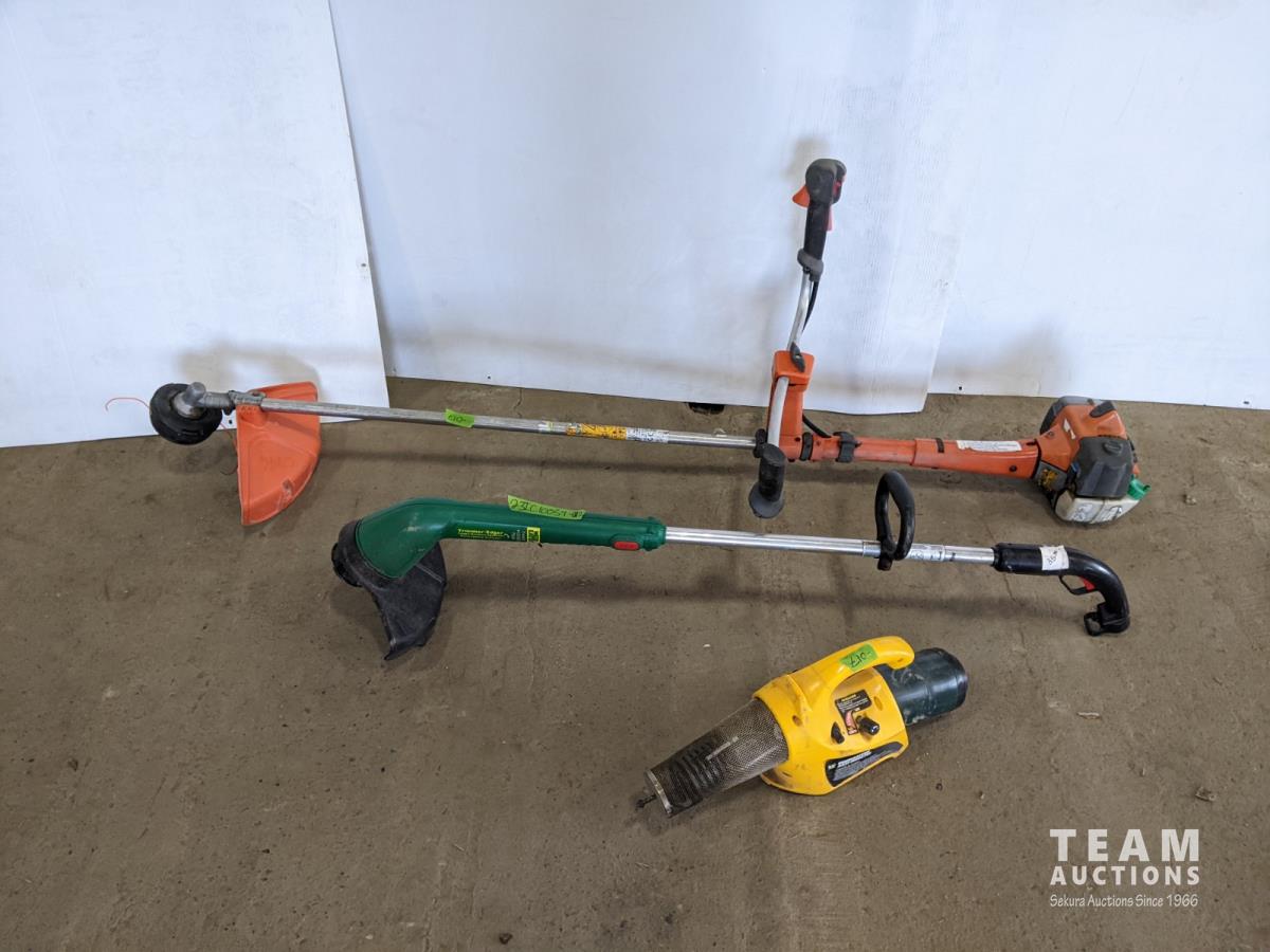 (1) Husqvarna gas trimmer (inoperable) not seized, Weedeater electric trimmer, Bug fogger