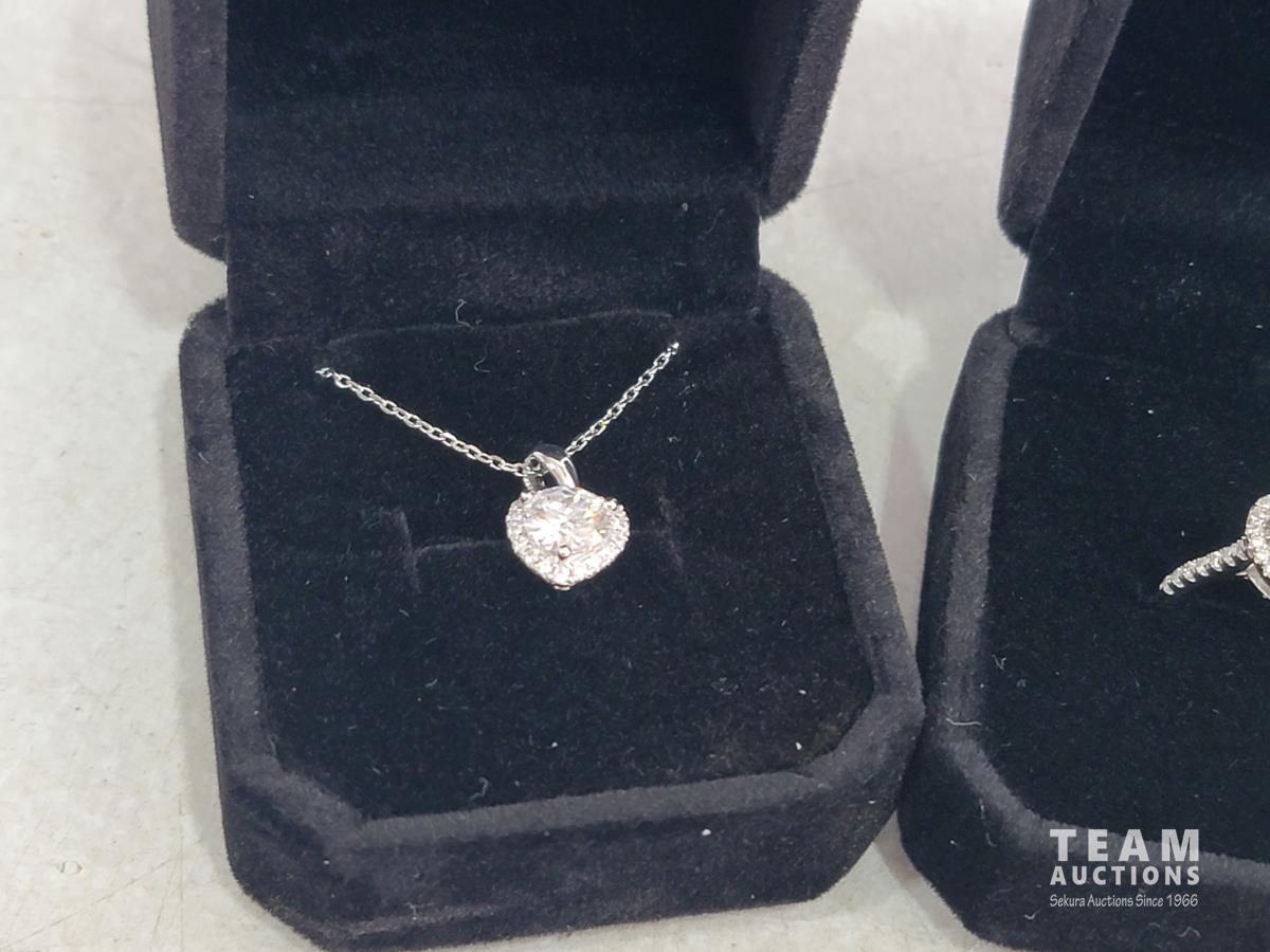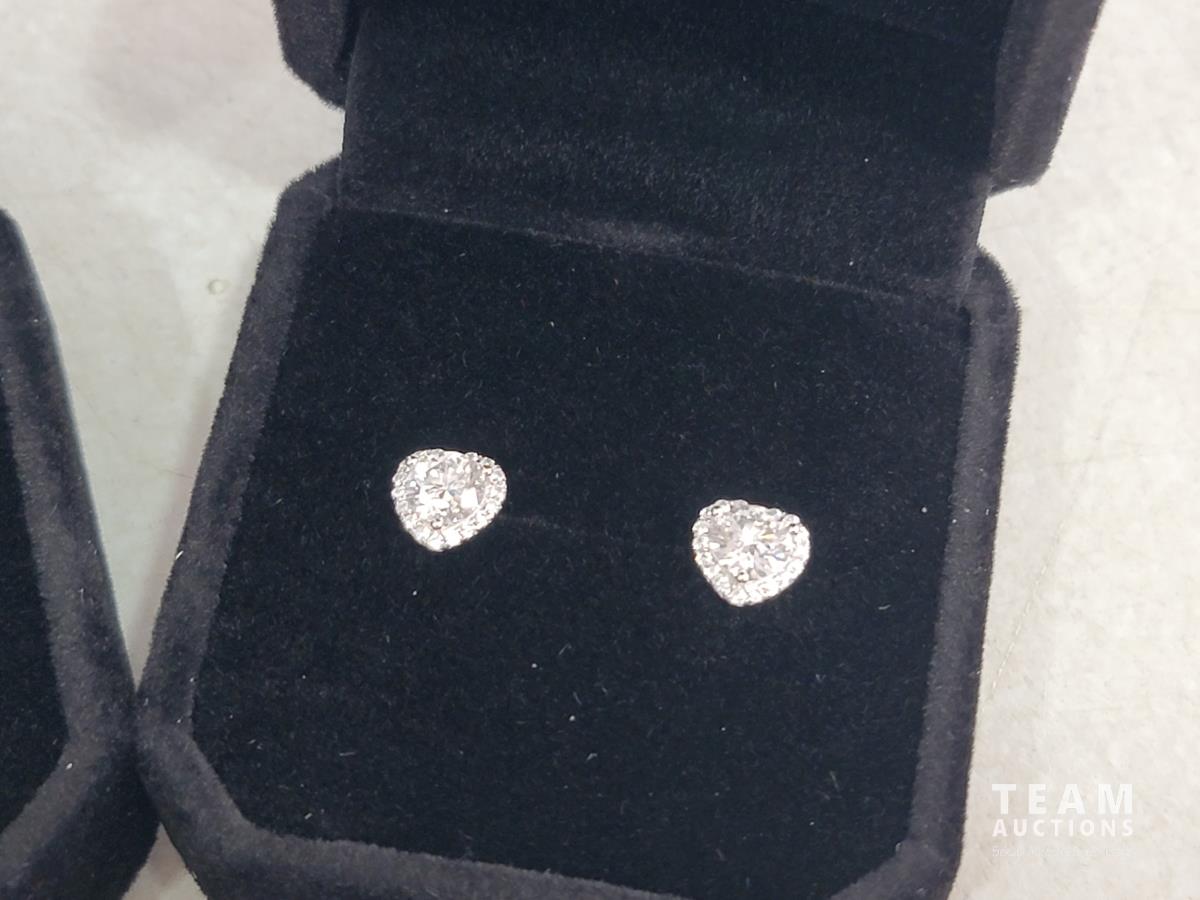 0.5 carat halo heart earrings, 1 carat halo heart ring, 1 carat halo heart necklace