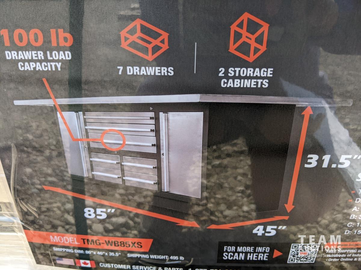 2073 TMG Industrial Pro Series 85 Inch Stainless Steel X-Large Platform Workbench (Unused)