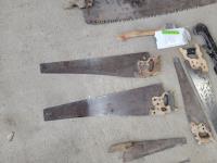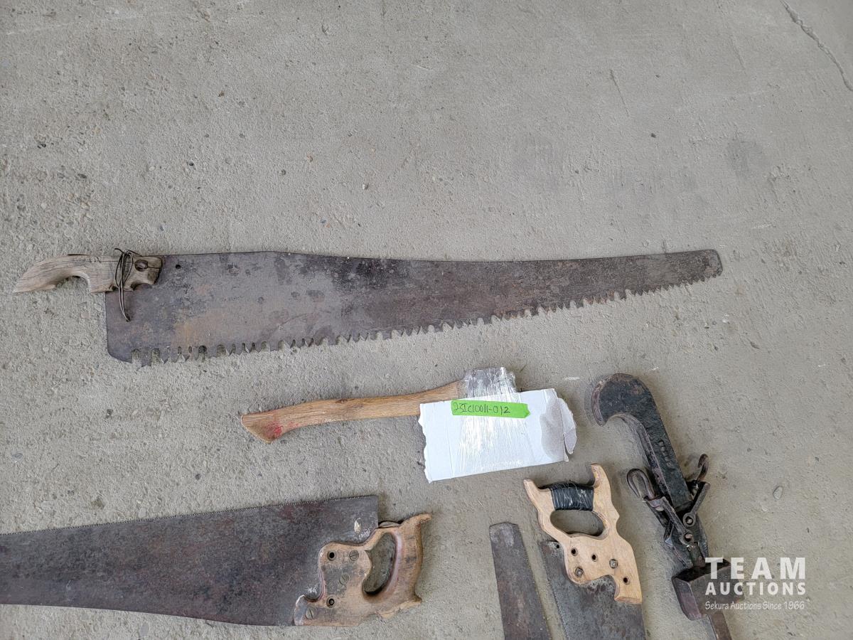 Antique beam scale, (8) handsaw blades, hatchet