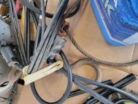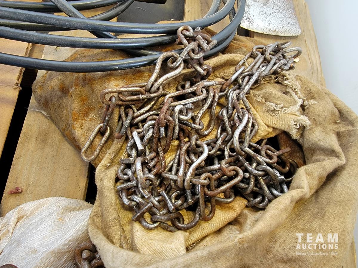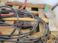 (2) Axes, (2) sets of chains, Aqua Pack water container, back pack sprayer, 20 ton bottle jack, propane torch, 6in trailer wire extension