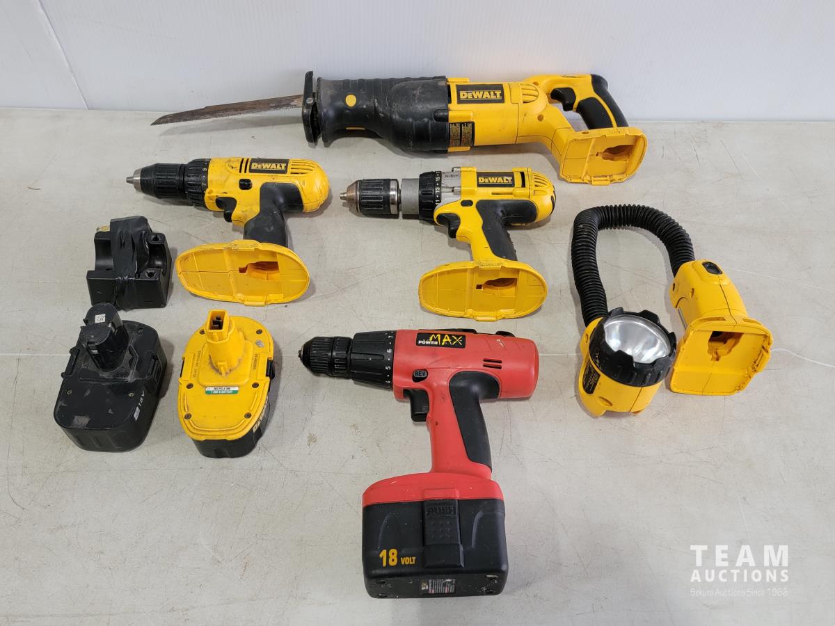 Dewalt 18v reciprocating saw 1/2 inch drill, drill, work light, batteries and charger