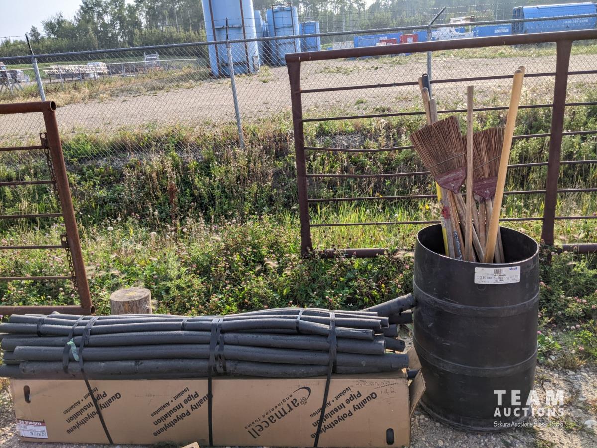 1817 Qty of Foam Pipe Insulation, Rakes and Brooms