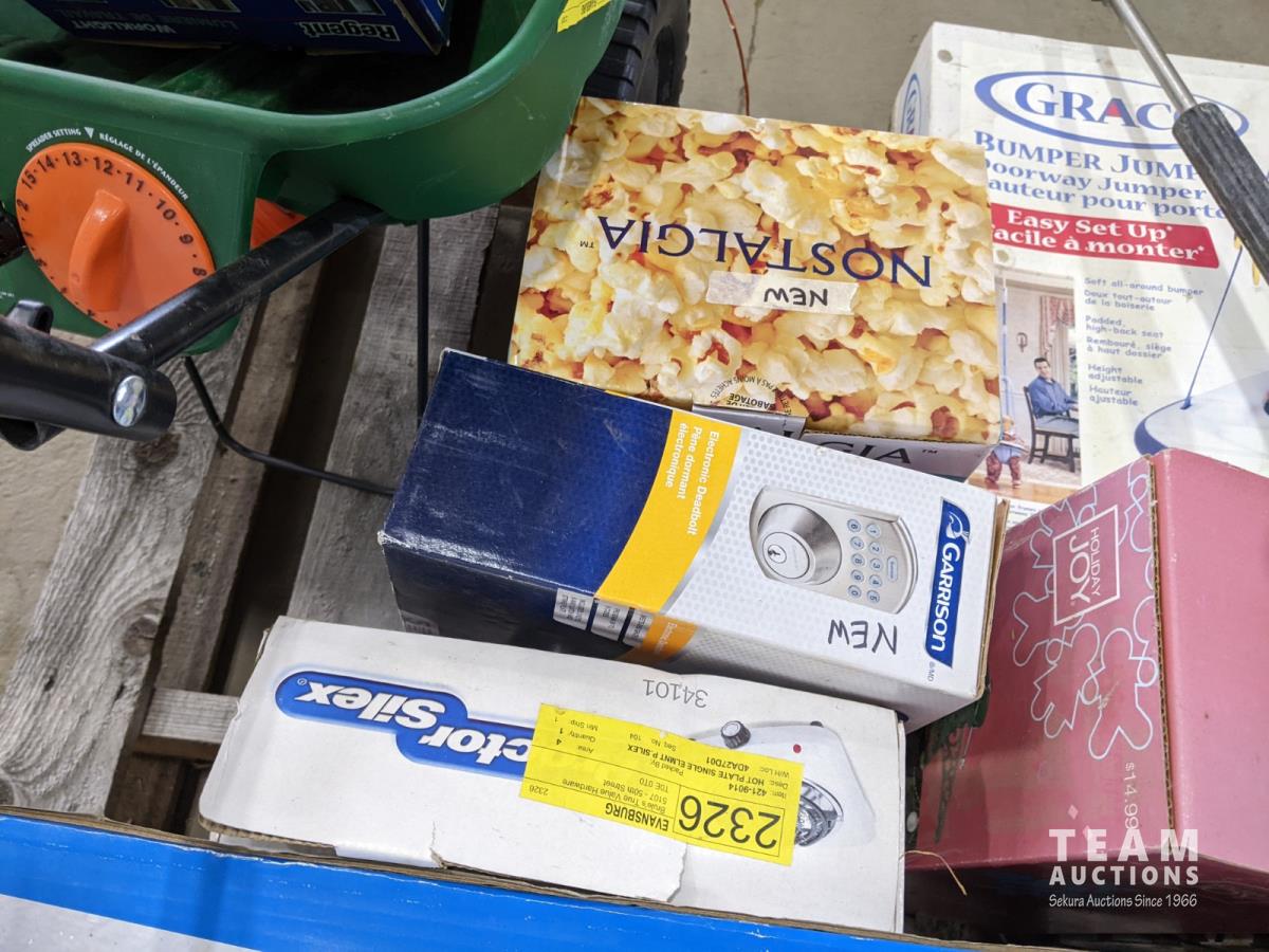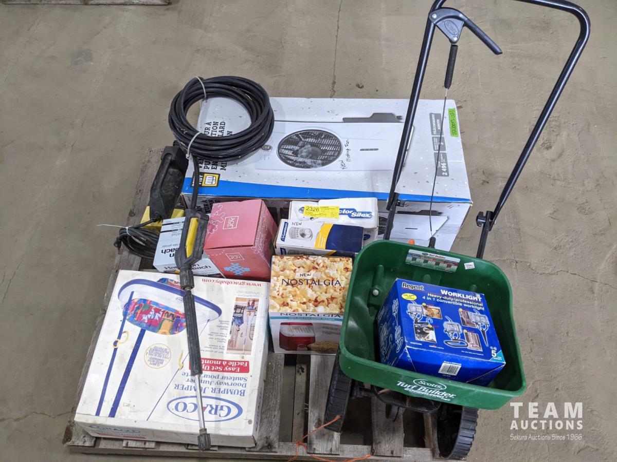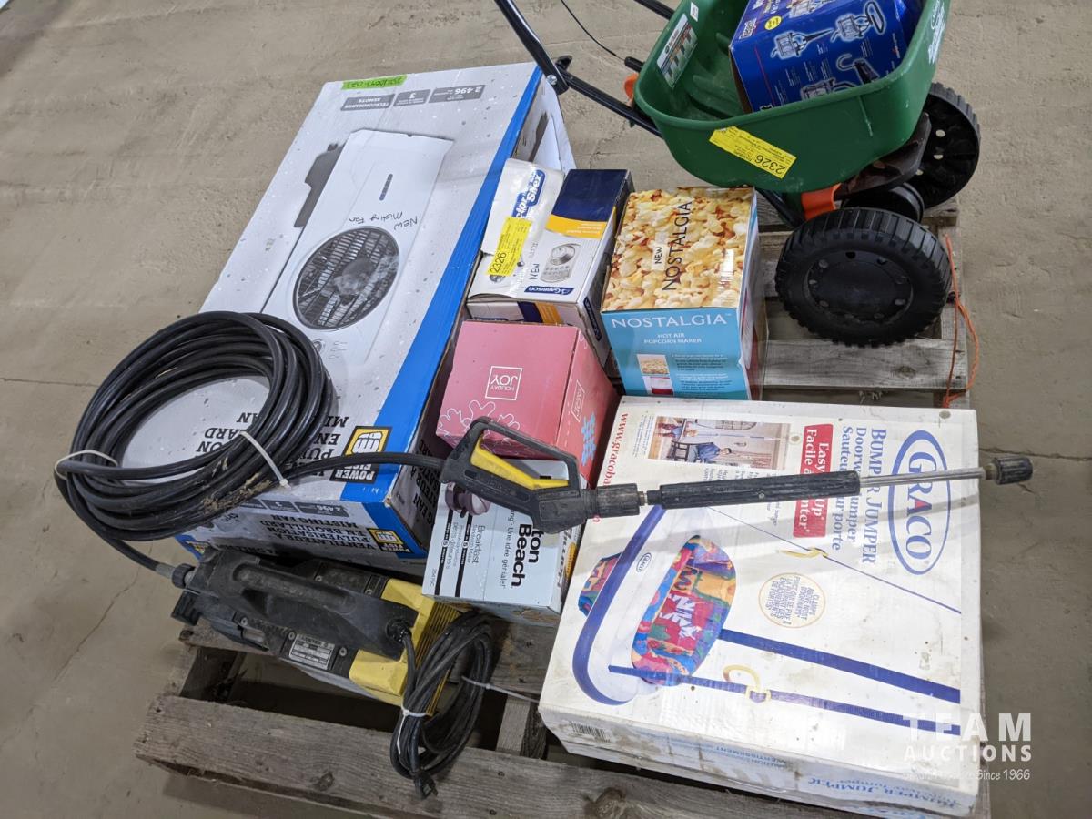 Popcorn maker, pressure washer, door lock, jumper, worklight