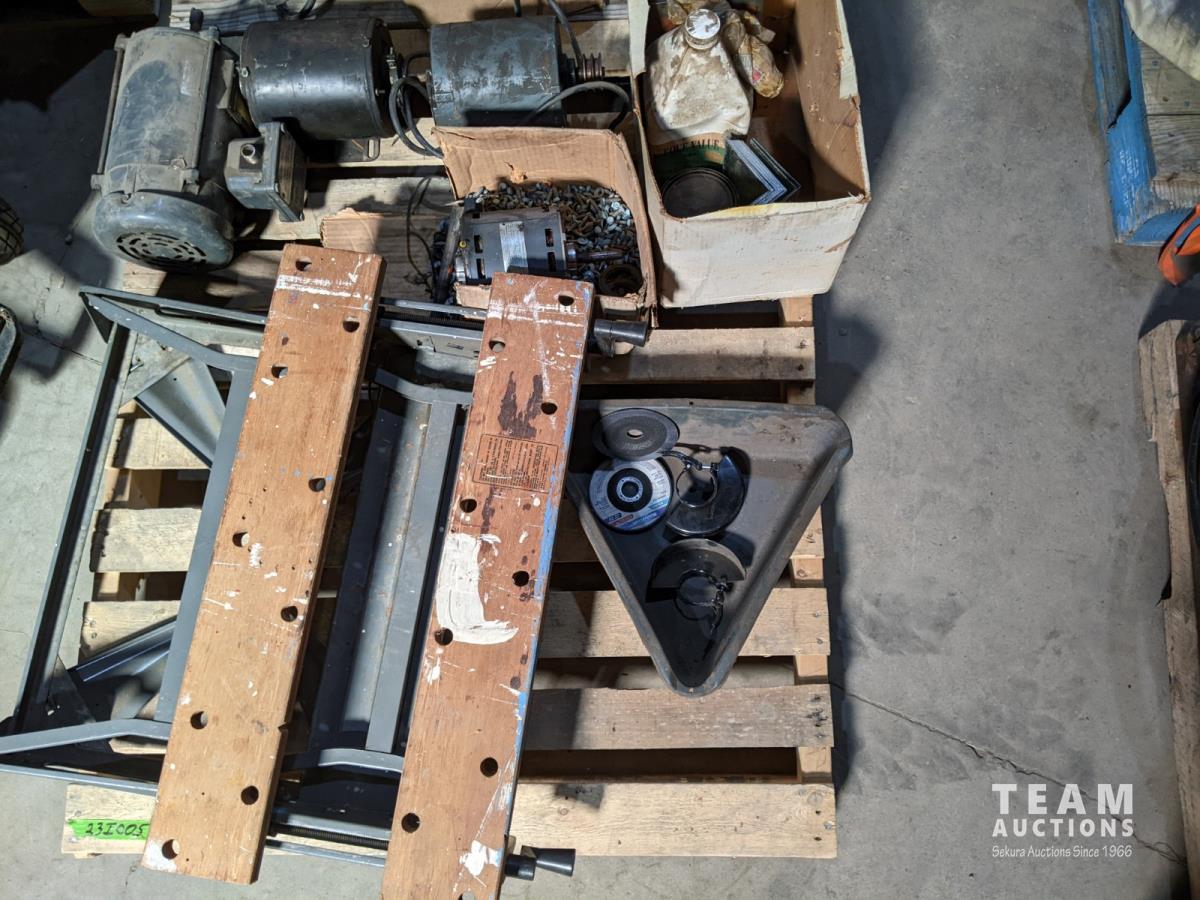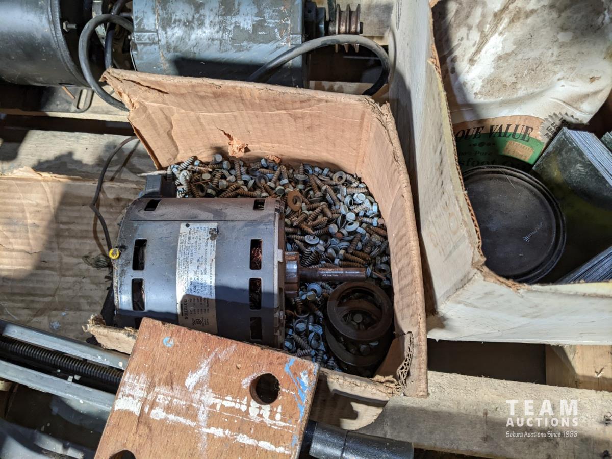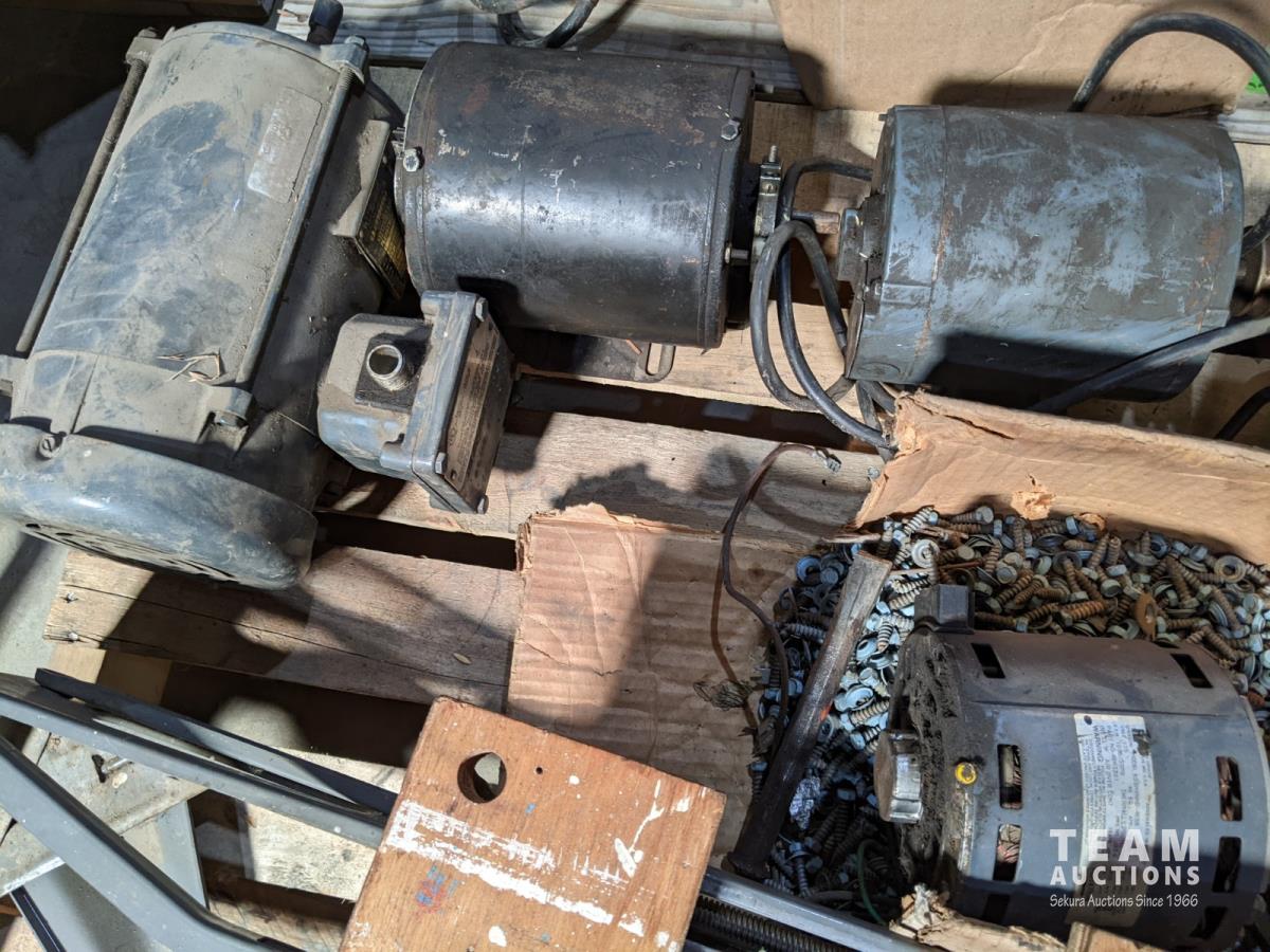 1291 Qty of Motors, Tin Siding Screws and Folding Work Bench