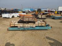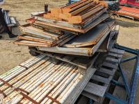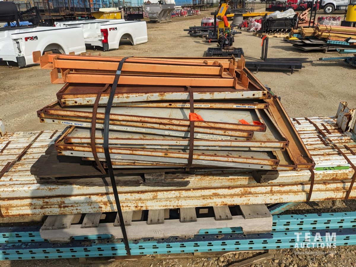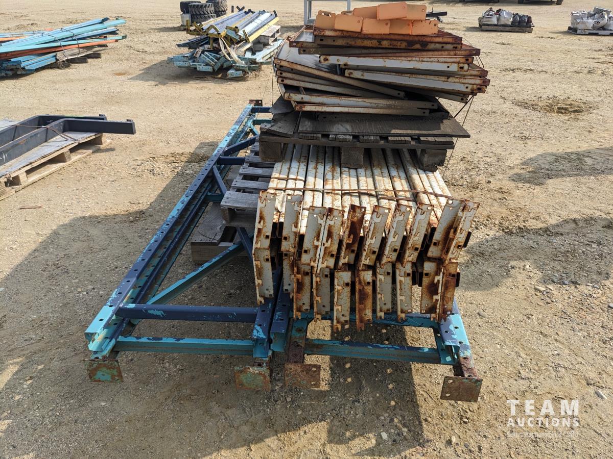 (2) 48 inch X 120 inch end frames, (20) 4 inch X 96 inch shelf cross members, assorted shelving and cross braces