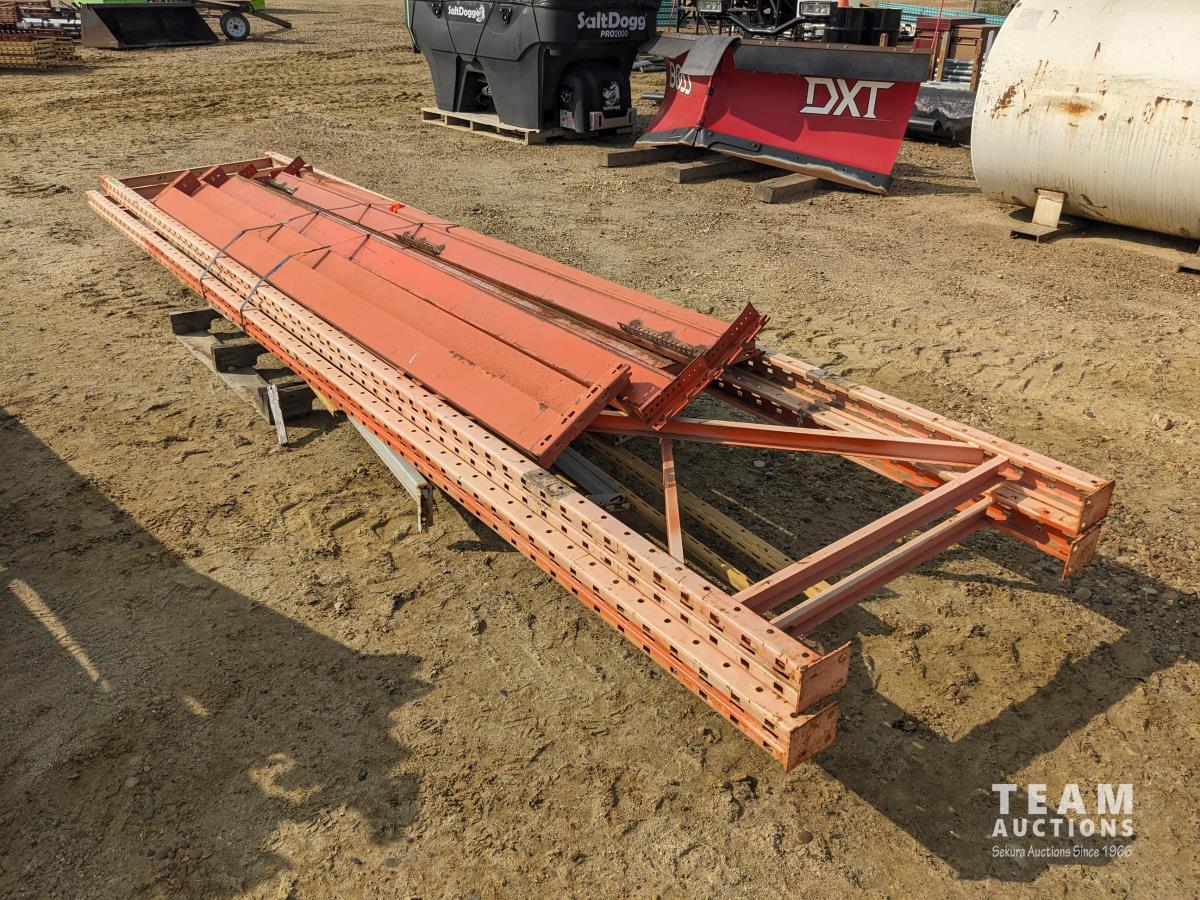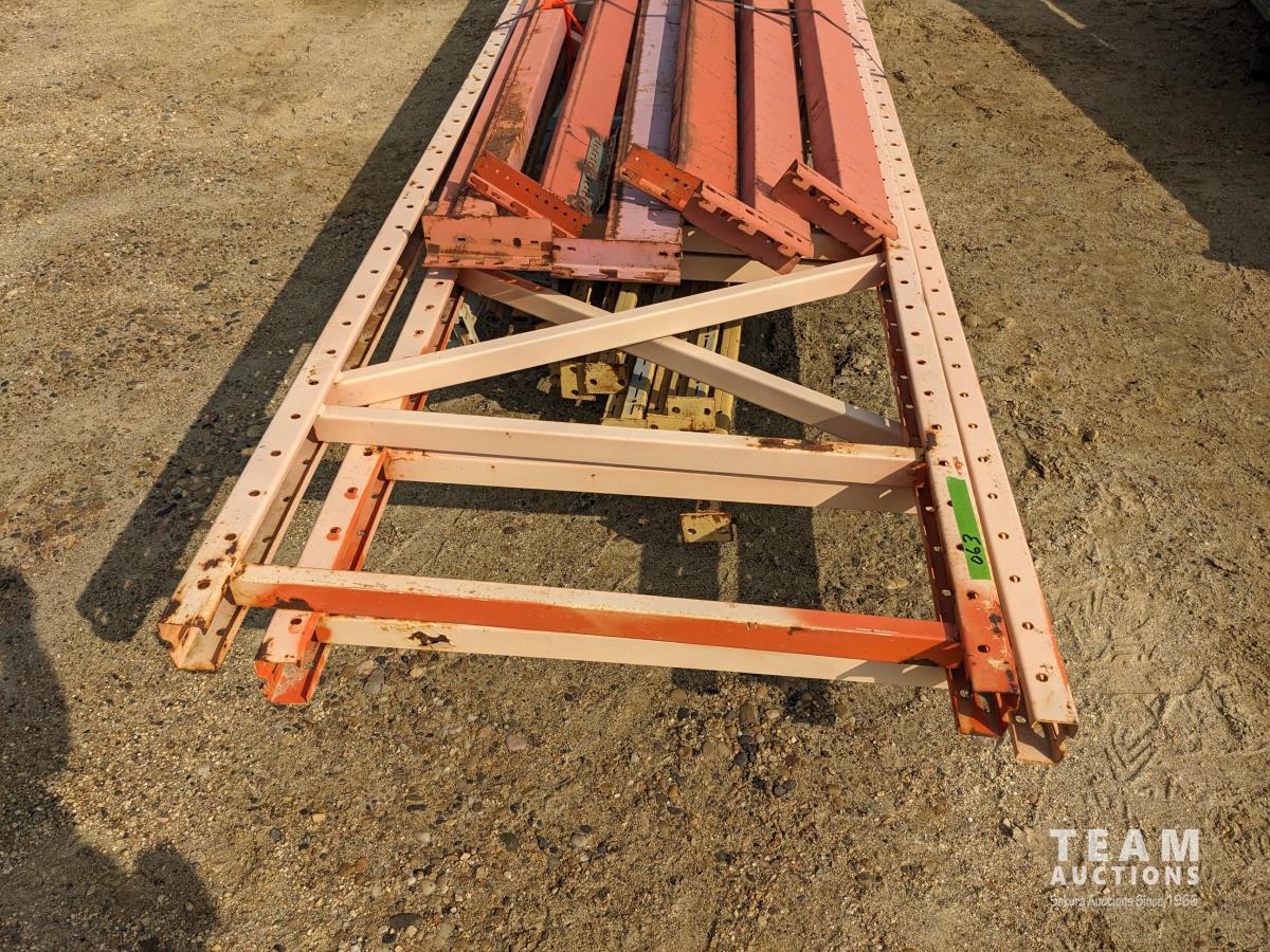 (2) 36 inch X 16 ft end frames, (6) 4 inch X 6 ft shelf cross members, some smaller shelf cross members