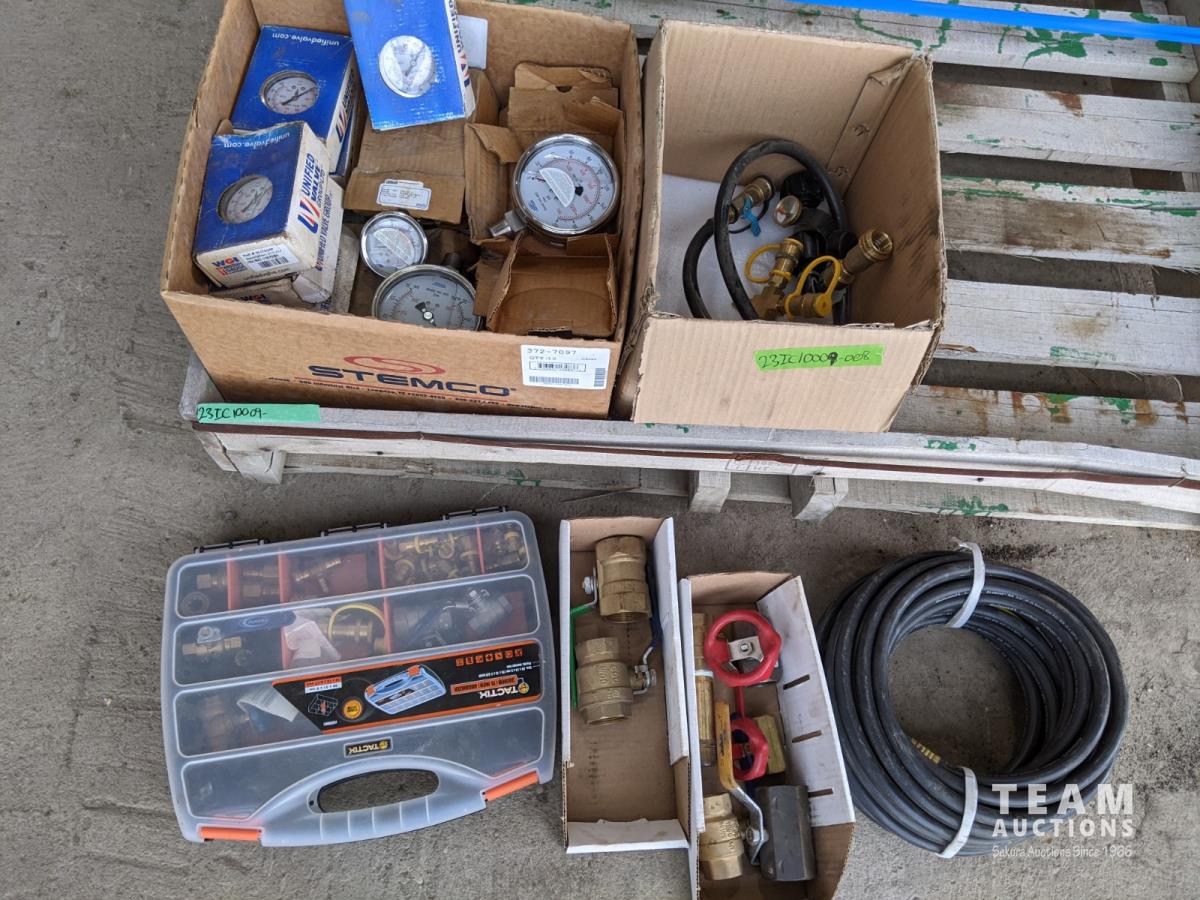 1342 Qty of Pressure Gauges, Ball Valves, Gate Valves, Fittings and Qty of 3/8 Hose