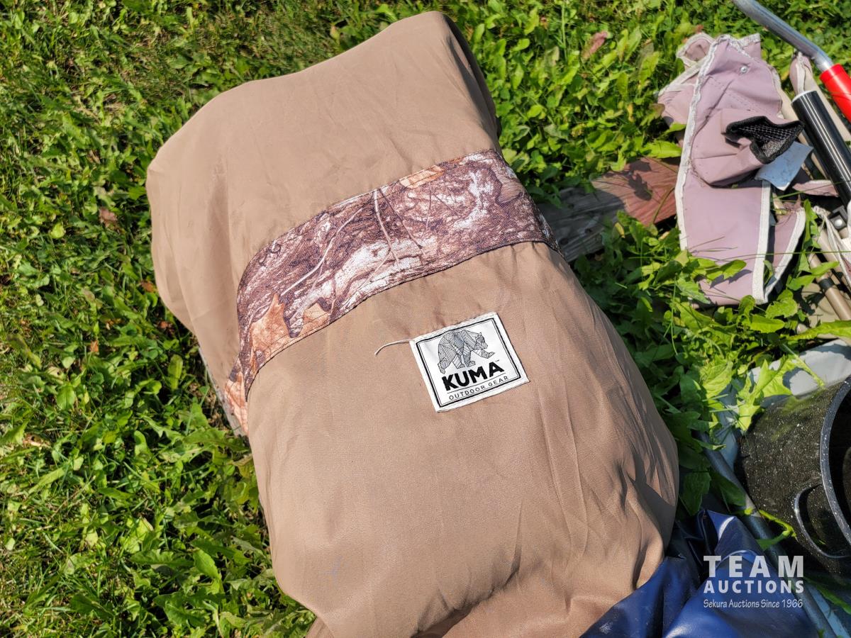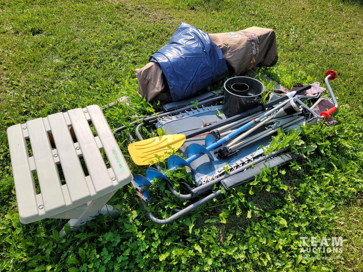 Camping chairs, table, blow up mattress, ice auger, paddle