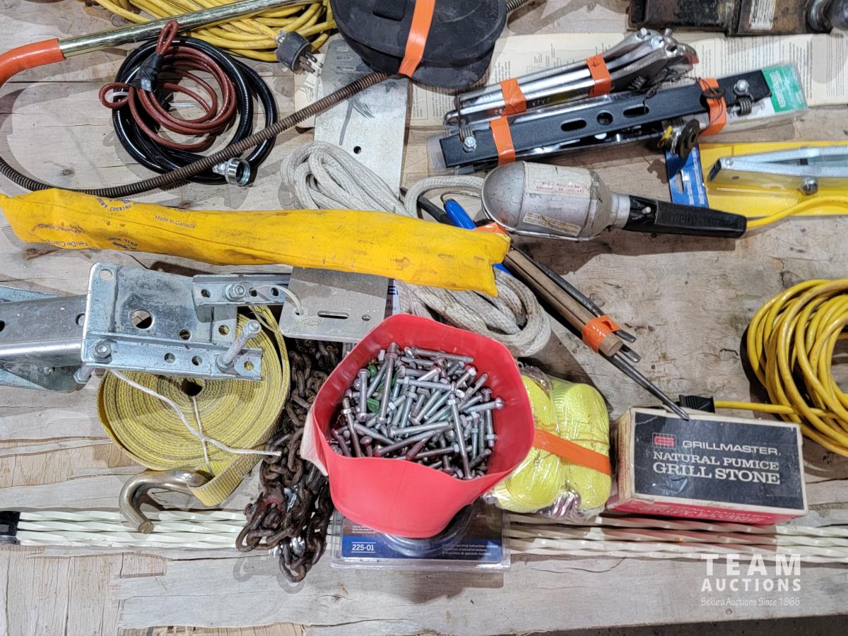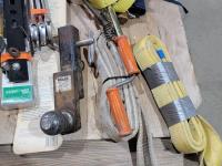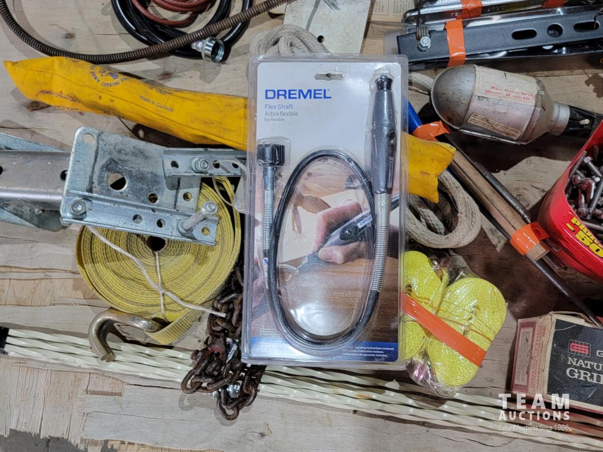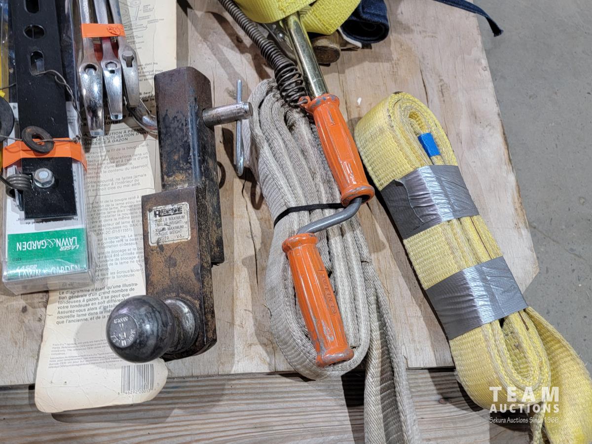 Trouble light, plumbing snake, 1-7/8 inch ball hitch, knee pads, tow straps