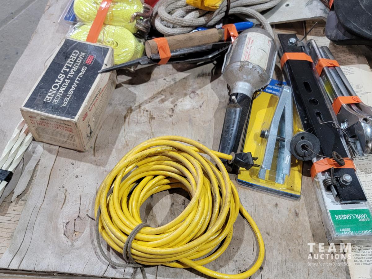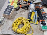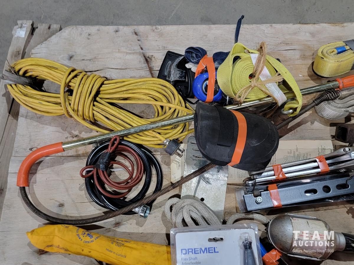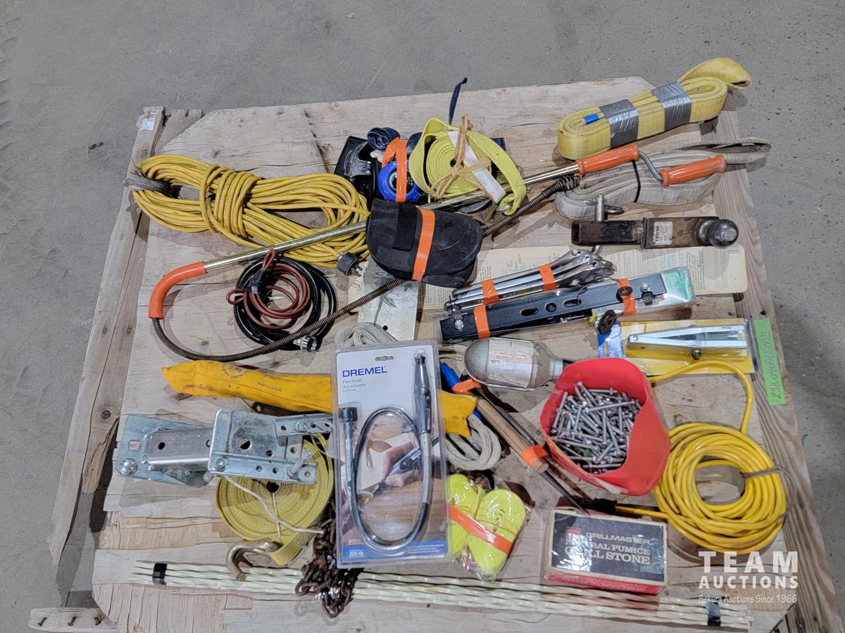 Trouble light, plumbing snake, 1-7/8 inch ball hitch, knee pads, tow straps