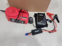 Battery charger, tow strap, power tools, charger, oil and tire sensors