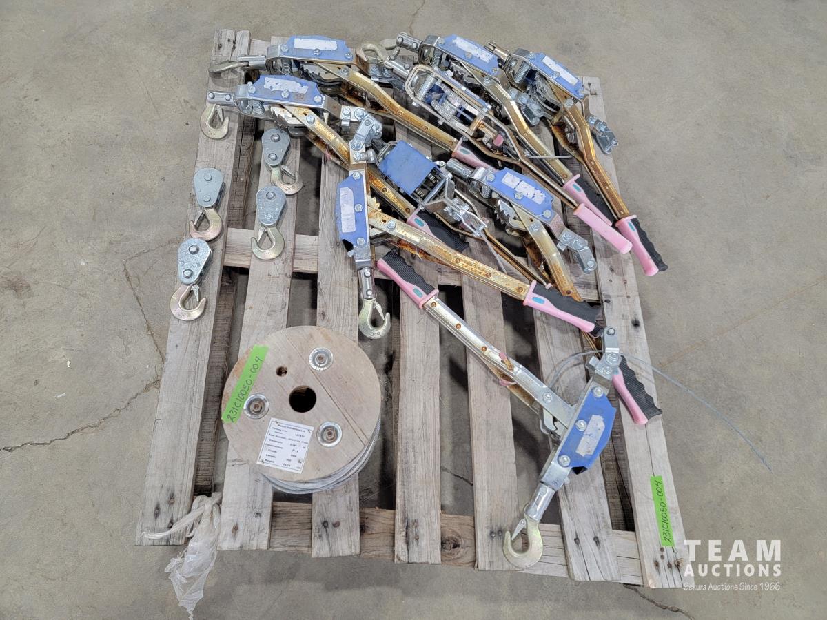 Hitch, winch, come-a-long, wire, hooks
