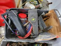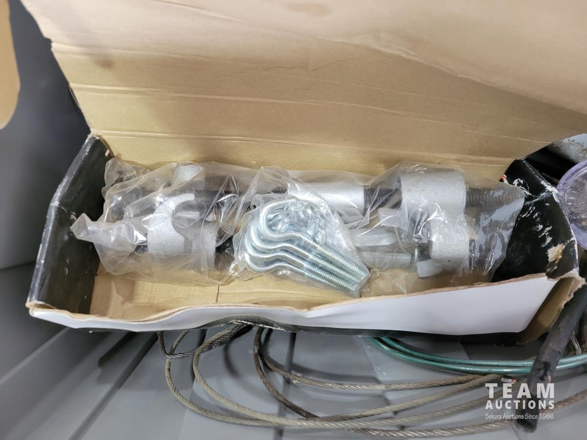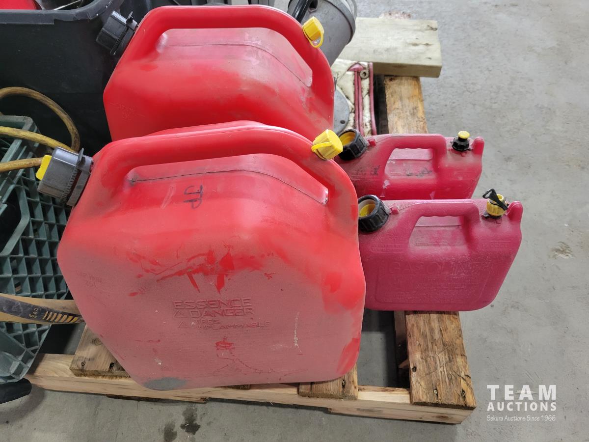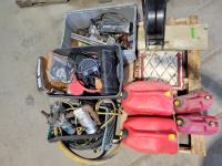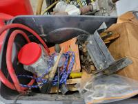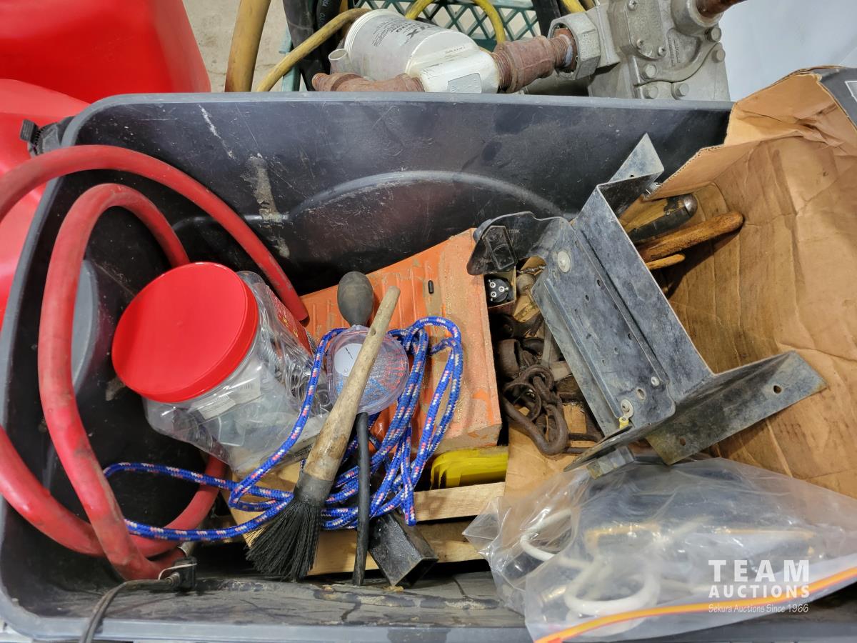 Air hose reel, strut coil spring compressor, hand tools, Jerry cans, GPI 115v fuel transfer pump