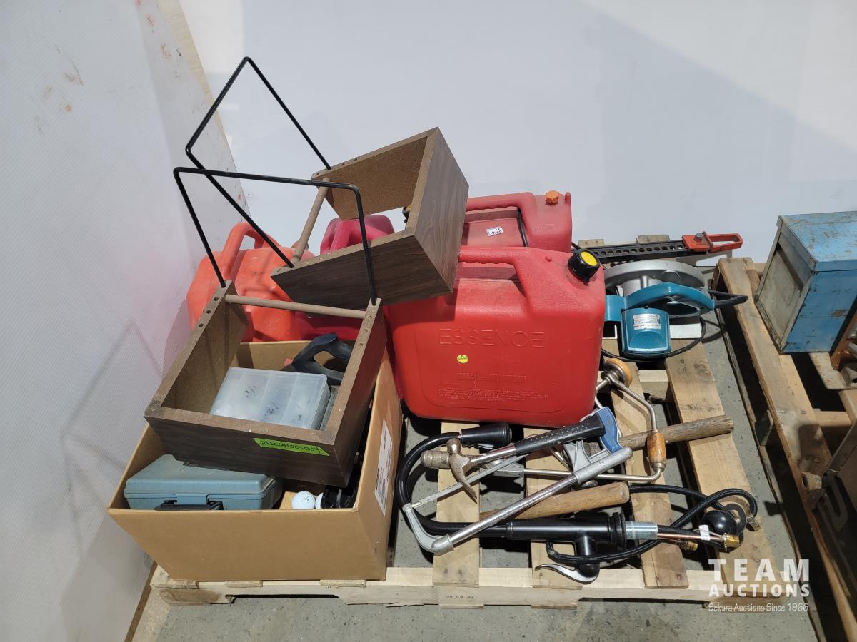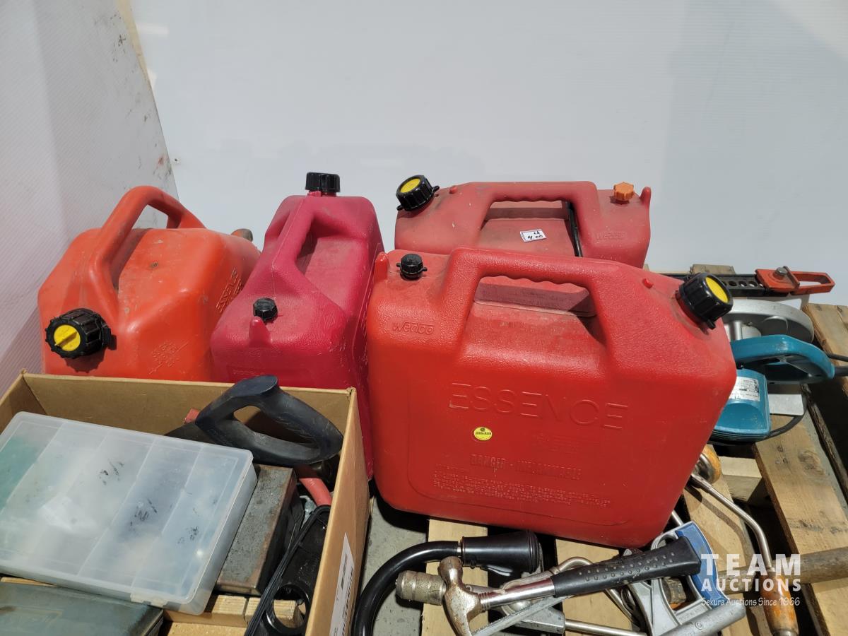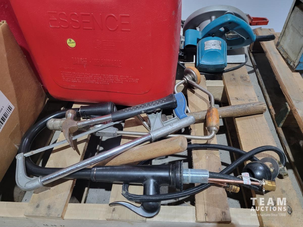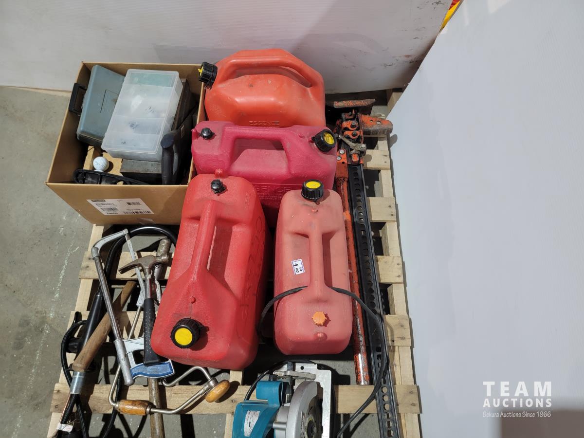 (4) jerry cans, jack all, Makita 7-1/4 inch circular saw, hand tools, AMP crimping tool, kitchen tap