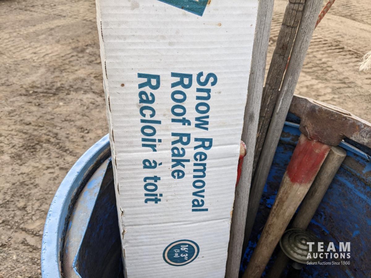 Broom, rake, shovels, roof rake