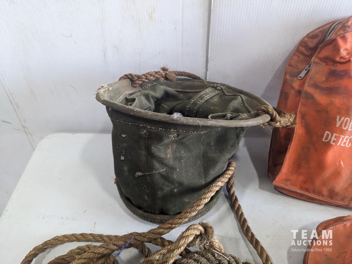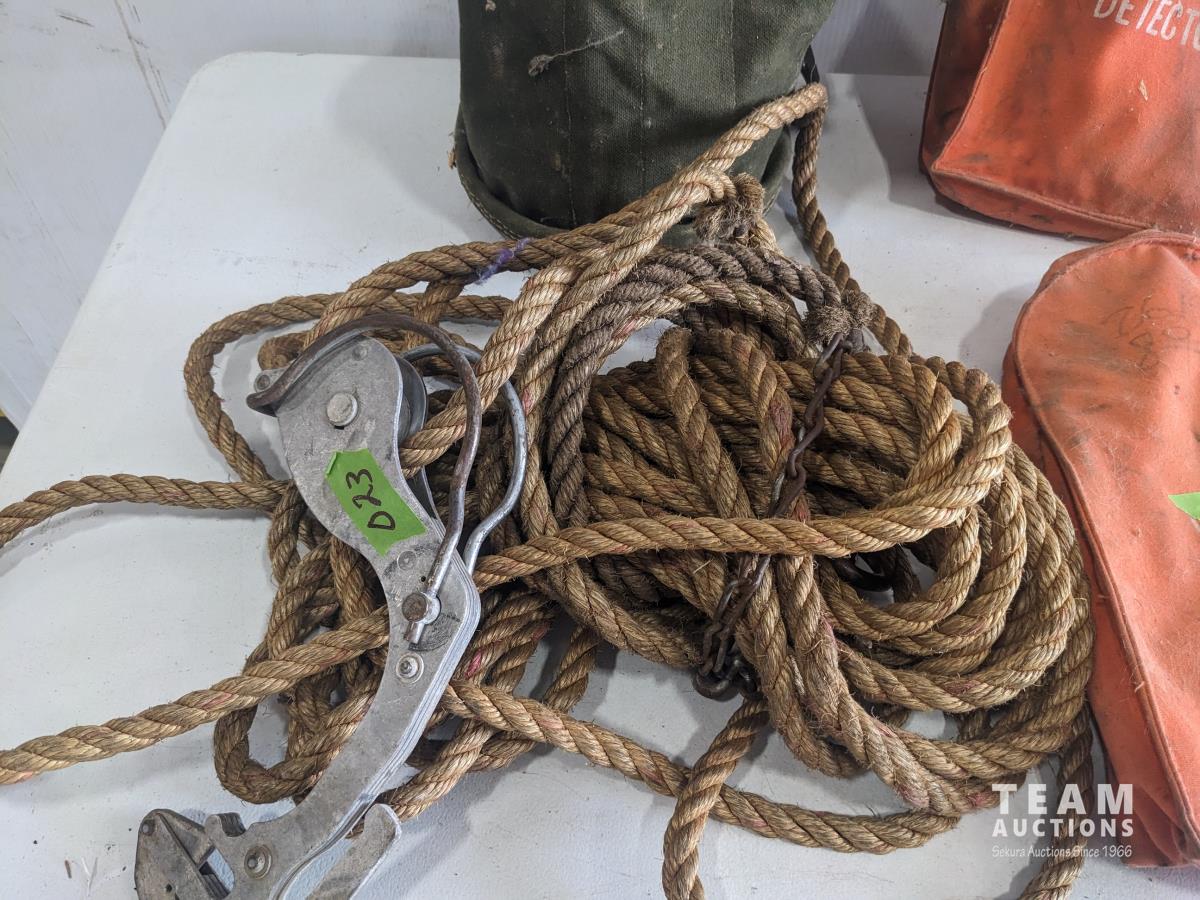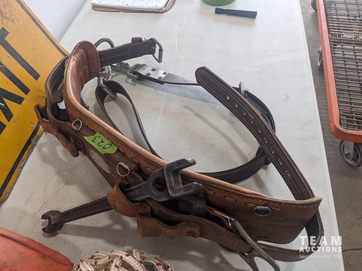 (2) safety belts, (2) voltage detectors, no exit sign, tool bag, wire stretcher