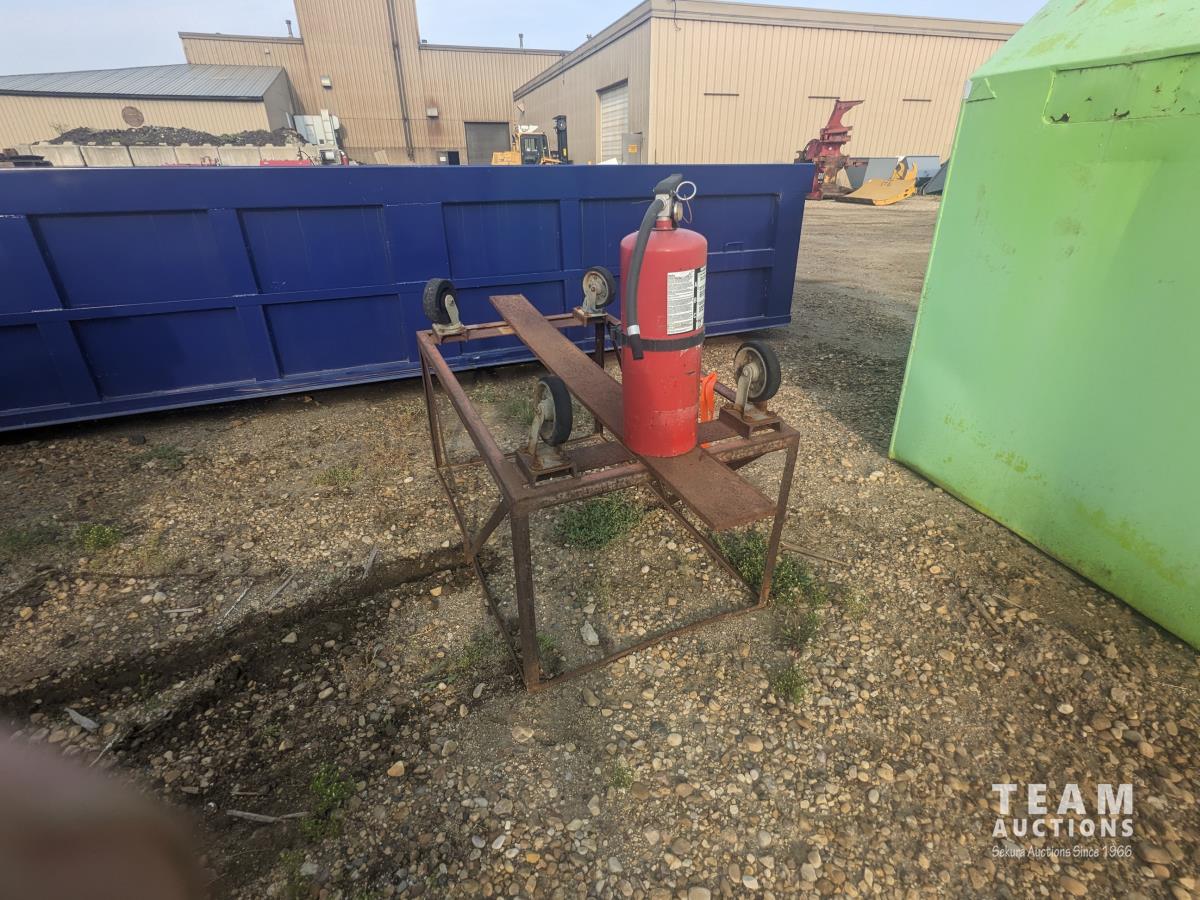 30 inch X 48 inch X 33 inch high, (1) fire extinguisher. piece of heavy flat bar