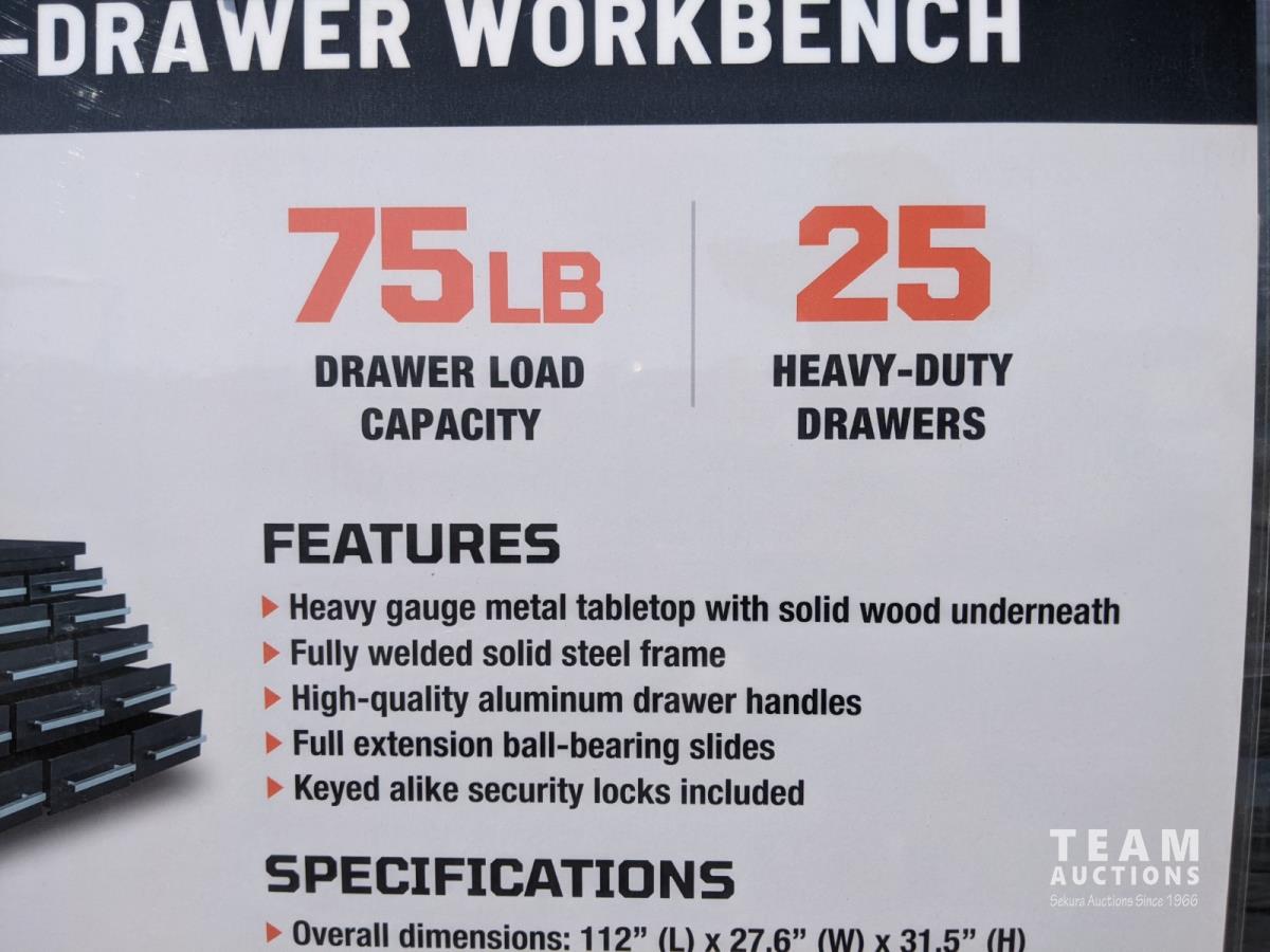 2030 TMG Industrial 10 Ft 25 Drawer Workbench (Unused)
