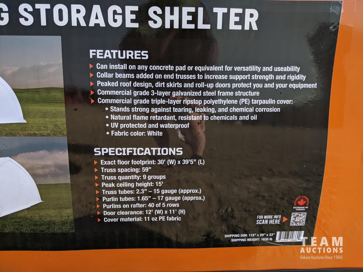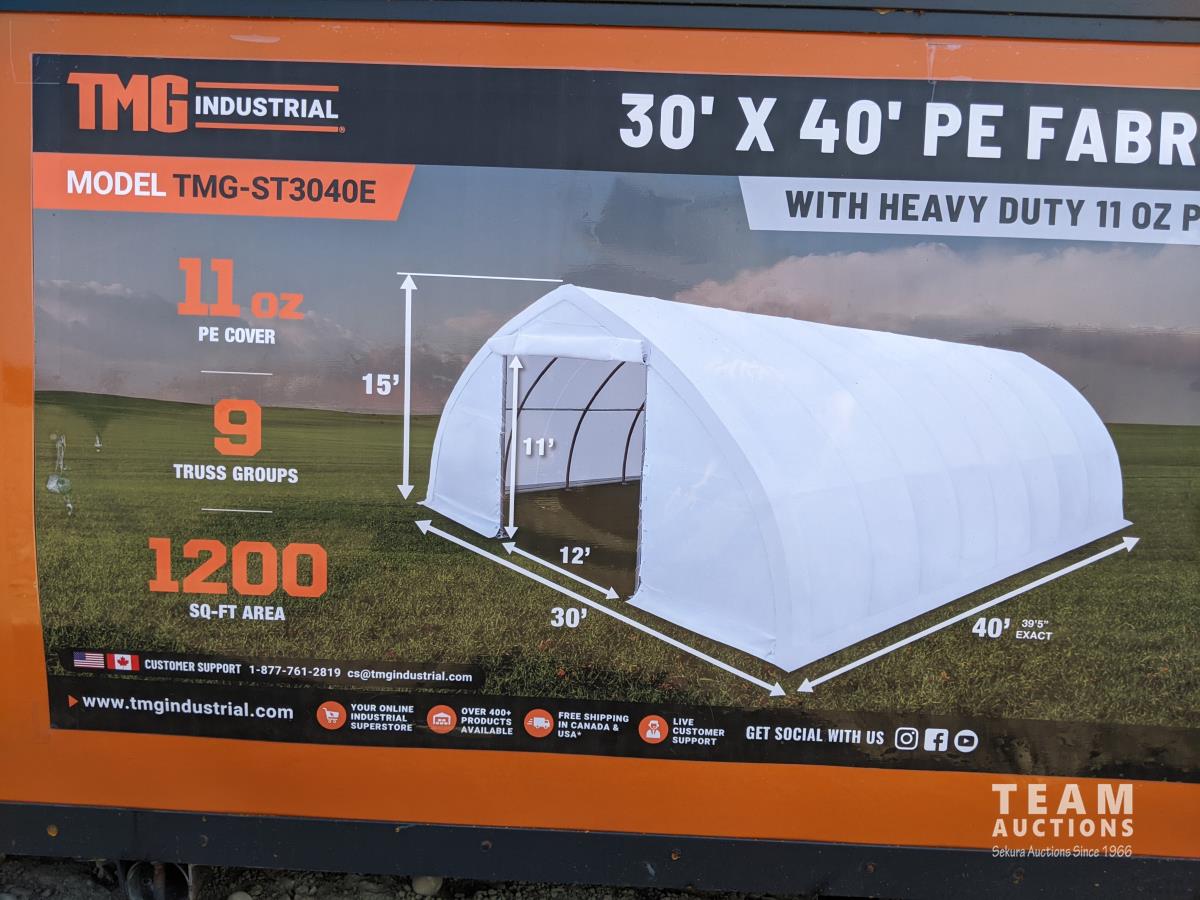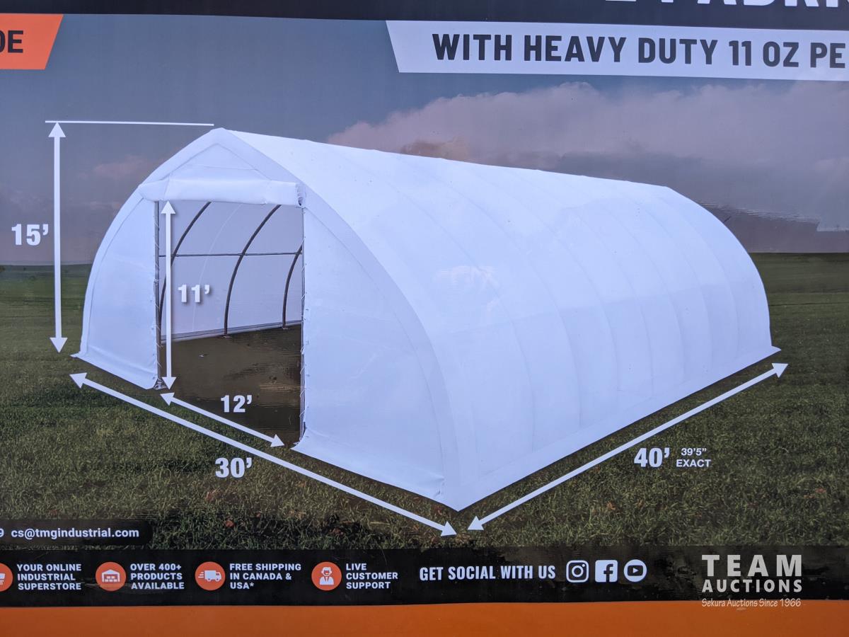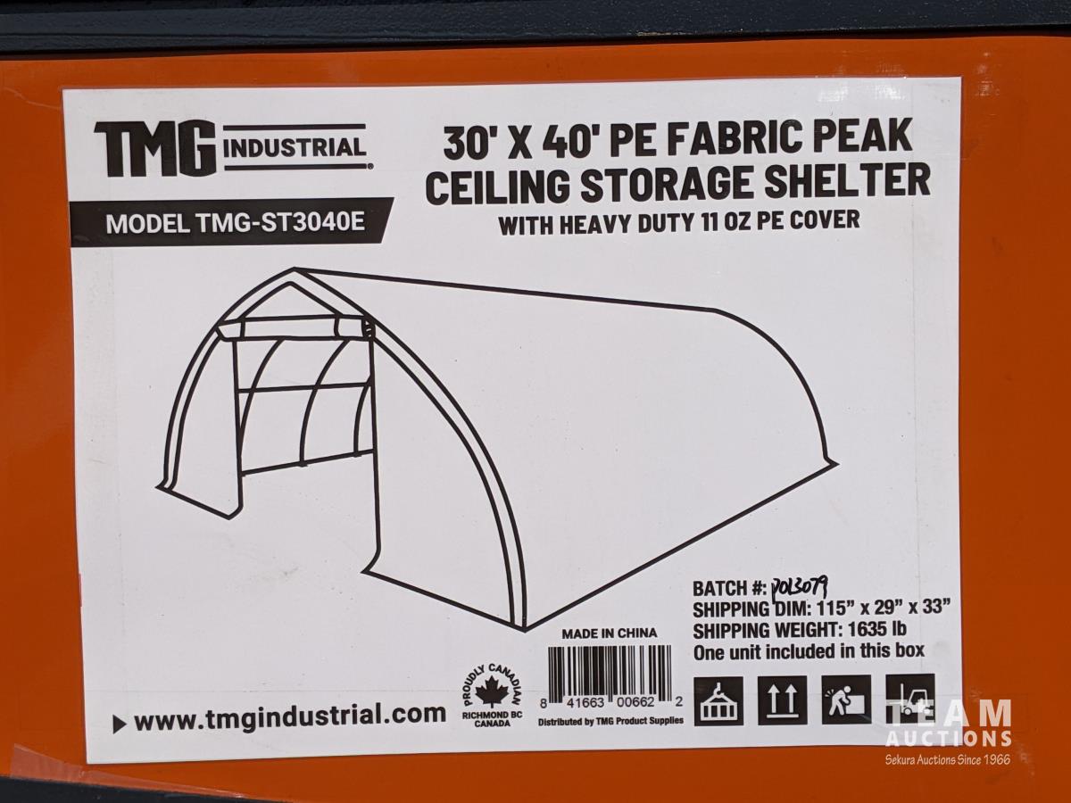 2063 TMG Industrial 30 Ft X 40 Ft Peak Ceiling Storage Shelter (Unused)