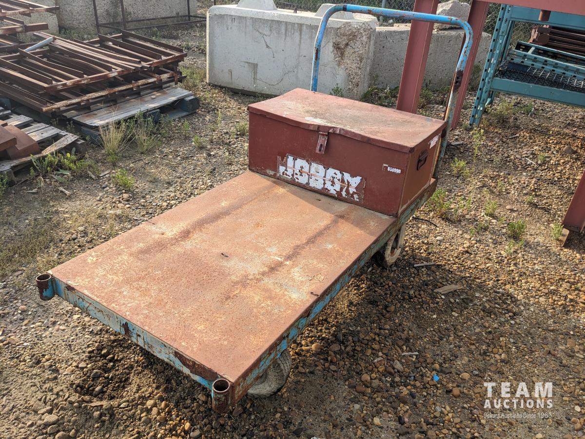 30 inch X 60 inch cart, rubber pneumatic tires, job box with placards and safety signs