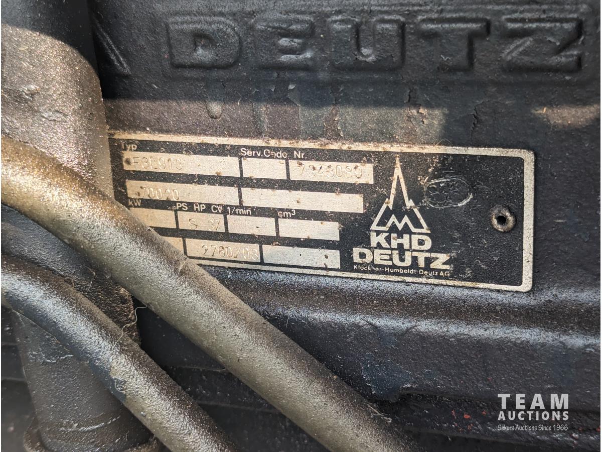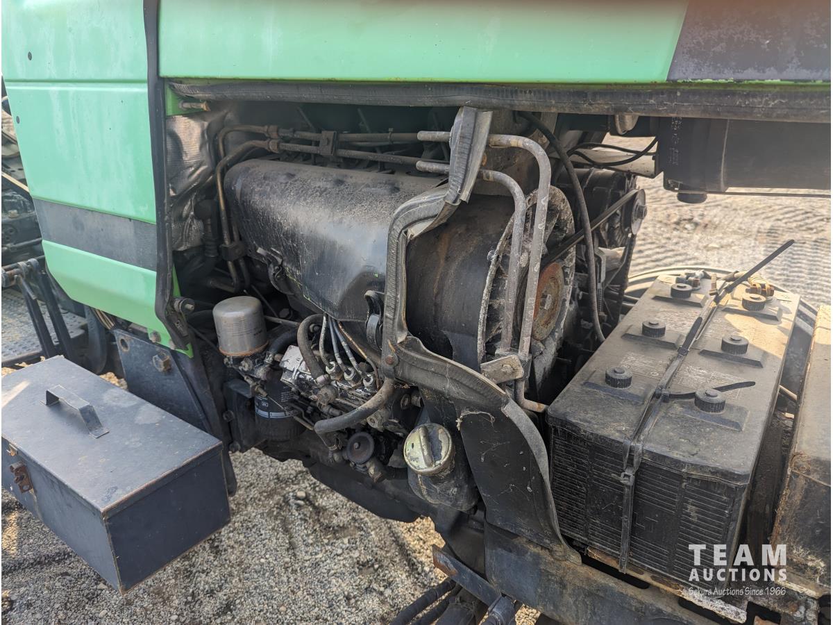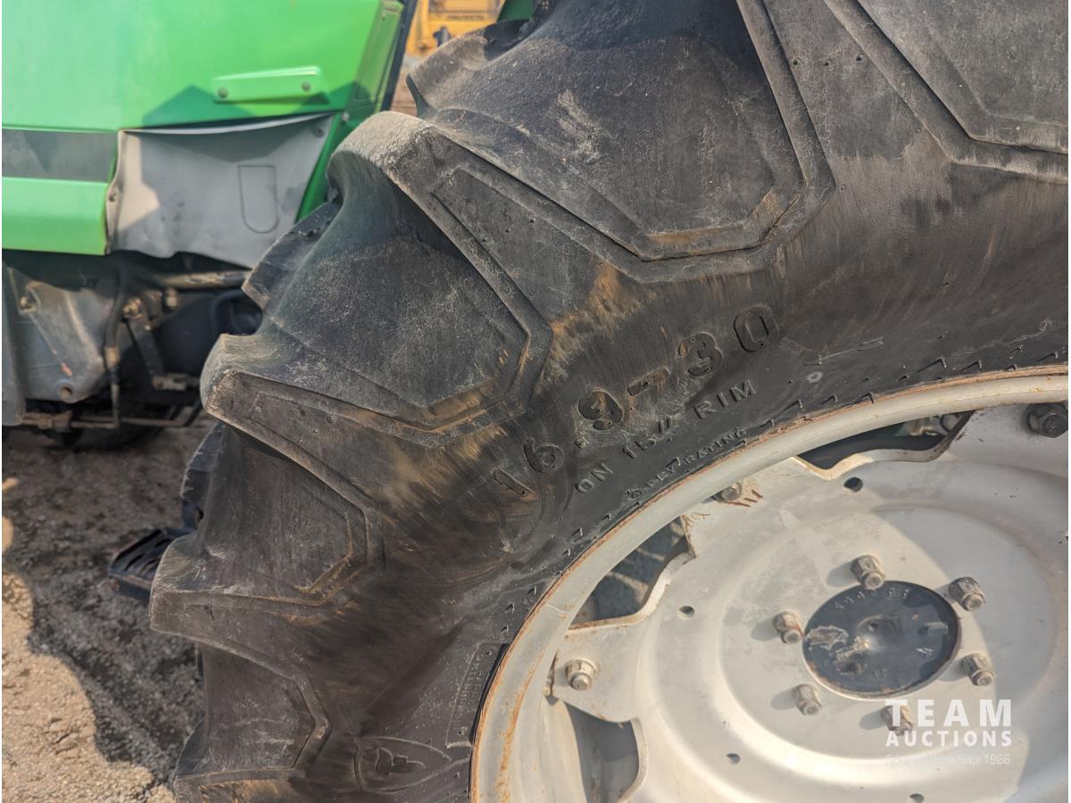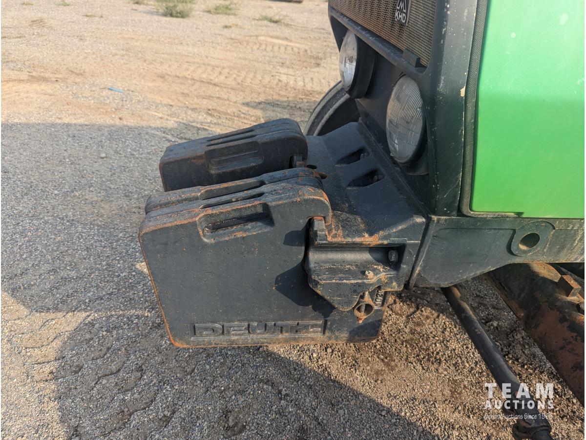 Deutz F3L913 187 cu in 3 cylinder 60 HP, diesel engine, 8 speed partial synchro transmission, 13.5 GPM hydraulic pump, open station platform, 6 front weights, 540 PTO, 3 point hitch, 2 rear hydraulic outlets, 16.9-30 rear tires, 10.00-16 tires