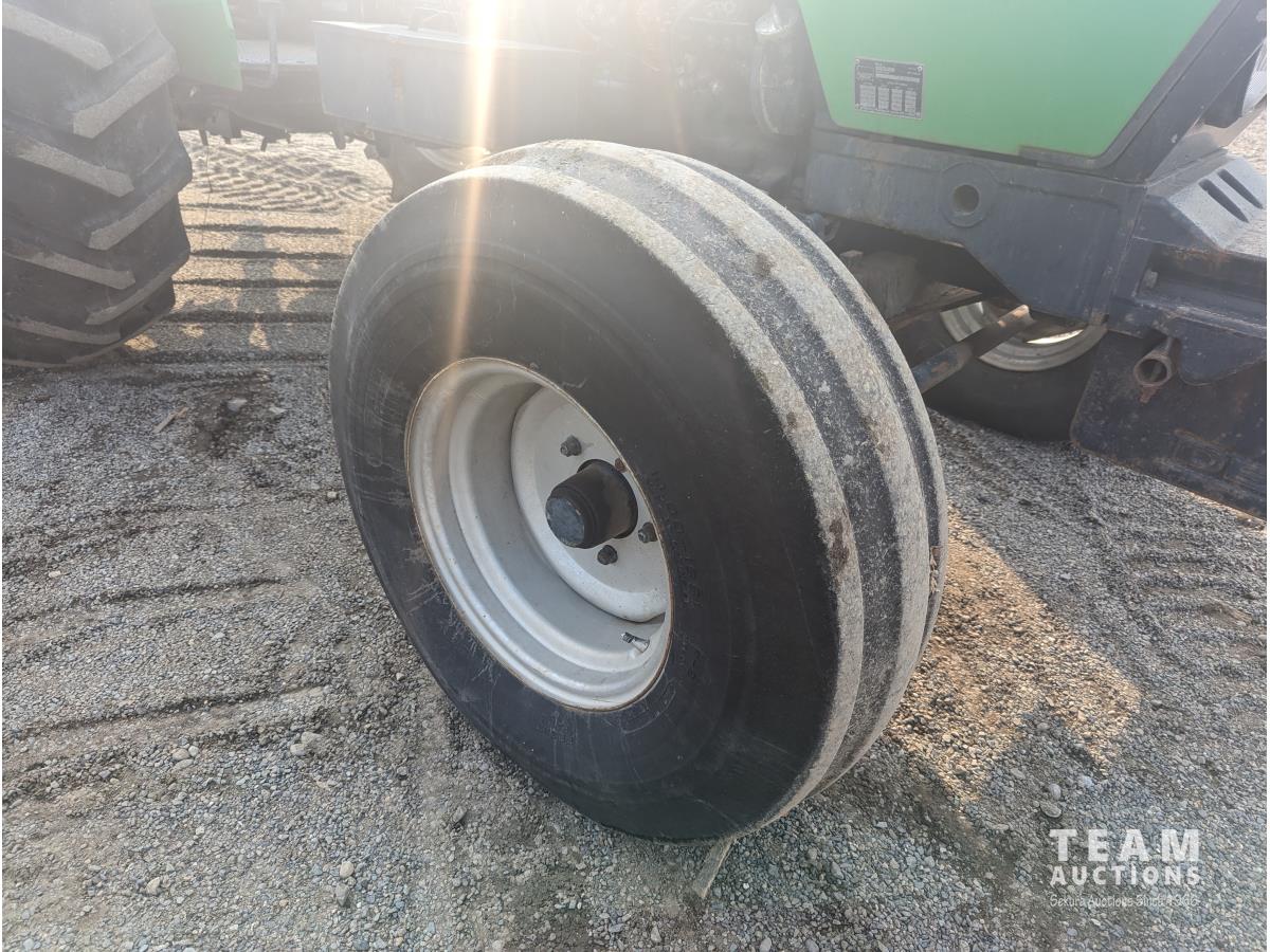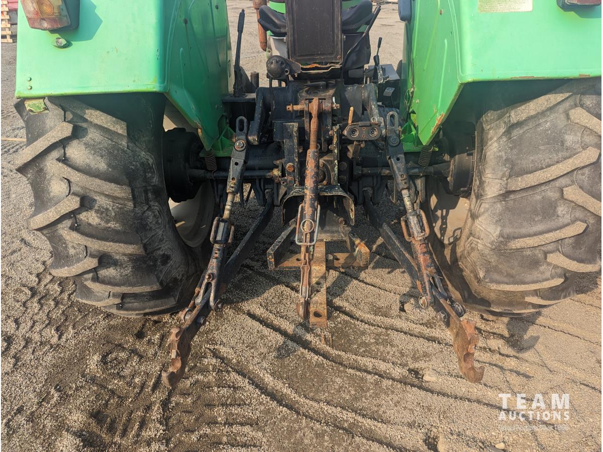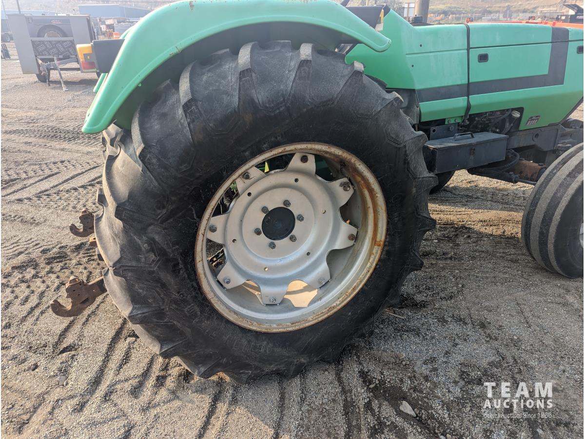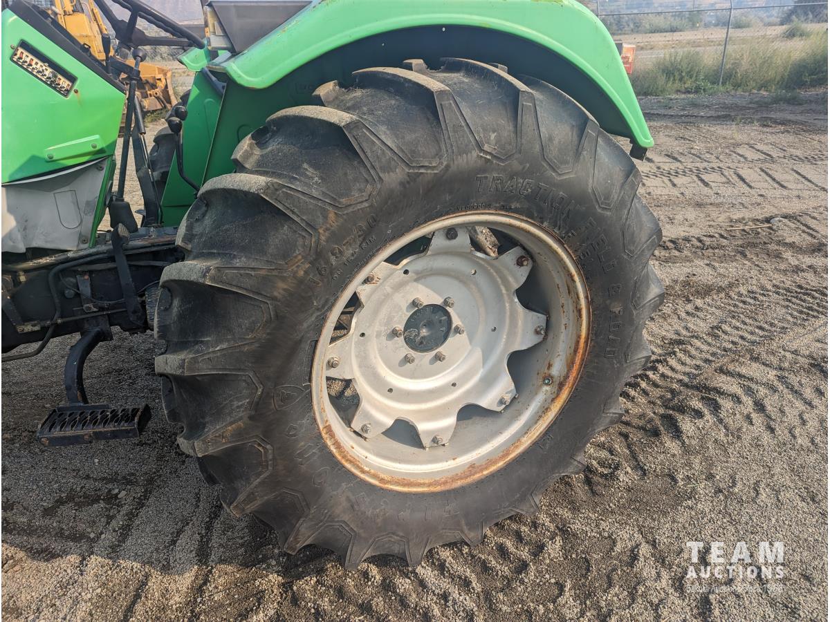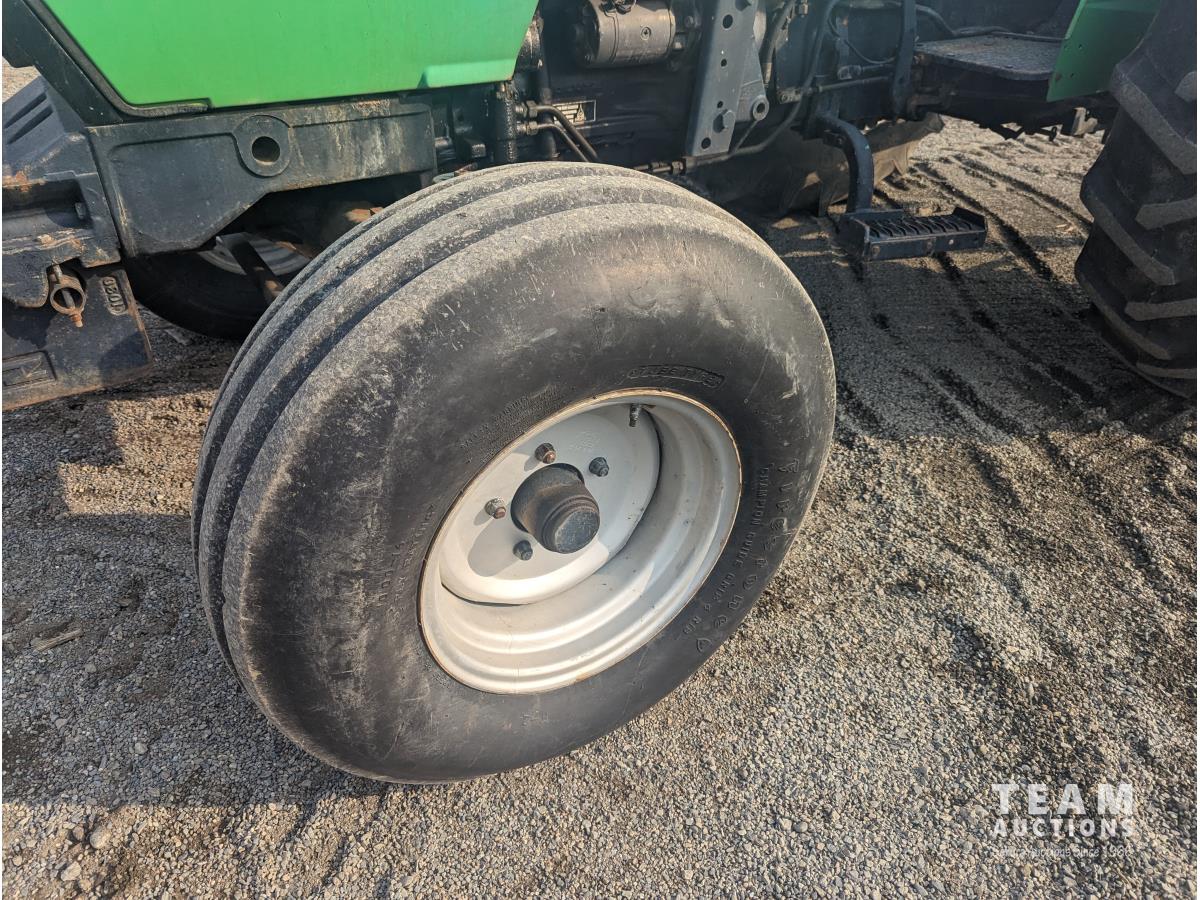 Deutz F3L913 187 cu in 3 cylinder 60 HP, diesel engine, 8 speed partial synchro transmission, 13.5 GPM hydraulic pump, open station platform, 6 front weights, 540 PTO, 3 point hitch, 2 rear hydraulic outlets, 16.9-30 rear tires, 10.00-16 tires