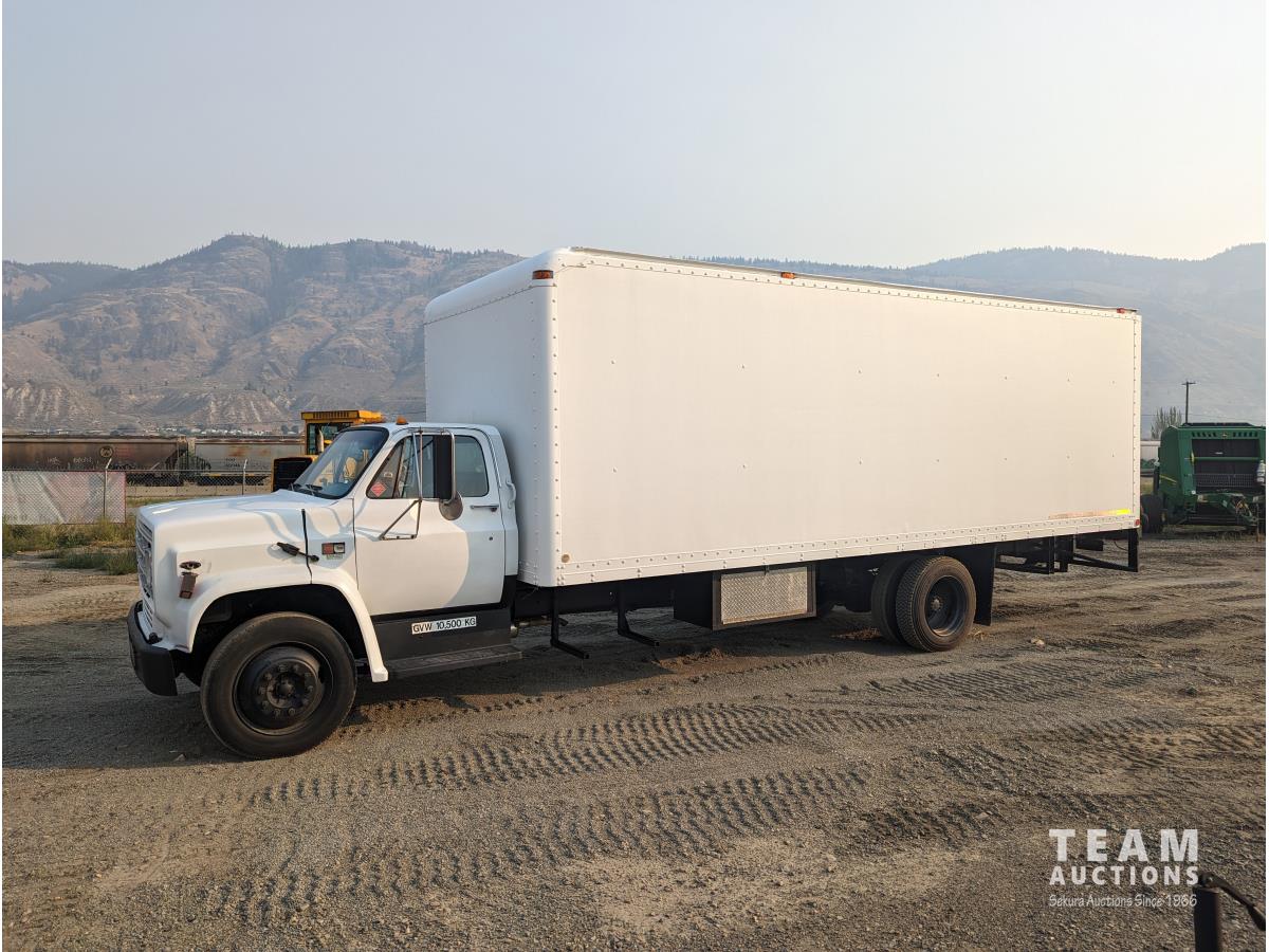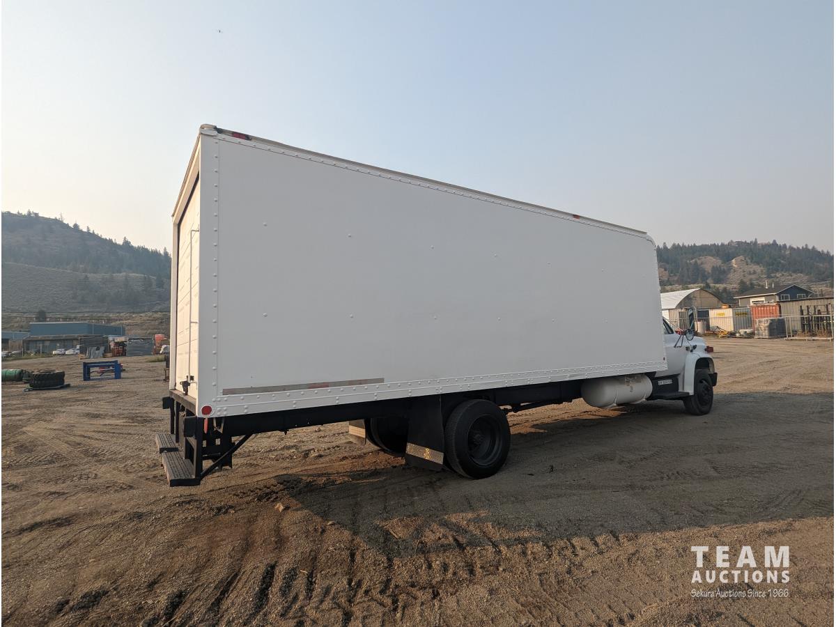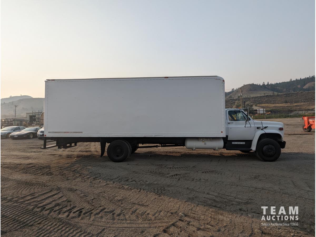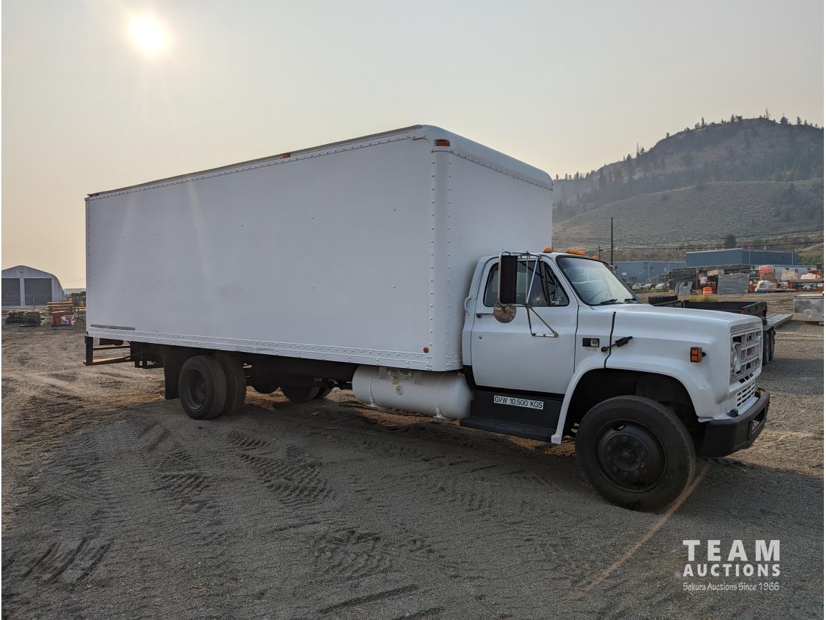 GMC 427 cu in V8 propane engine, 5 speed manual transmission, 45 inch X 22 inch X 20 inch steel tool boxes, 24 ft van, cargo ramp, spring suspension, 239 inch WB, 255/70R22.5 front tires, 235/80R22.5 rear tires