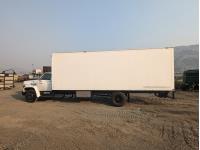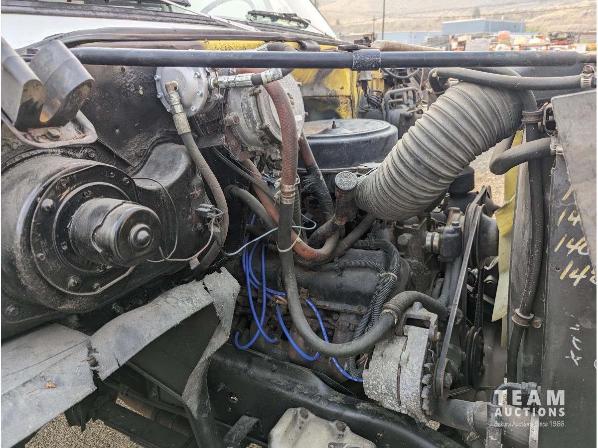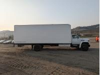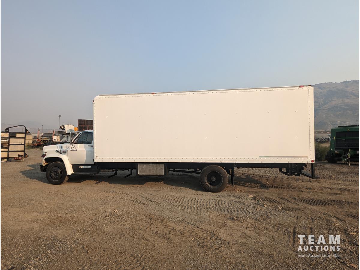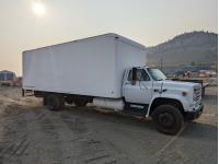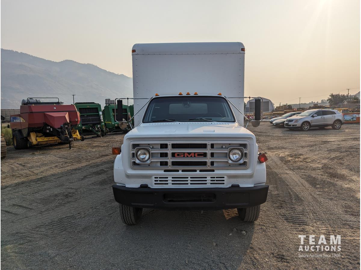 GMC 427 cu in V8 propane engine, 5 speed manual transmission, 45 inch X 22 inch X 20 inch steel tool boxes, 24 ft van, cargo ramp, spring suspension, 239 inch WB, 255/70R22.5 front tires, 235/80R22.5 rear tires