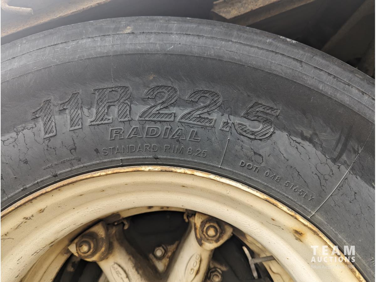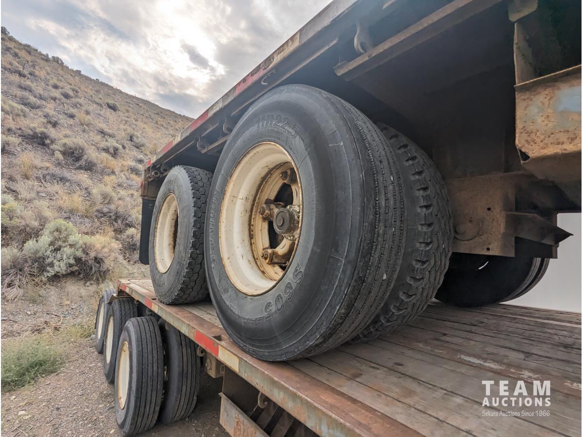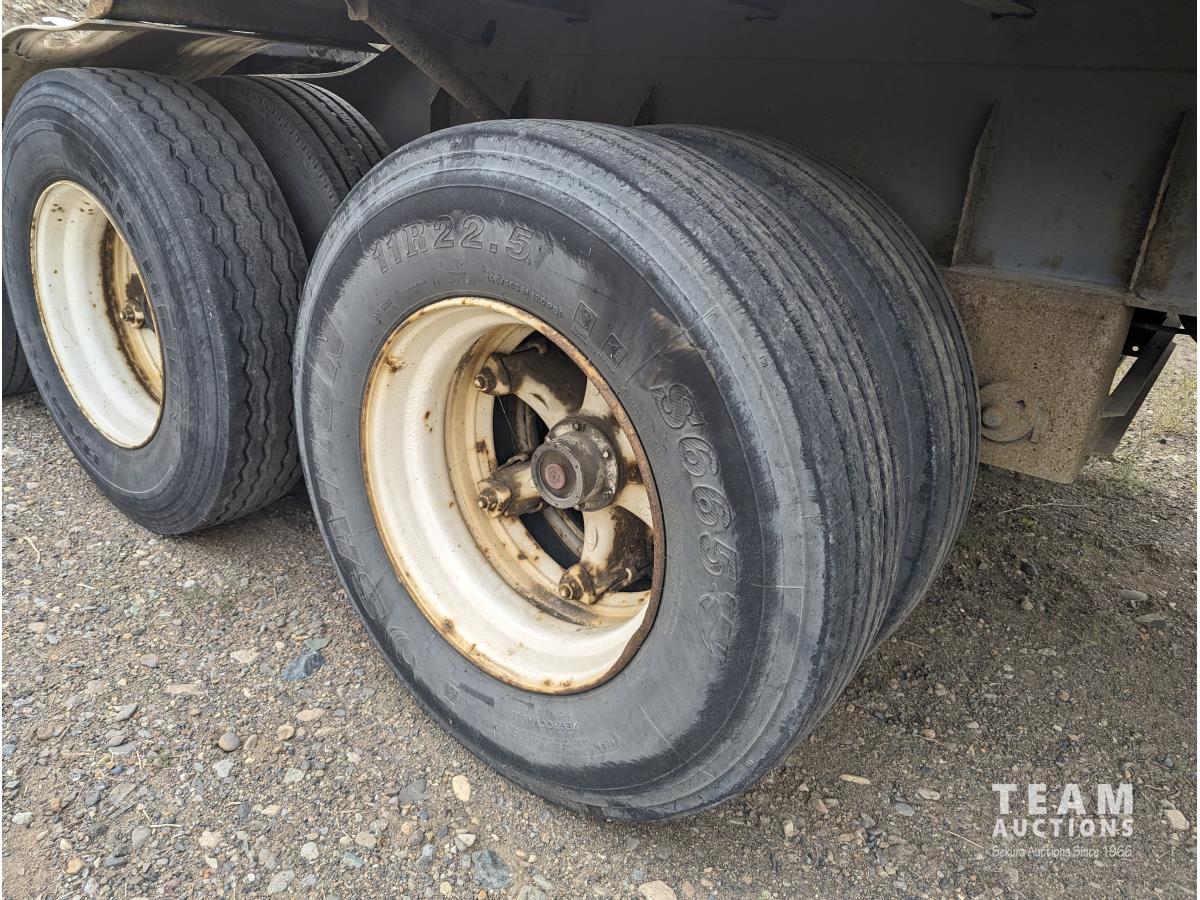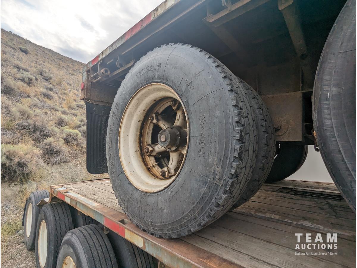 102 inch wide deck, 32 ft lead length, 28 ft pup length, wood deck, stake pockets, cargo winches, air ride suspension, 11R22.5 tires