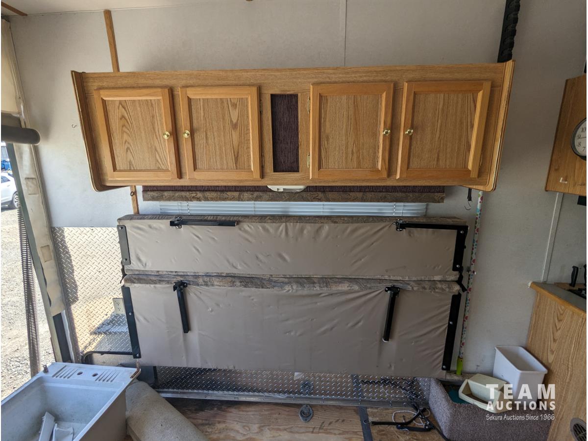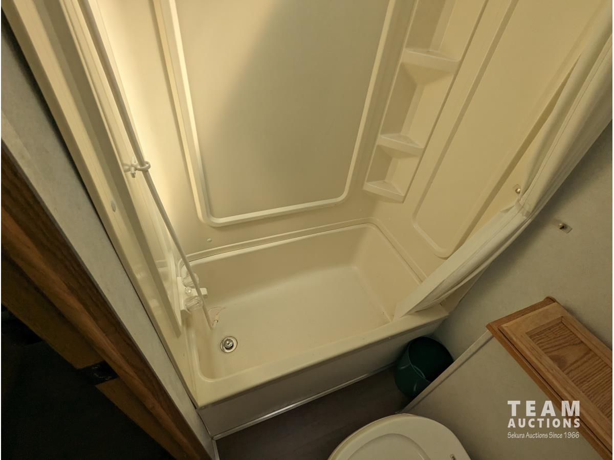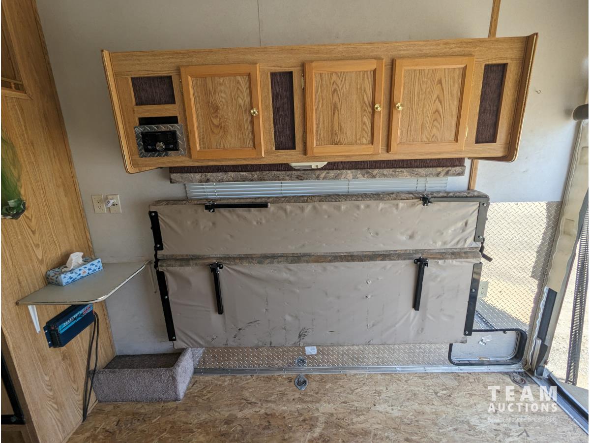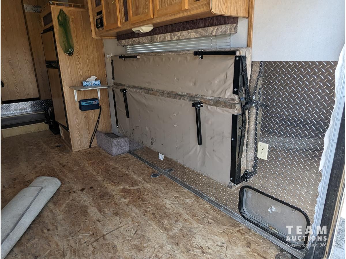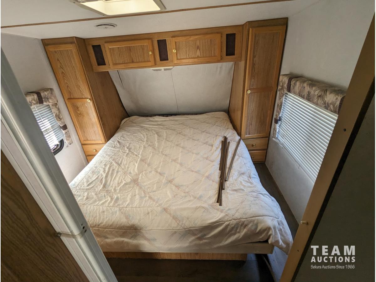Fridge, freezer, stove, microwave, (2) portable BBQ's, (2) fold out beds in garage, bedroom with queen bed, bathroom w/shower, A/C heat, stereo, electric jack, awning, fold down garage door, 225/75R15 tires
