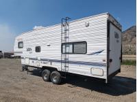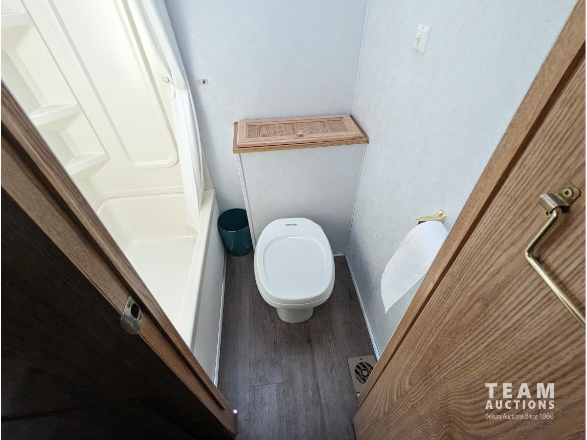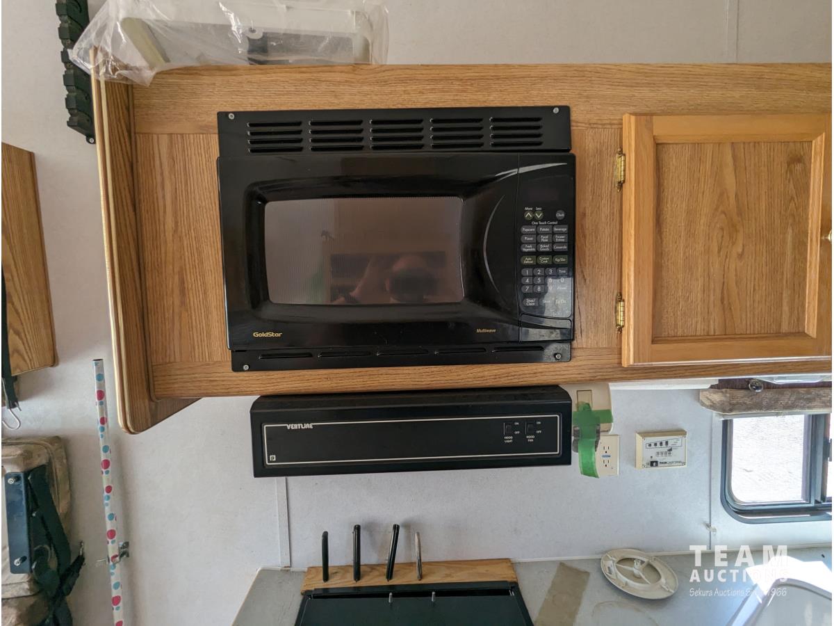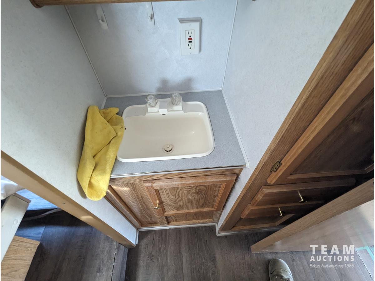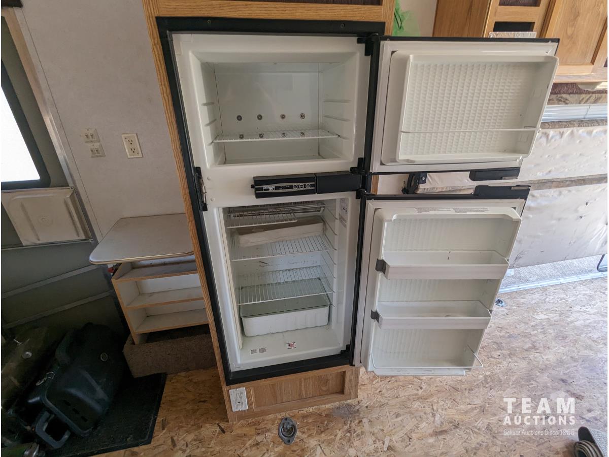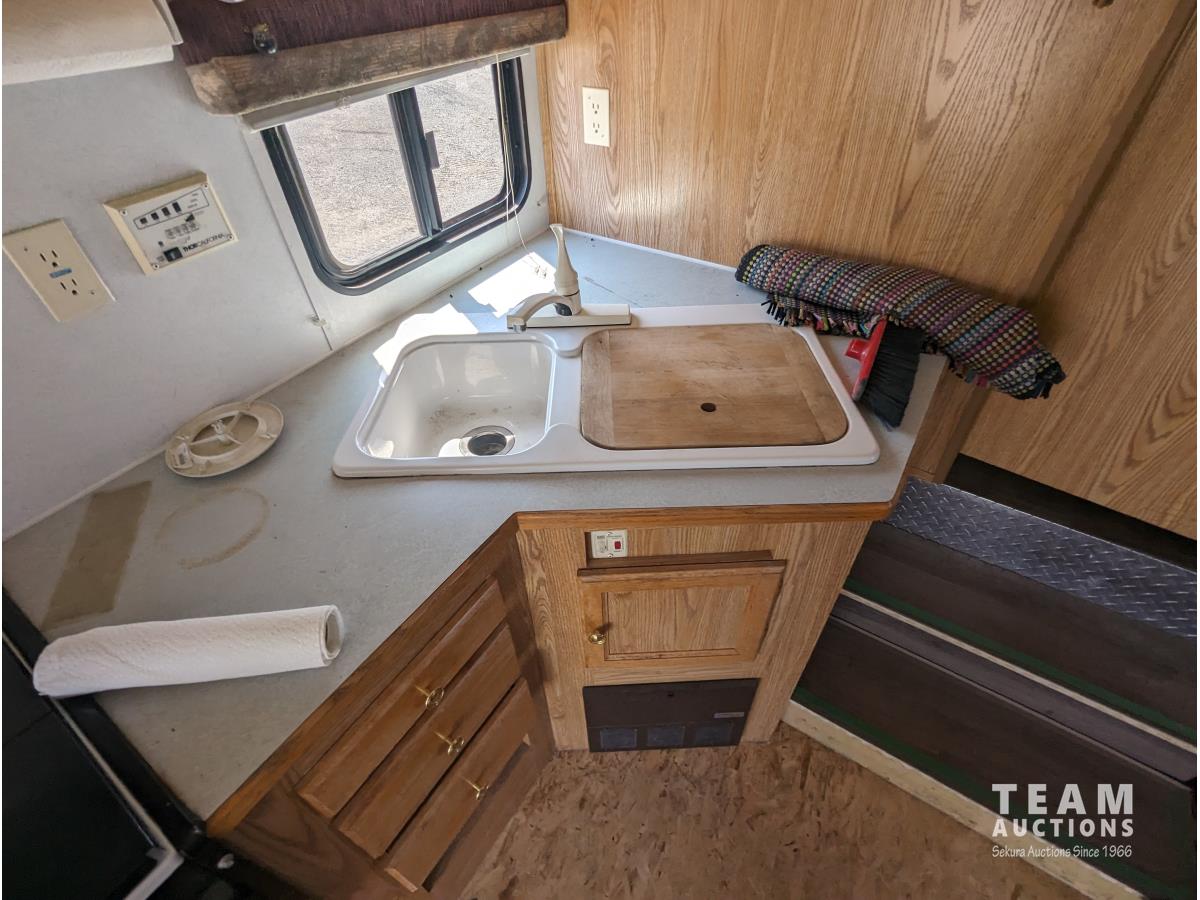 Fridge, freezer, stove, microwave, (2) portable BBQ's, (2) fold out beds in garage, bedroom with queen bed, bathroom w/shower, A/C heat, stereo, electric jack, awning, fold down garage door, 225/75R15 tires