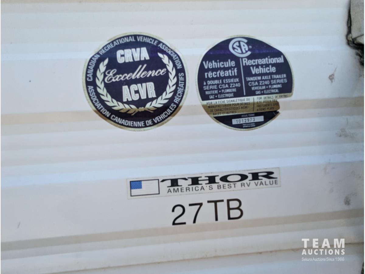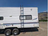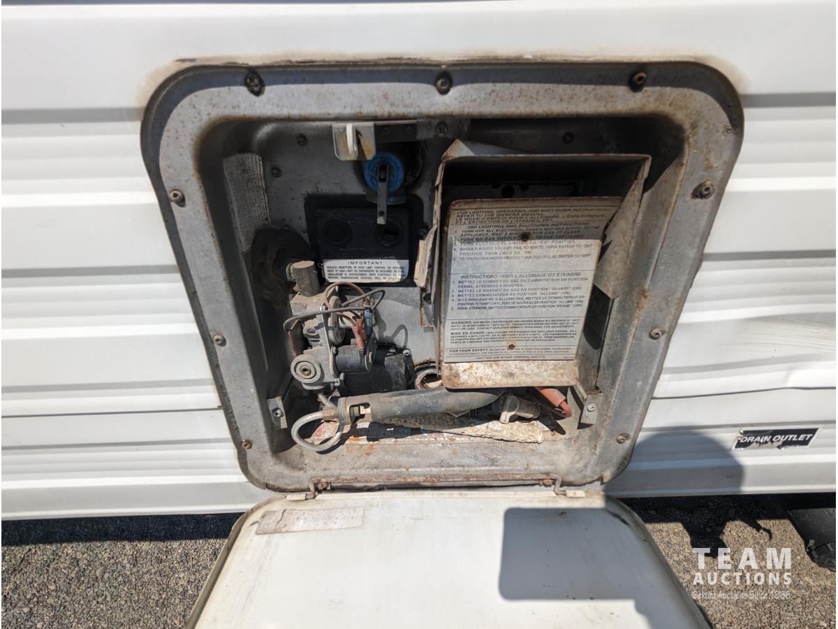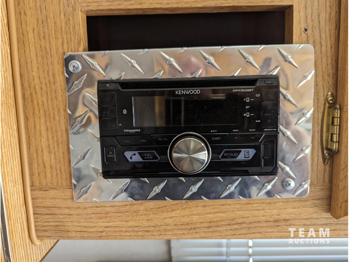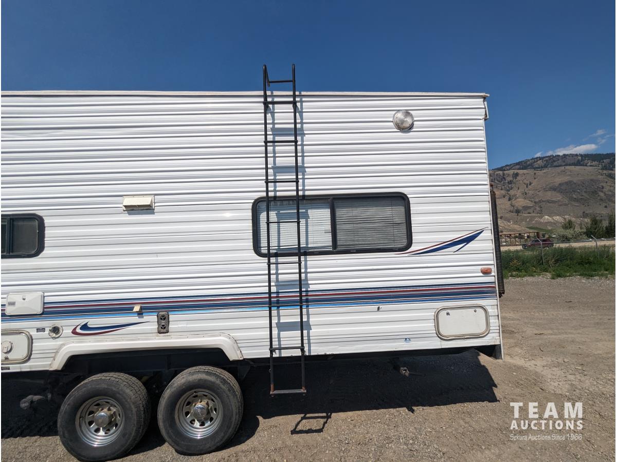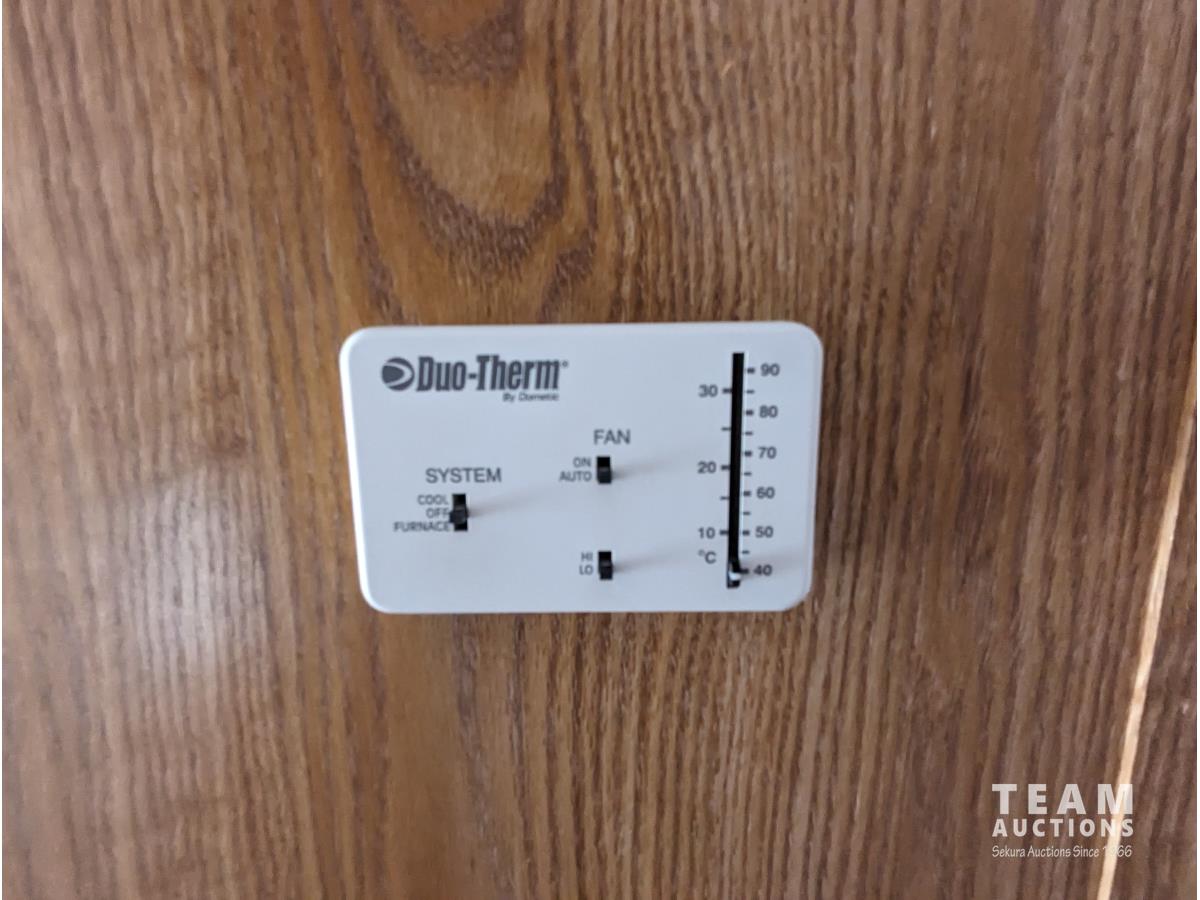 Fridge, freezer, stove, microwave, (2) portable BBQ's, (2) fold out beds in garage, bedroom with queen bed, bathroom w/shower, A/C heat, stereo, electric jack, awning, fold down garage door, 225/75R15 tires