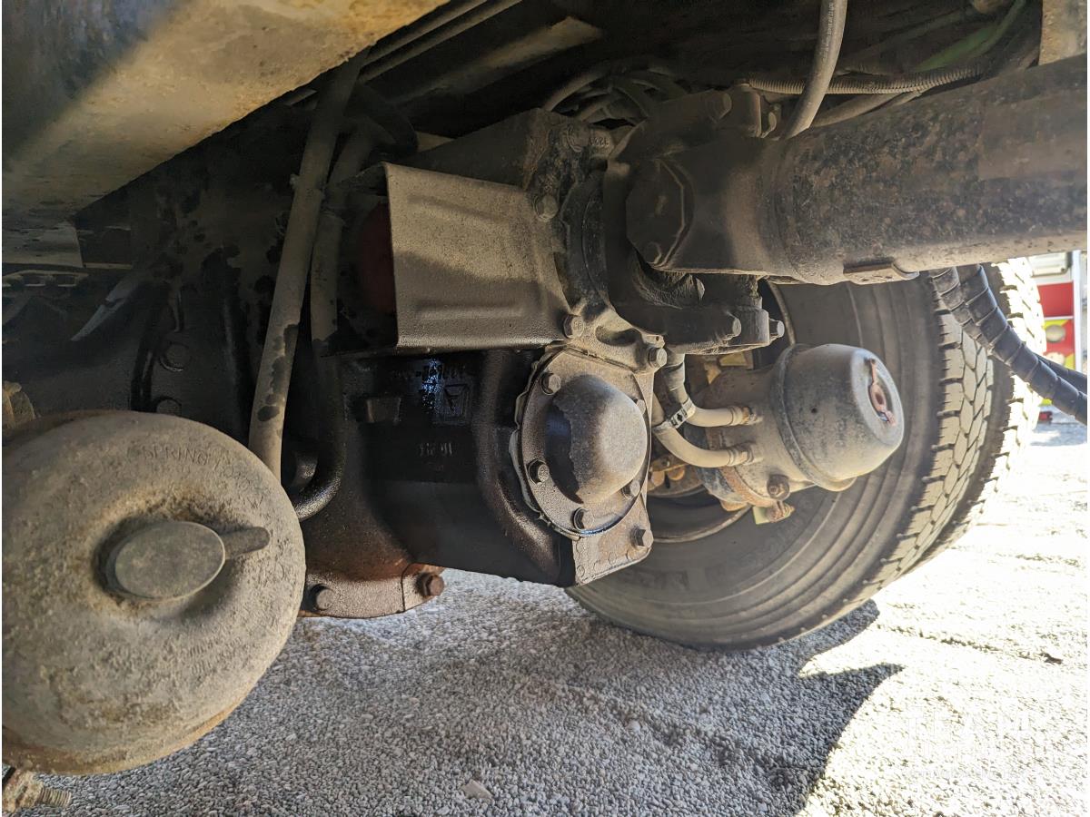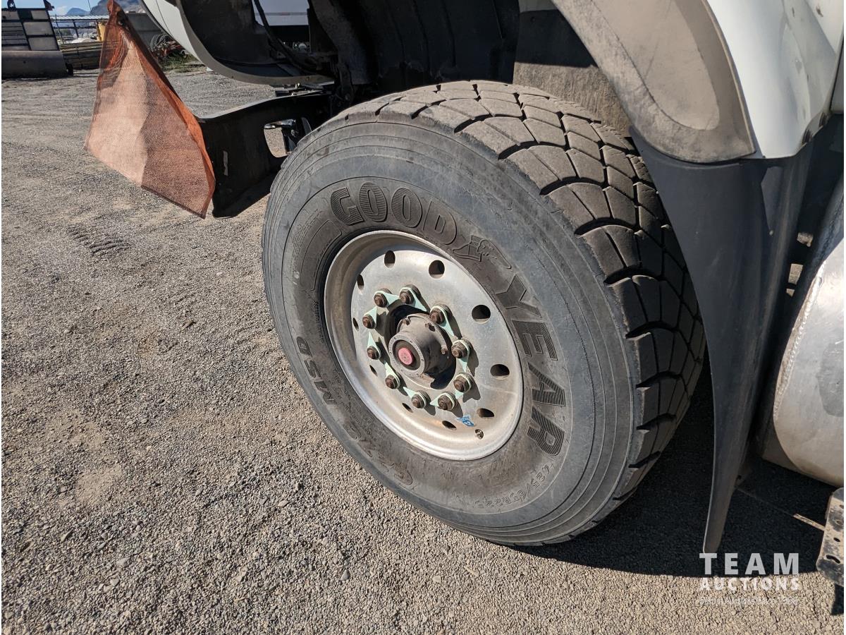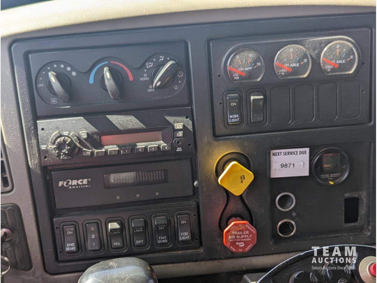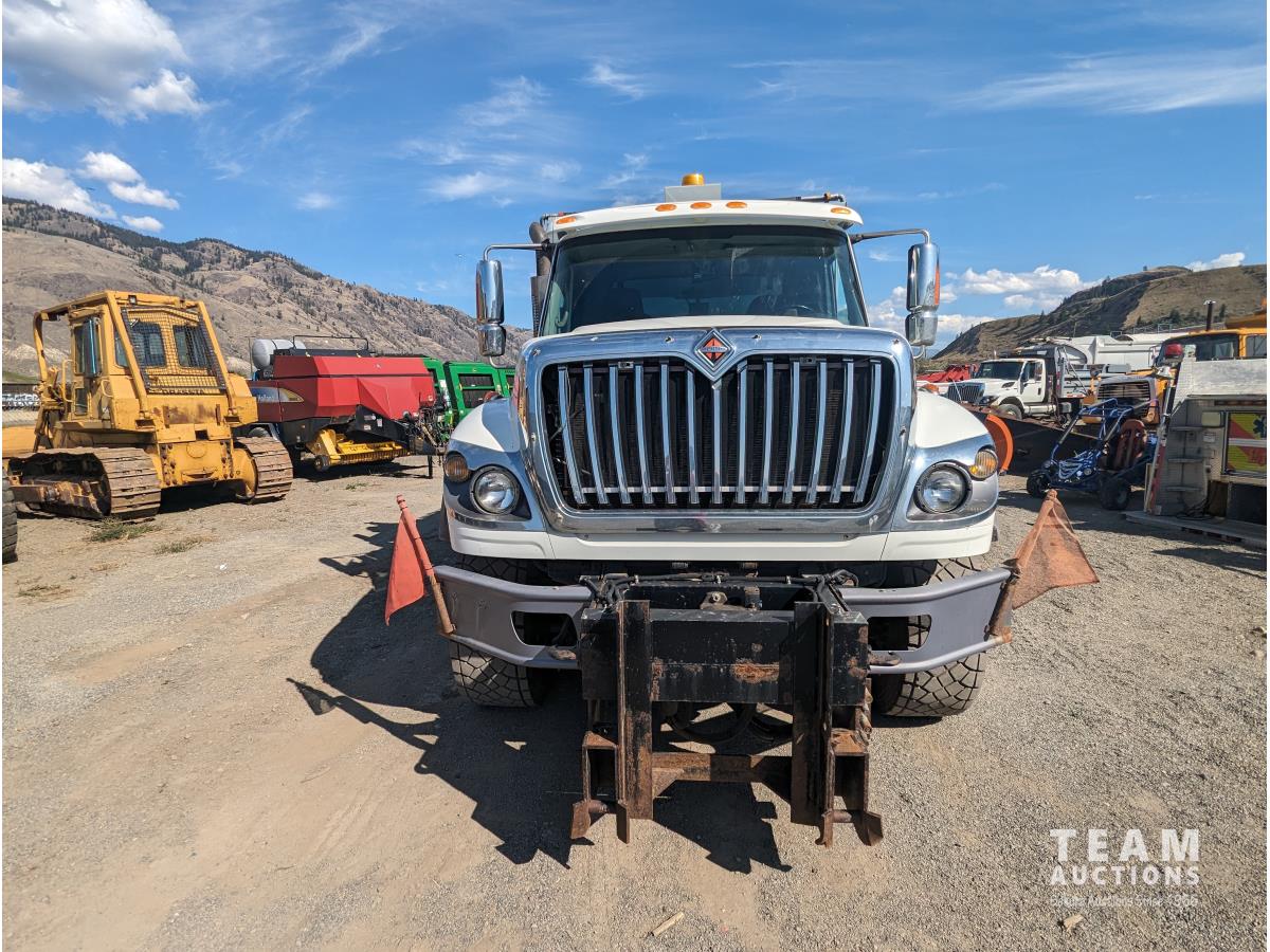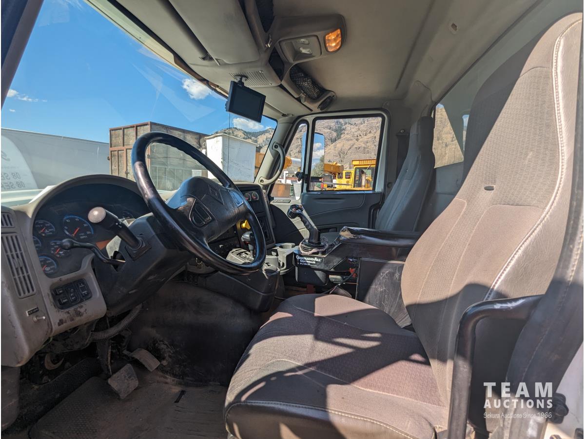 International MAXXFORCE 13 13 L 6 cylinder diesel engine, engine brake, automatic transmission, A/C, air ride driver seat, aluminum tool boxes, slip in sander and rear tailgate included, front PTO, plow mount, rubber block suspension, 20,000 lb front axle, 46,000 lb rear axles, full lockers, 210 inch WB, 425/65R22.5 front tires, 11R24.5 rear tires