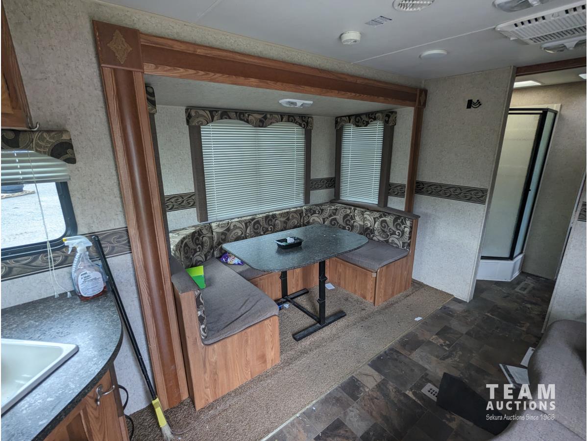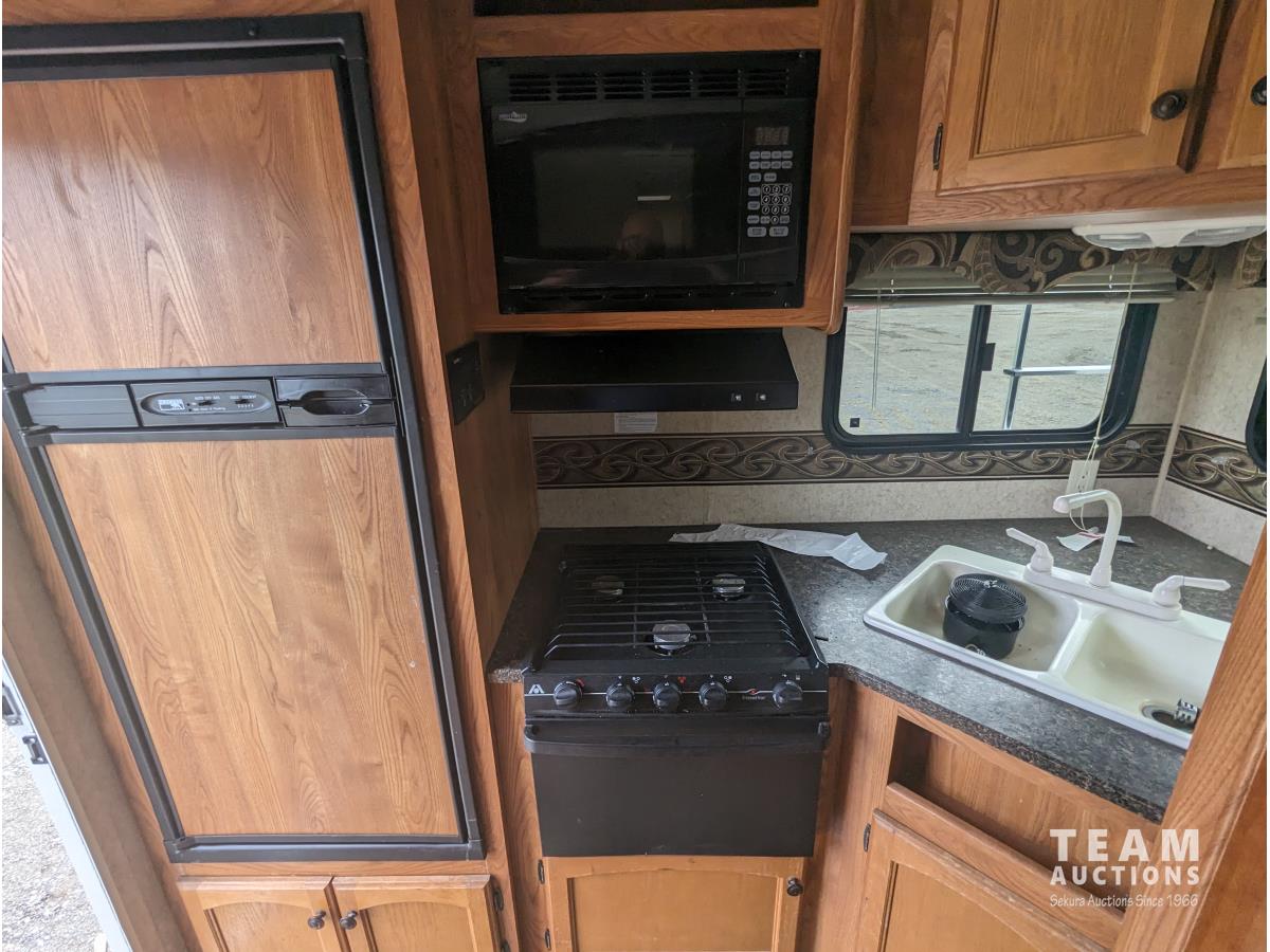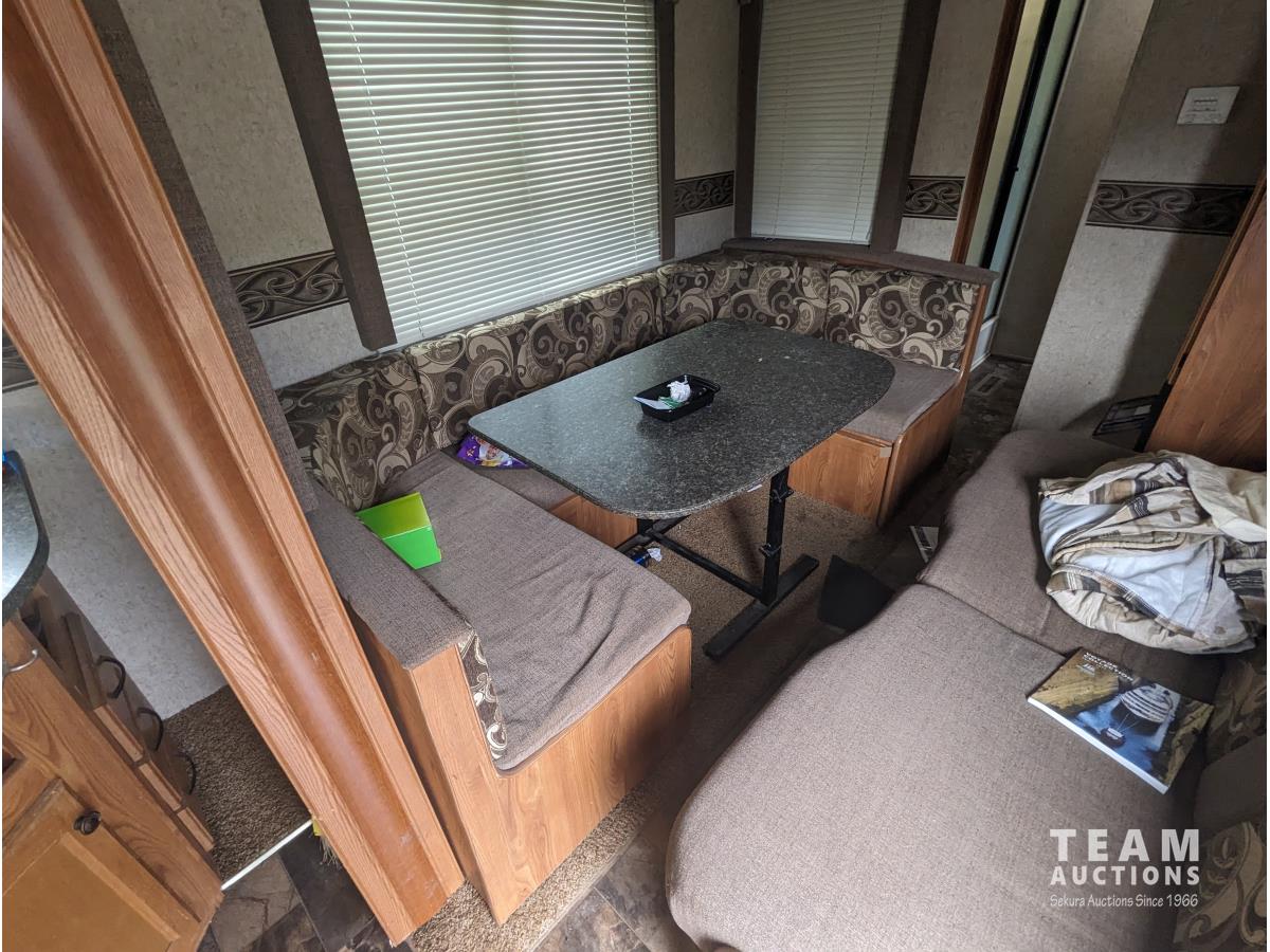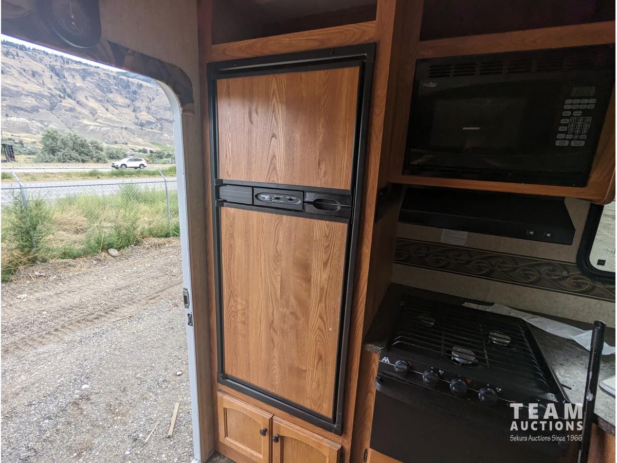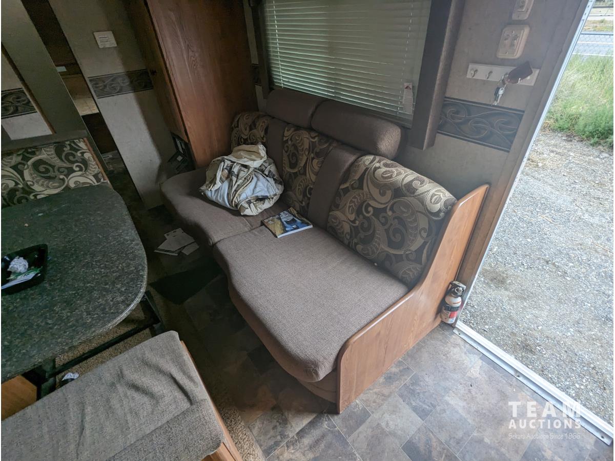 8 ft 6 inch slide out, fridge, stove, microwave, couch, table, A/C, furnace, awning, ST225/75R15 tires