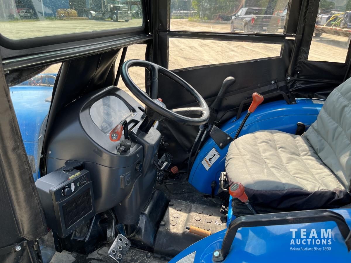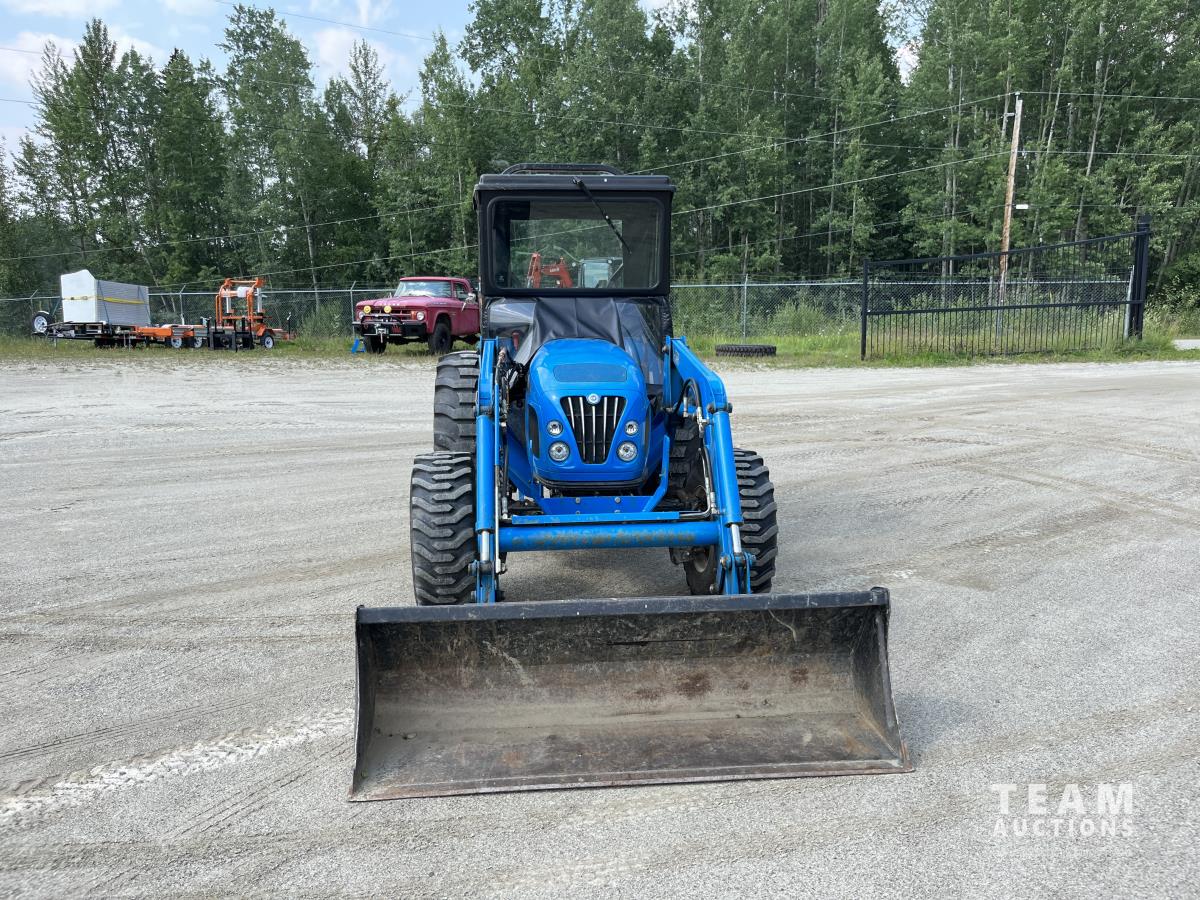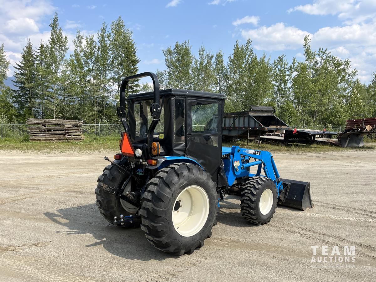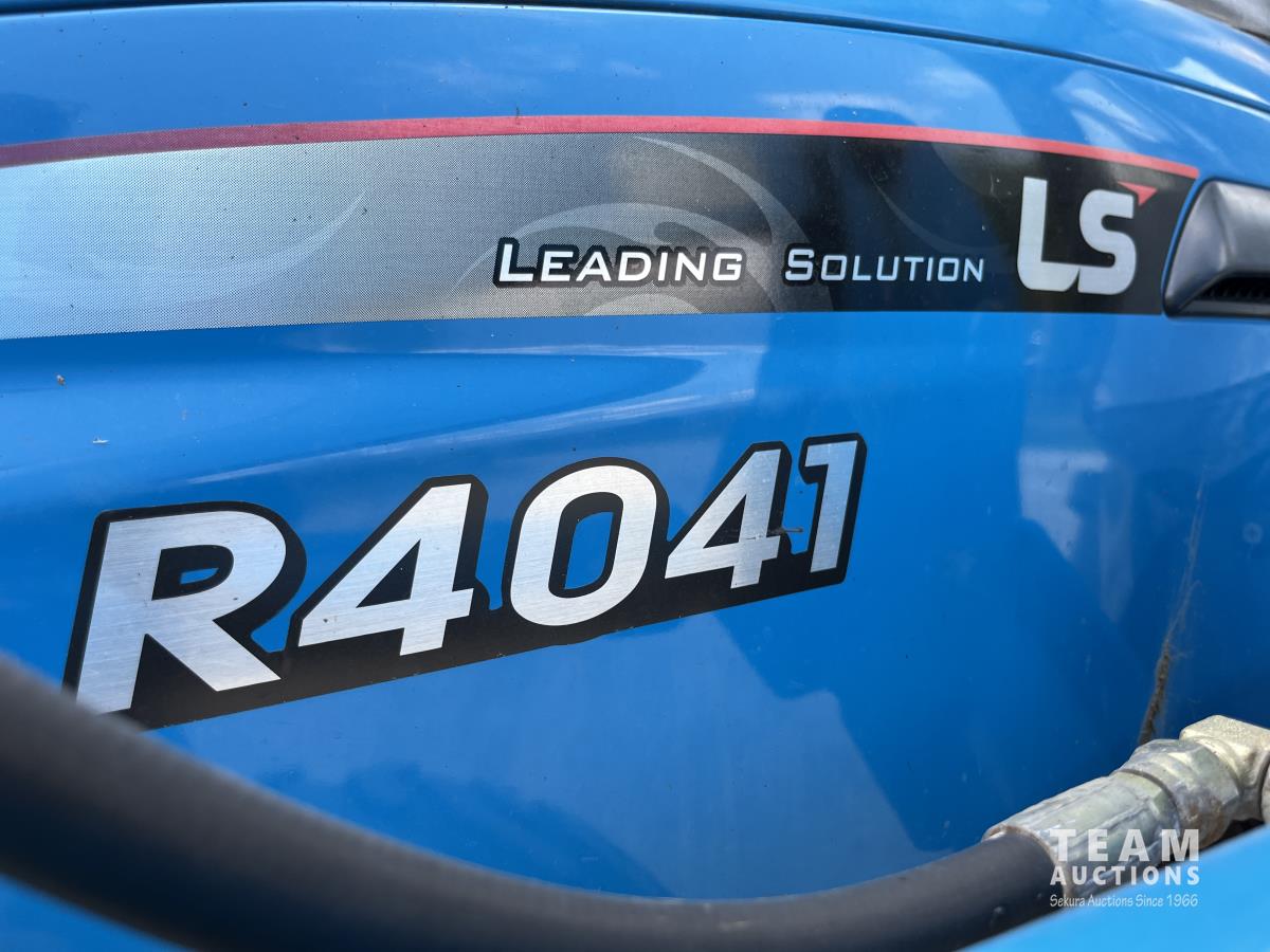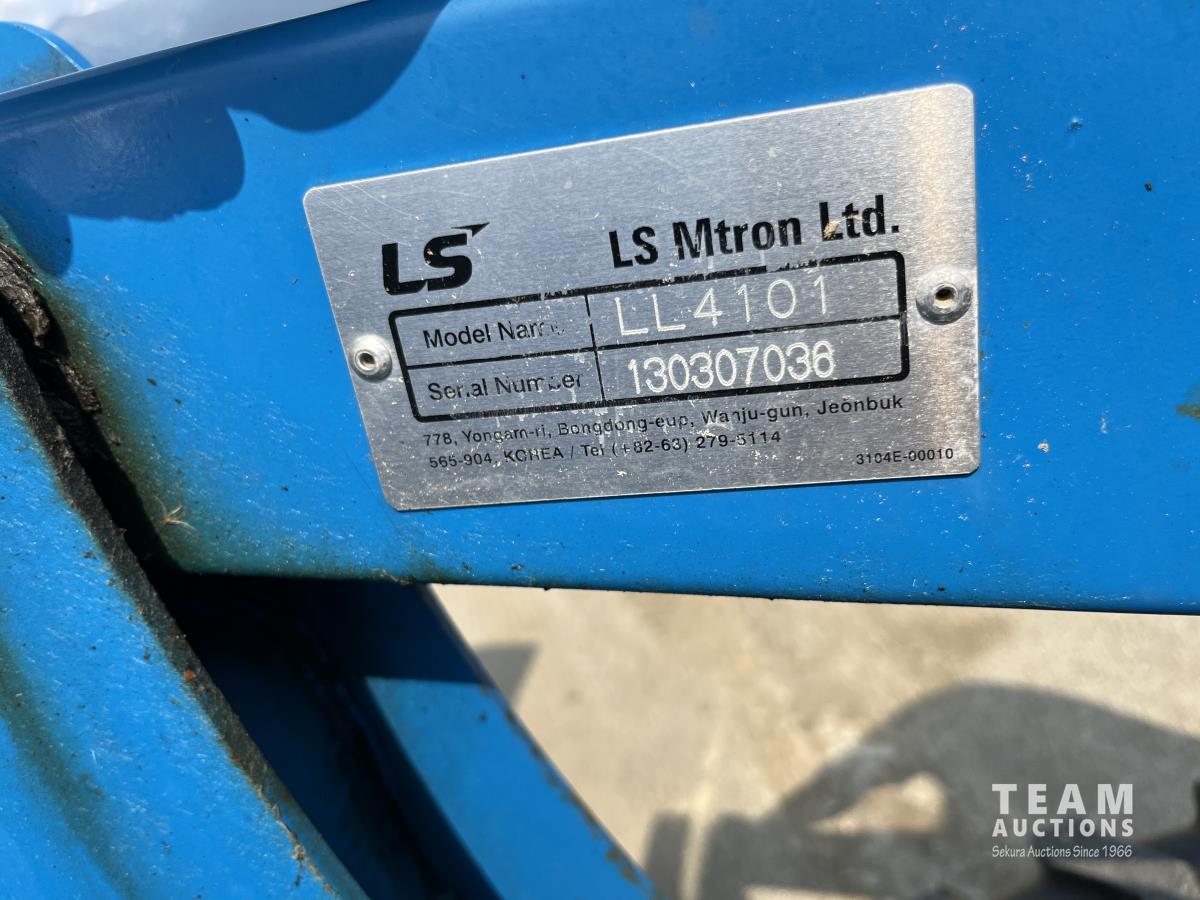 Ls LL4101 loader, Q/A, 72 inch bucket, Mitsibishi 2.5 L 4 cylinder 45 HP, diesel engine, 16 speed Synchro Shuttle manual transmission, , canvas cab, front hydraulic outlets, 540 PTO, 3 point hitch, 2 rear hydraulic outlets, 12-16.5 front tires, 17.5X24 rear tires