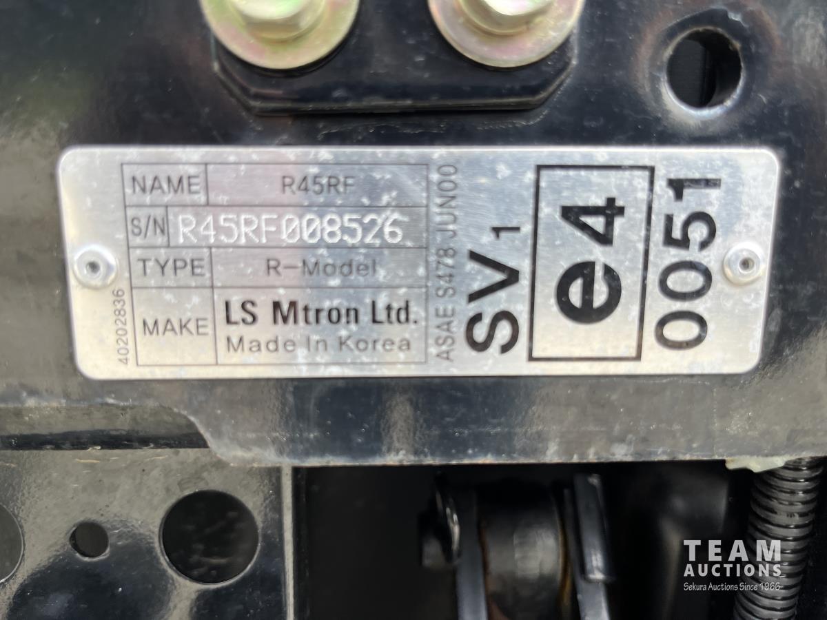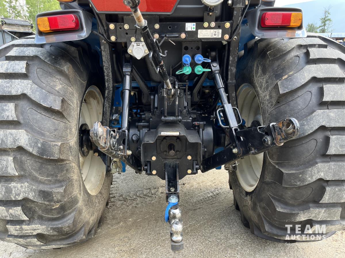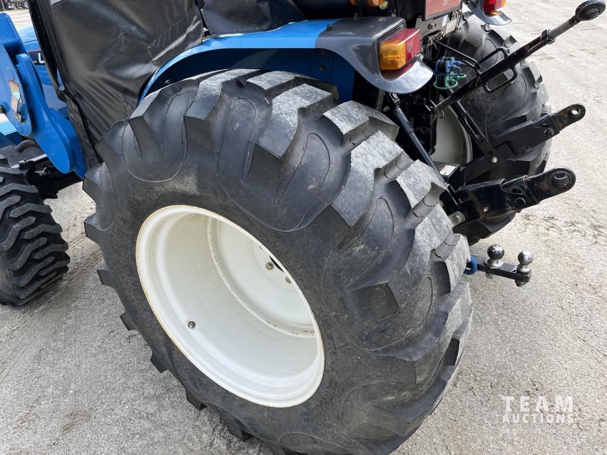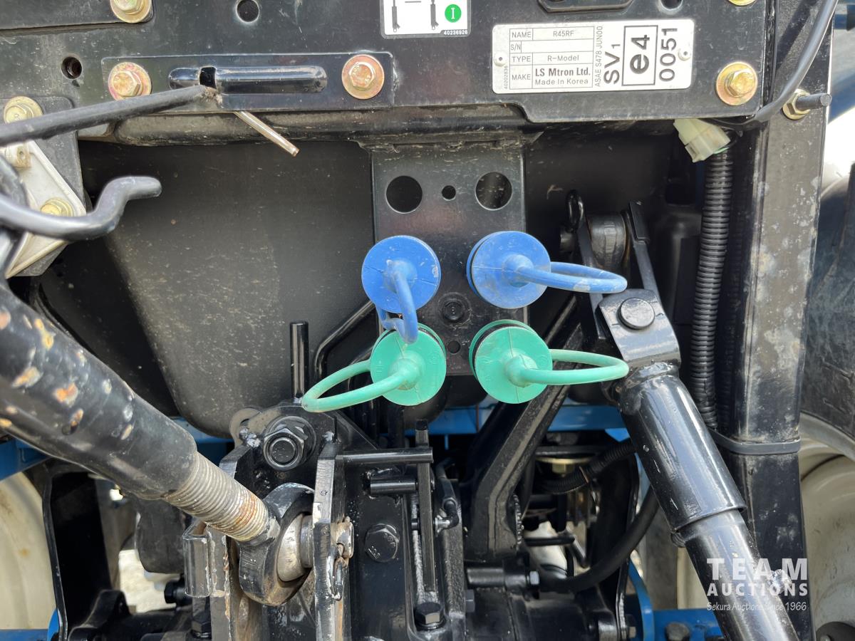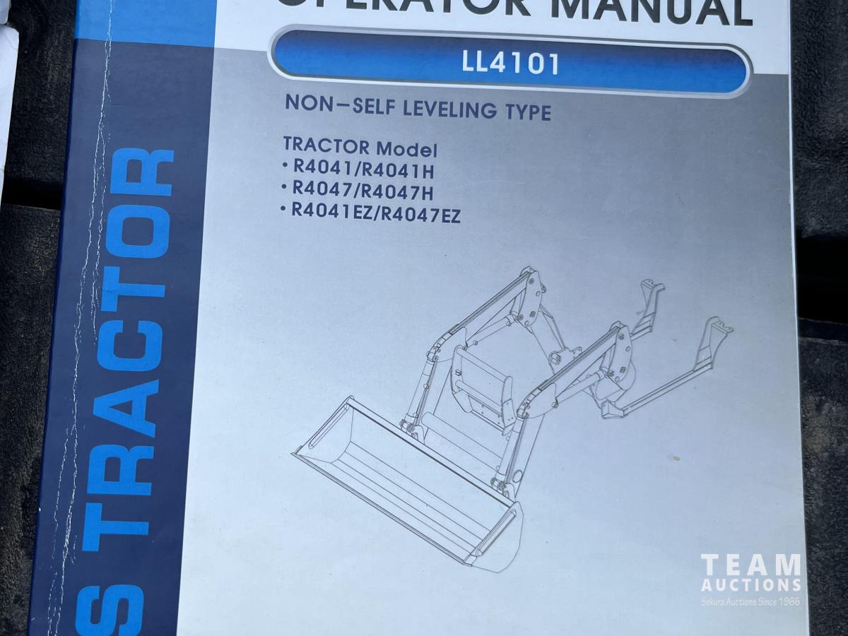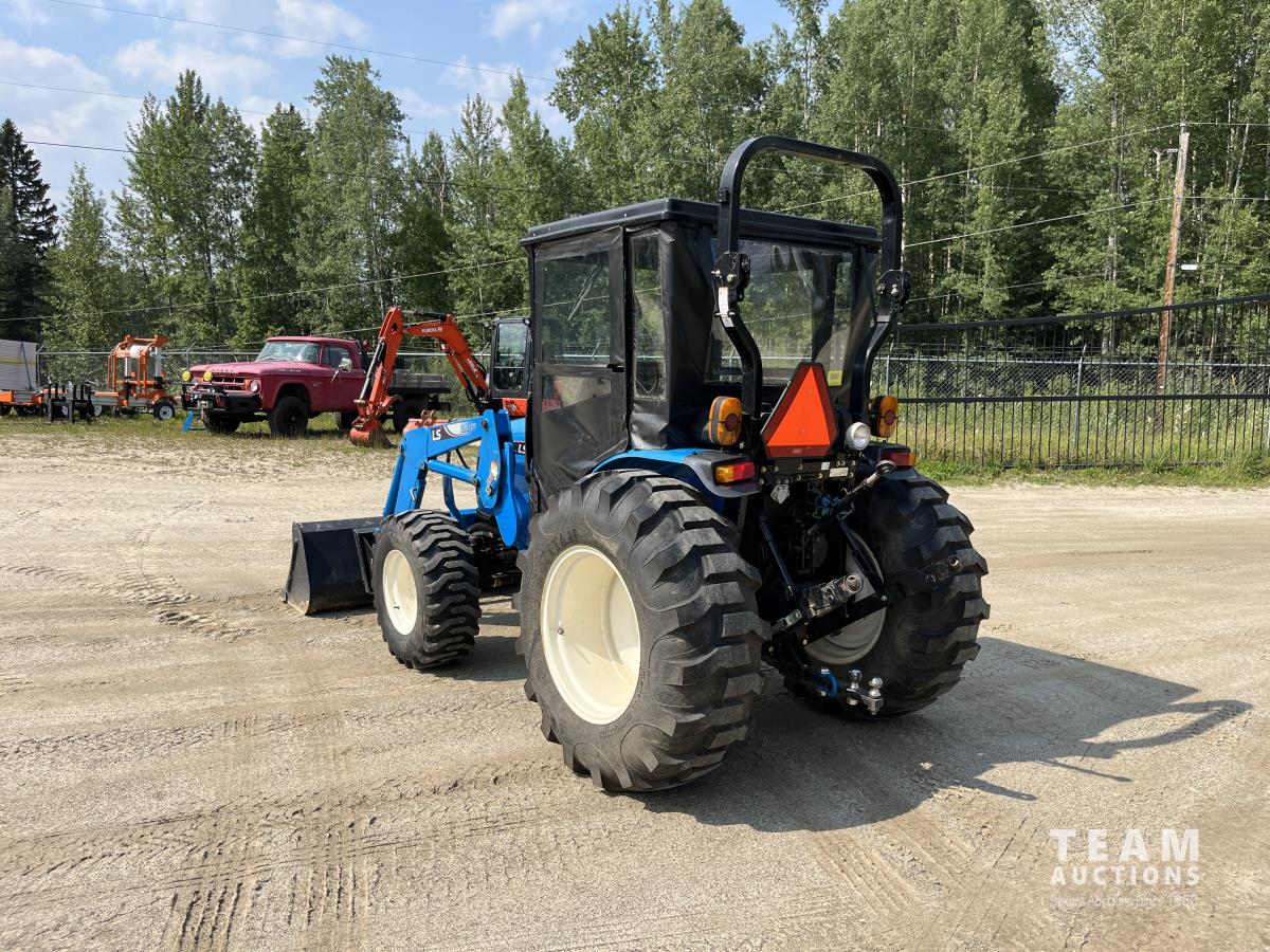 Ls LL4101 loader, Q/A, 72 inch bucket, Mitsibishi 2.5 L 4 cylinder 45 HP, diesel engine, 16 speed Synchro Shuttle manual transmission, , canvas cab, front hydraulic outlets, 540 PTO, 3 point hitch, 2 rear hydraulic outlets, 12-16.5 front tires, 17.5X24 rear tires