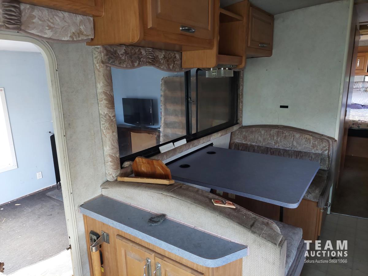 7.4L V8 gas, automatic, fridge, stove, microwave, dinette, couch, queen bed, bathroom/shower, TV