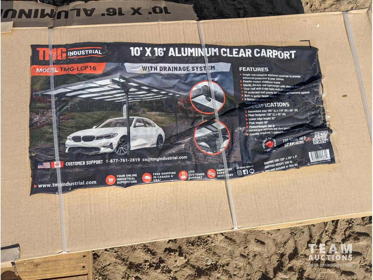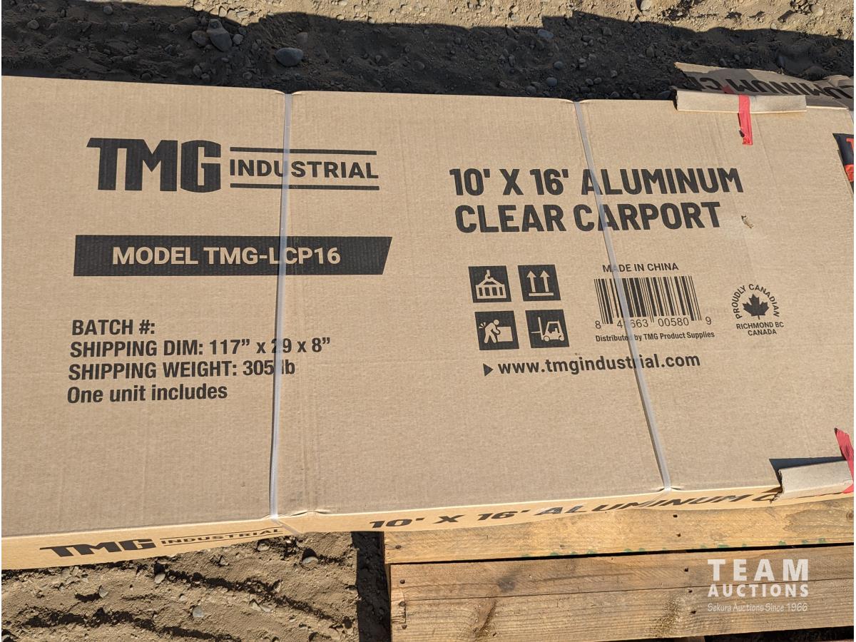 64 TMG Industrial LCP16 10 Ft X 16 Ft Aluminum Clear Carport (Unused)