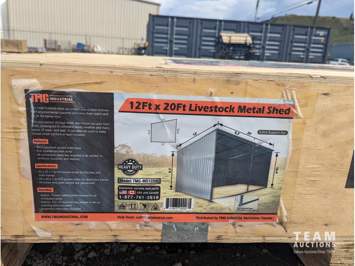 68 TMG Industrial MS1220L 12 Ft X 20 Ft Galvanized Metal Livestock Shed (Unused)