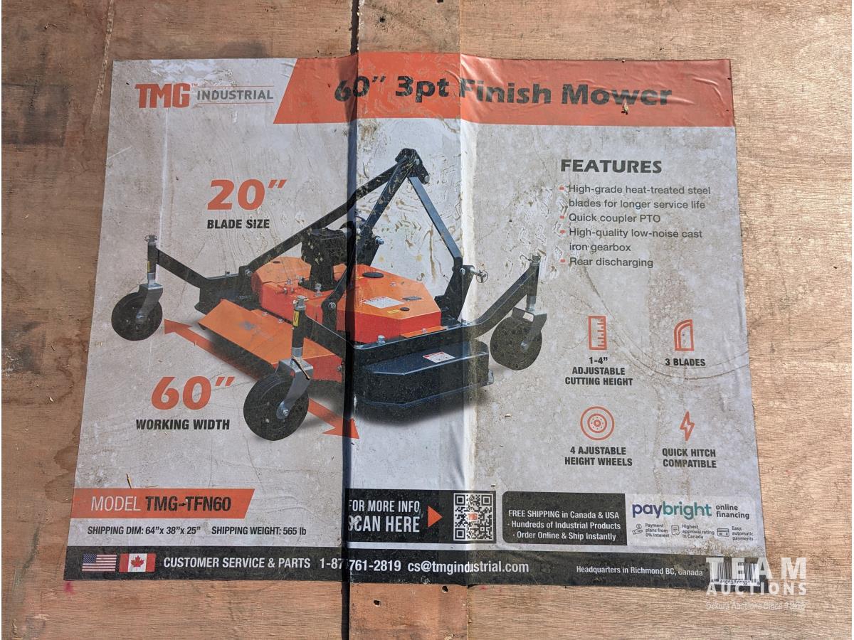 249 TMG Industrial TFN60 60 Inch Tow-Behind 3-Point Hitch Finish Mower (Unused)